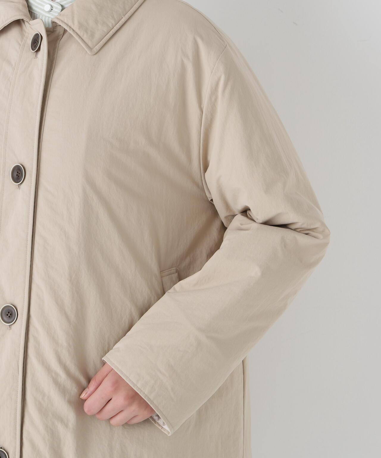 百搭的棉質罩衫,是日常的👍選擇 [設計特色] 這款不鏽鋼領大衣的內襯是薄棉被。略呈 A 字形的剪裁使其看起來既基本又不失女性柔美。袖口背面和衣領內側採用彩色設計,後襯裡和內袋採用條紋設計,點睛之筆。採用表面自然的輕質尼龍材料和木棉混紡襯墊。這是一款輕便的棉質外衣,春天般的色彩烘托出季節的氣氛。由於長度適中,是一款可以搭配任何下裝的單品。