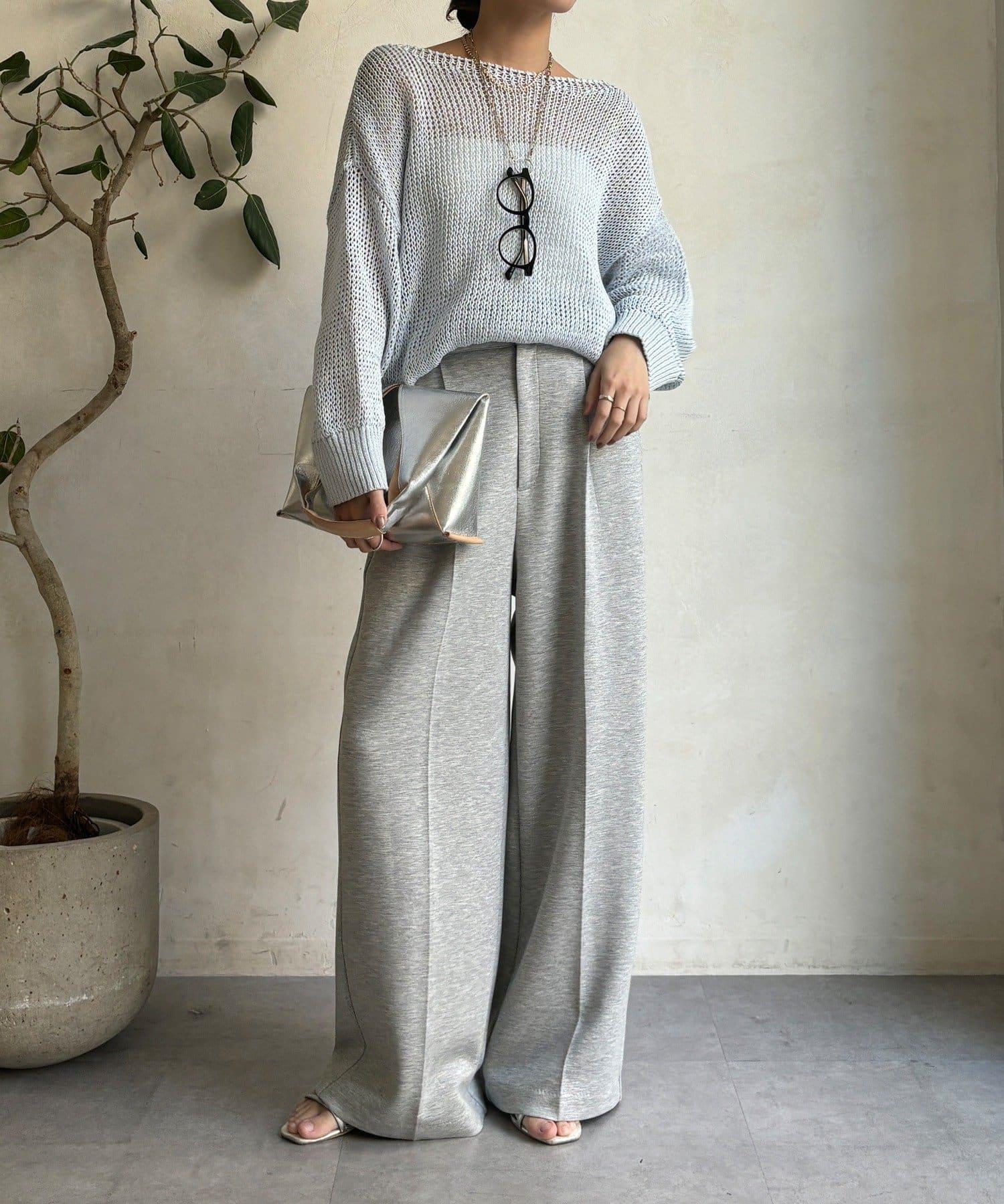 中間壓緊的設計使褲腿線條看起來筆直,即使搭配休閒上衣也顯得優雅大方。