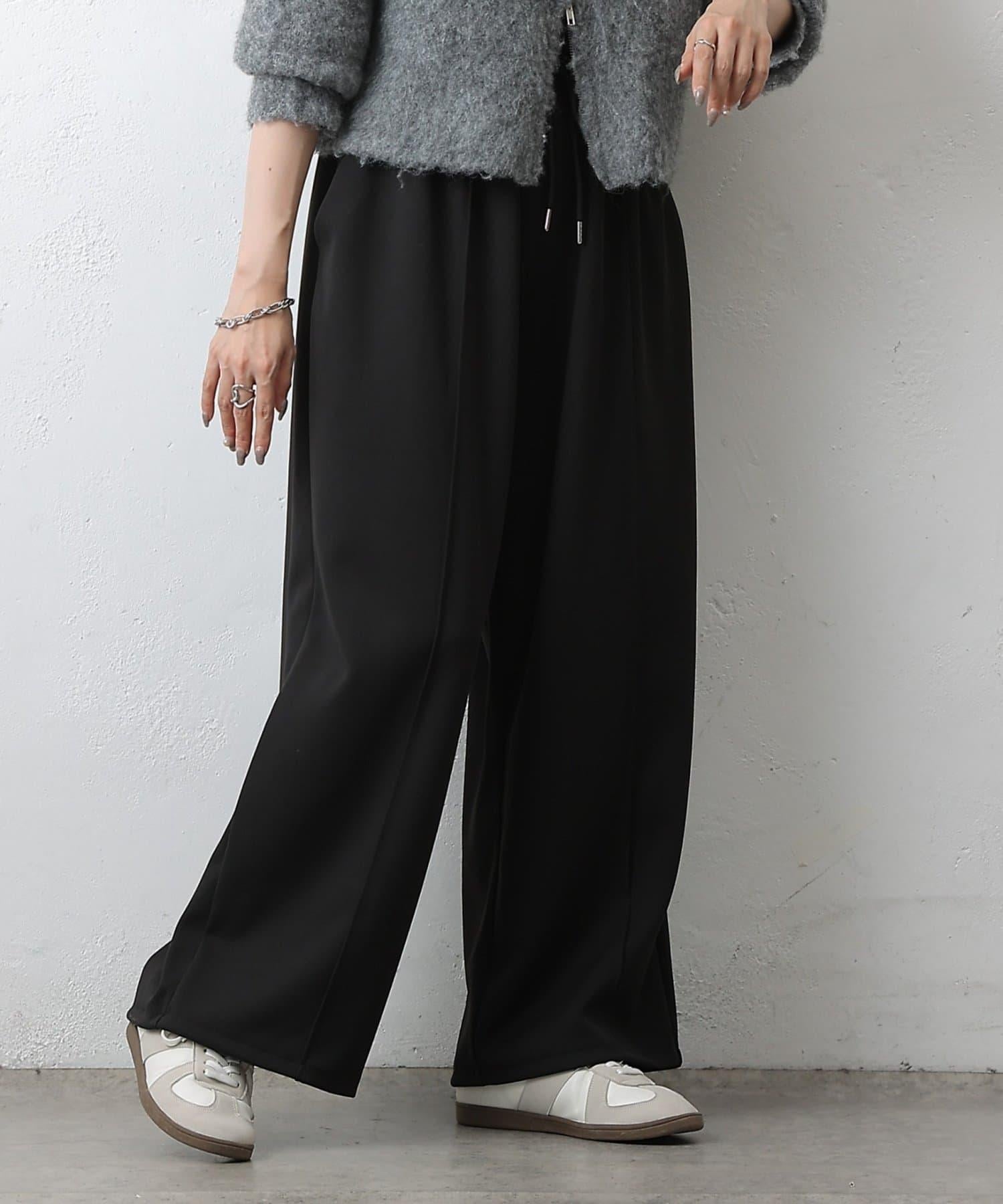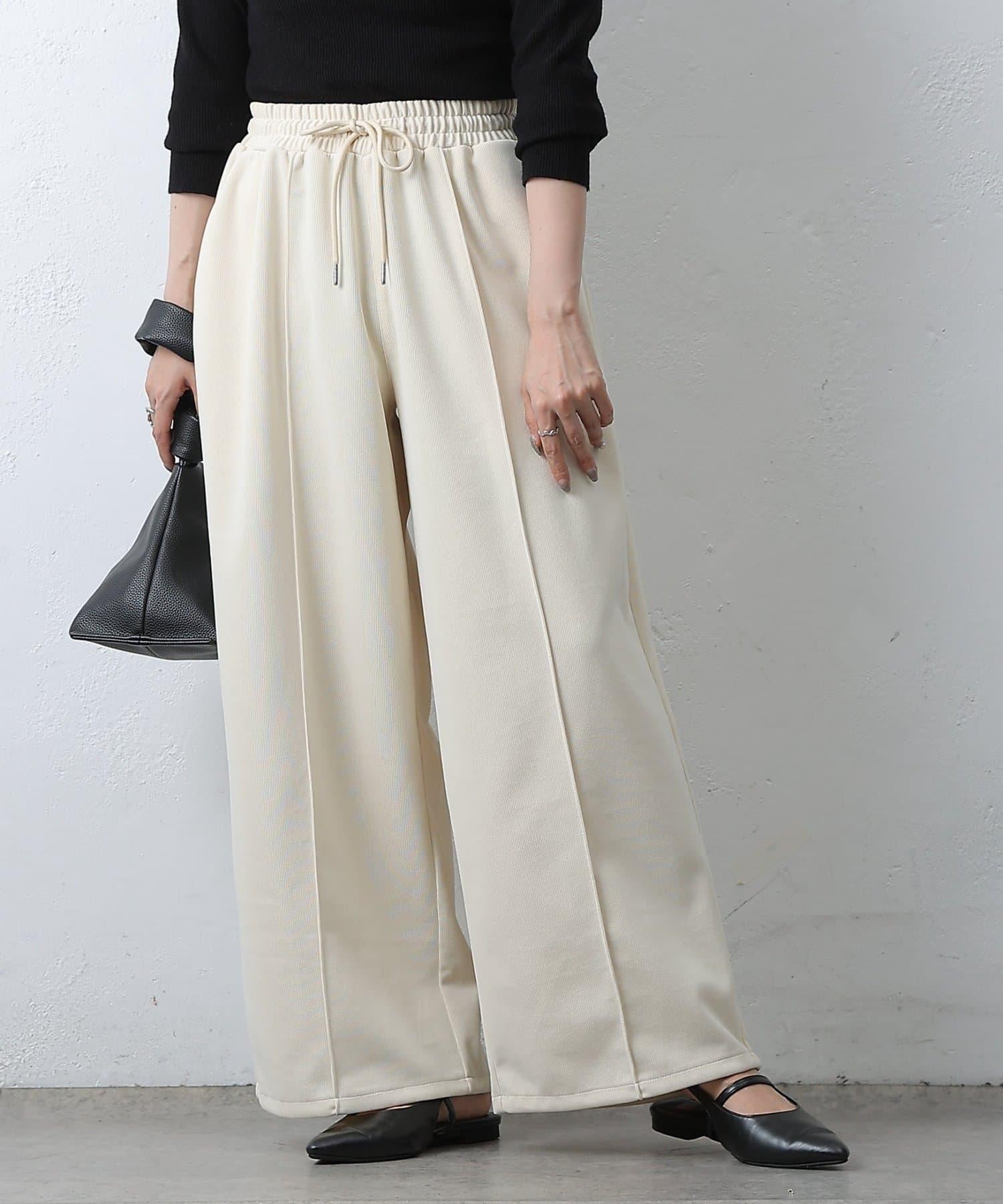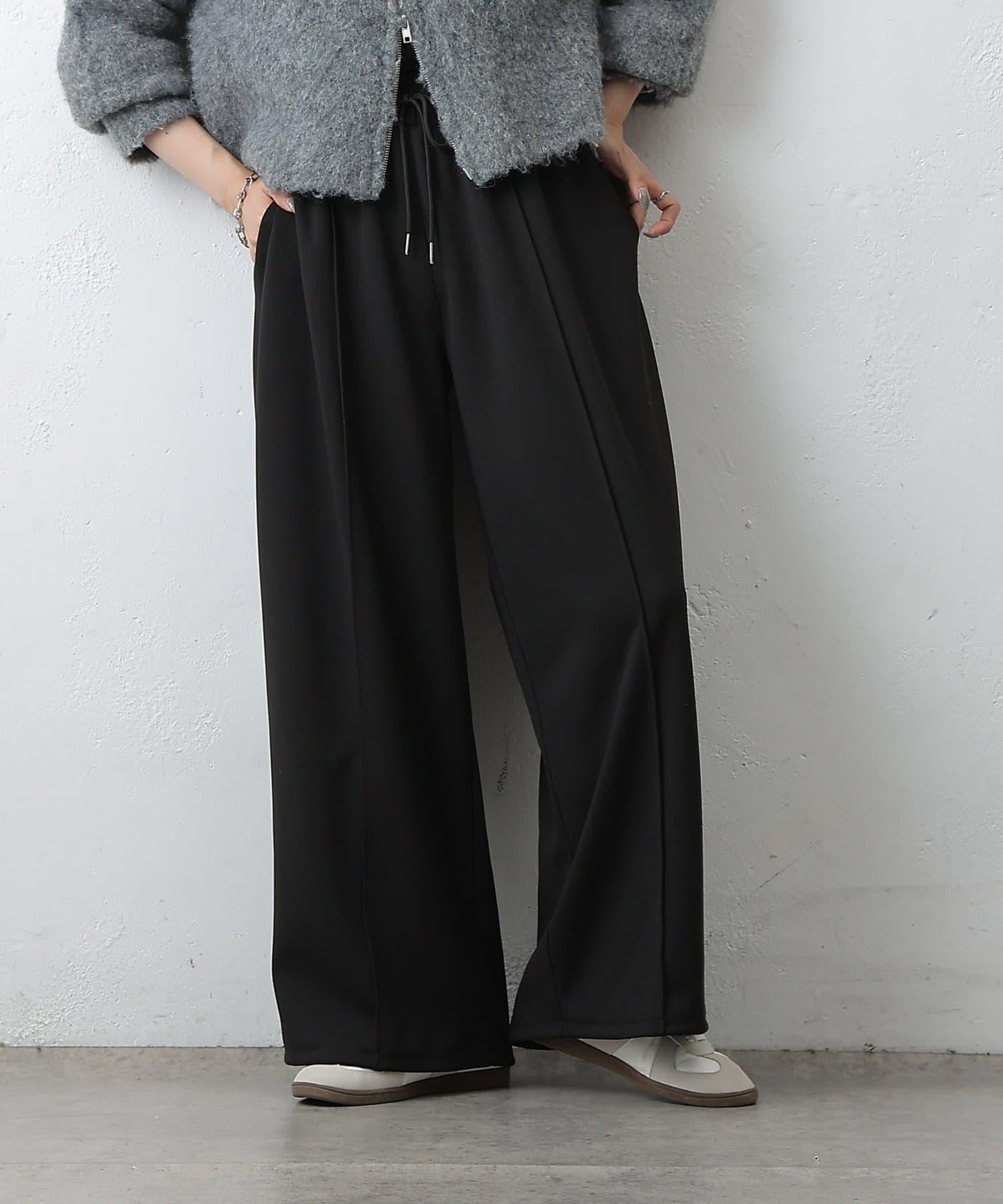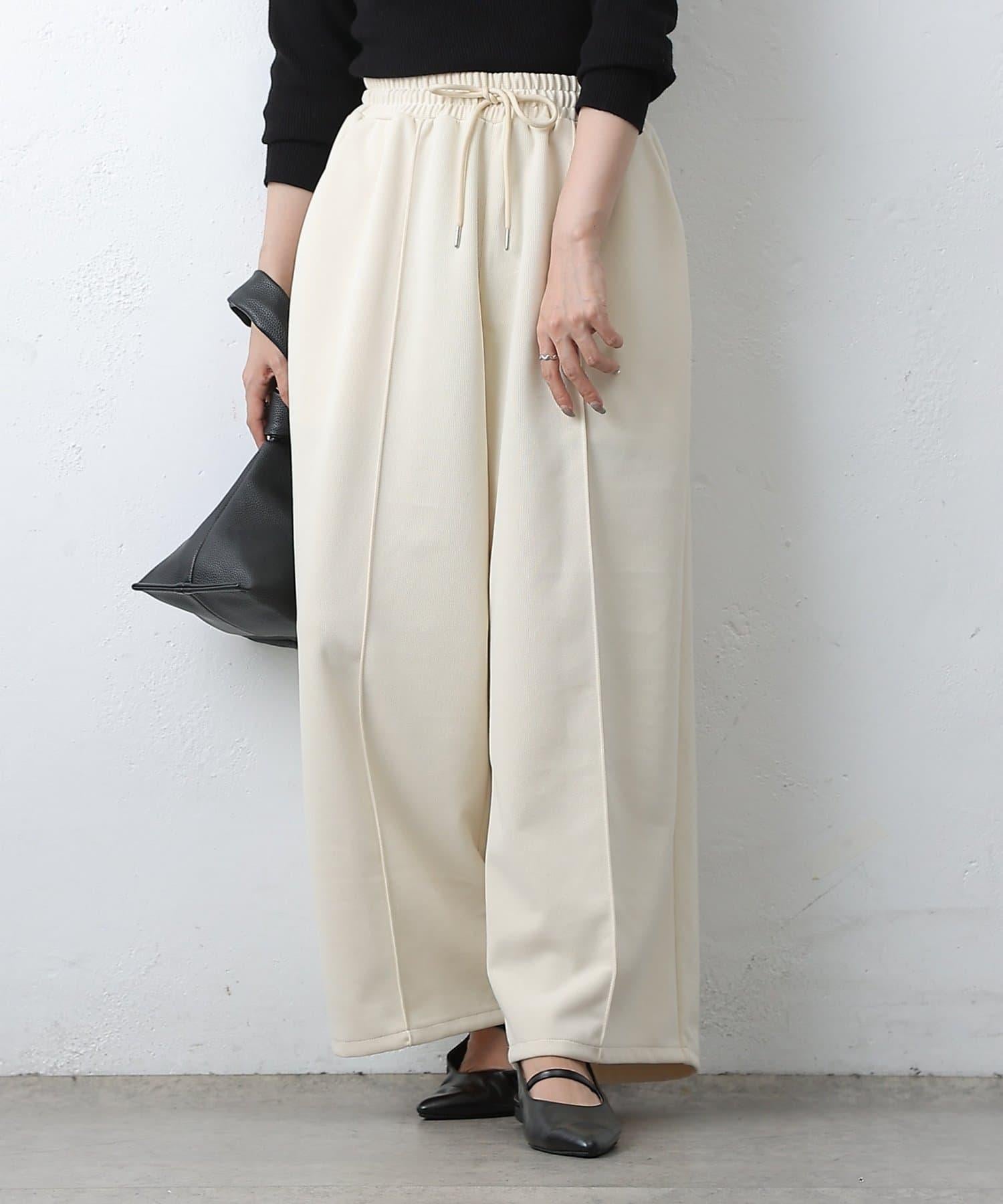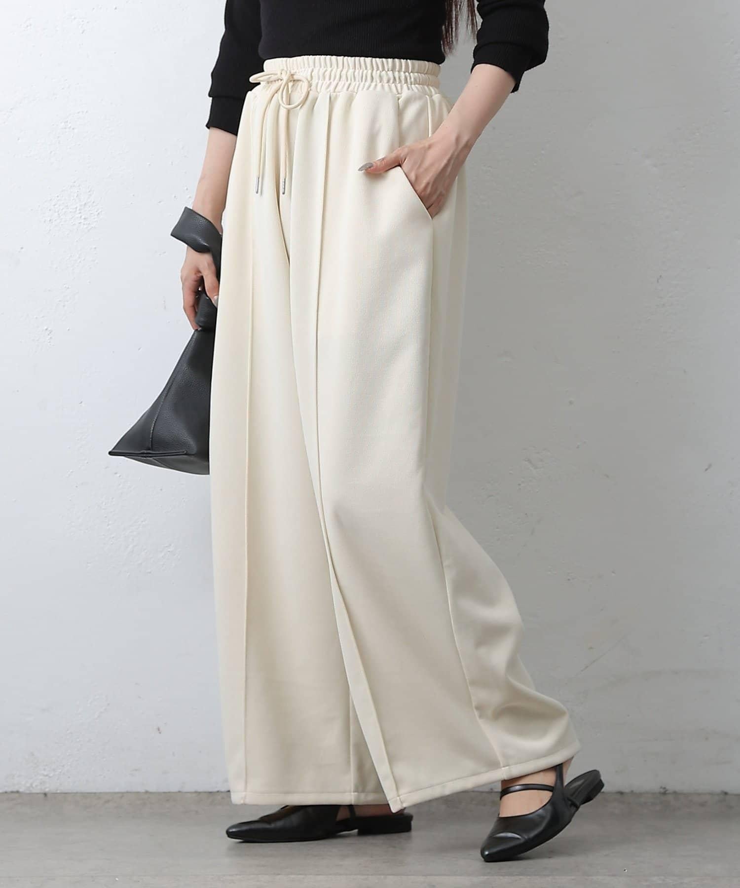 寬大的中縫長褲,褲腿效果優美,給人寬鬆的感覺。