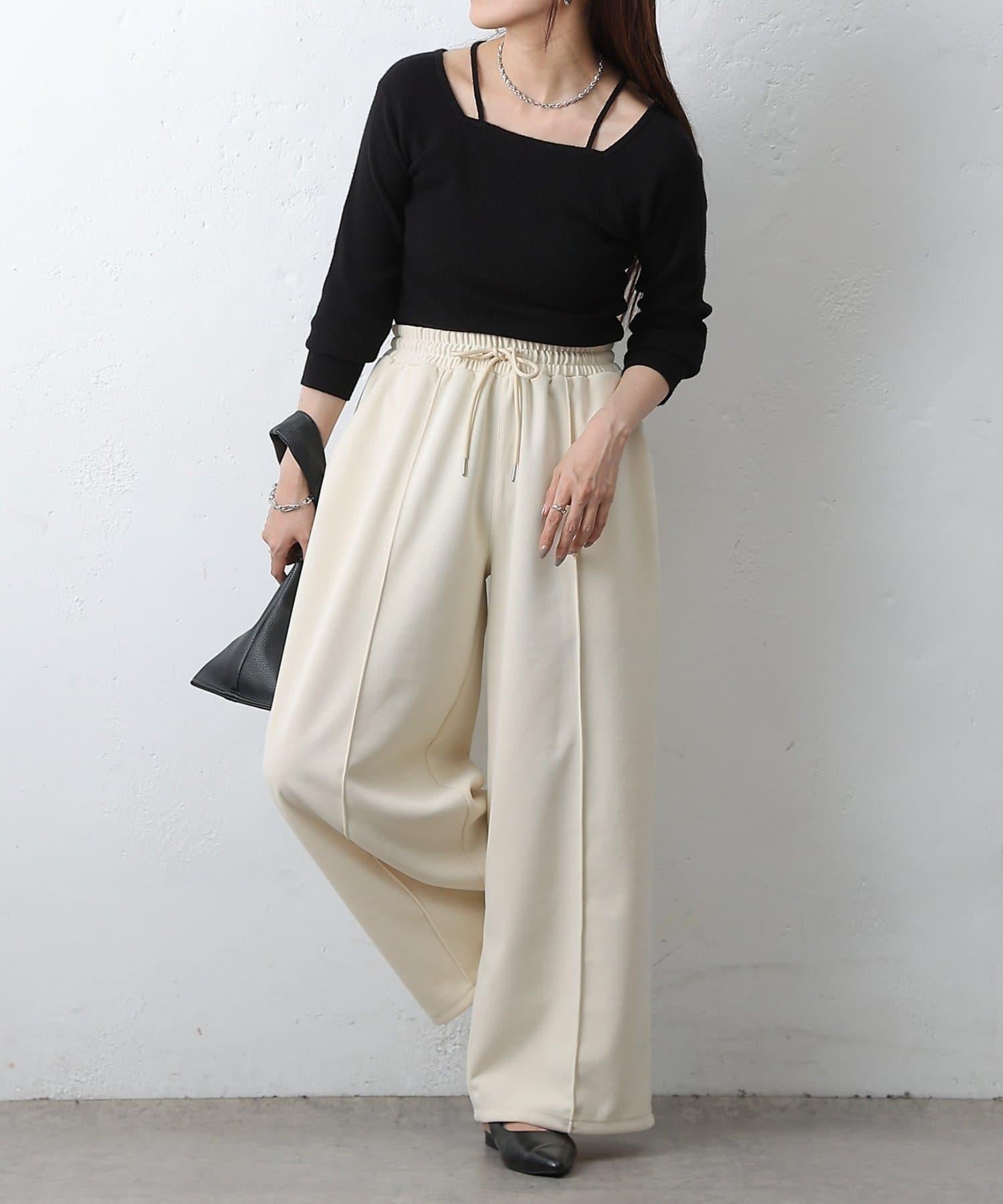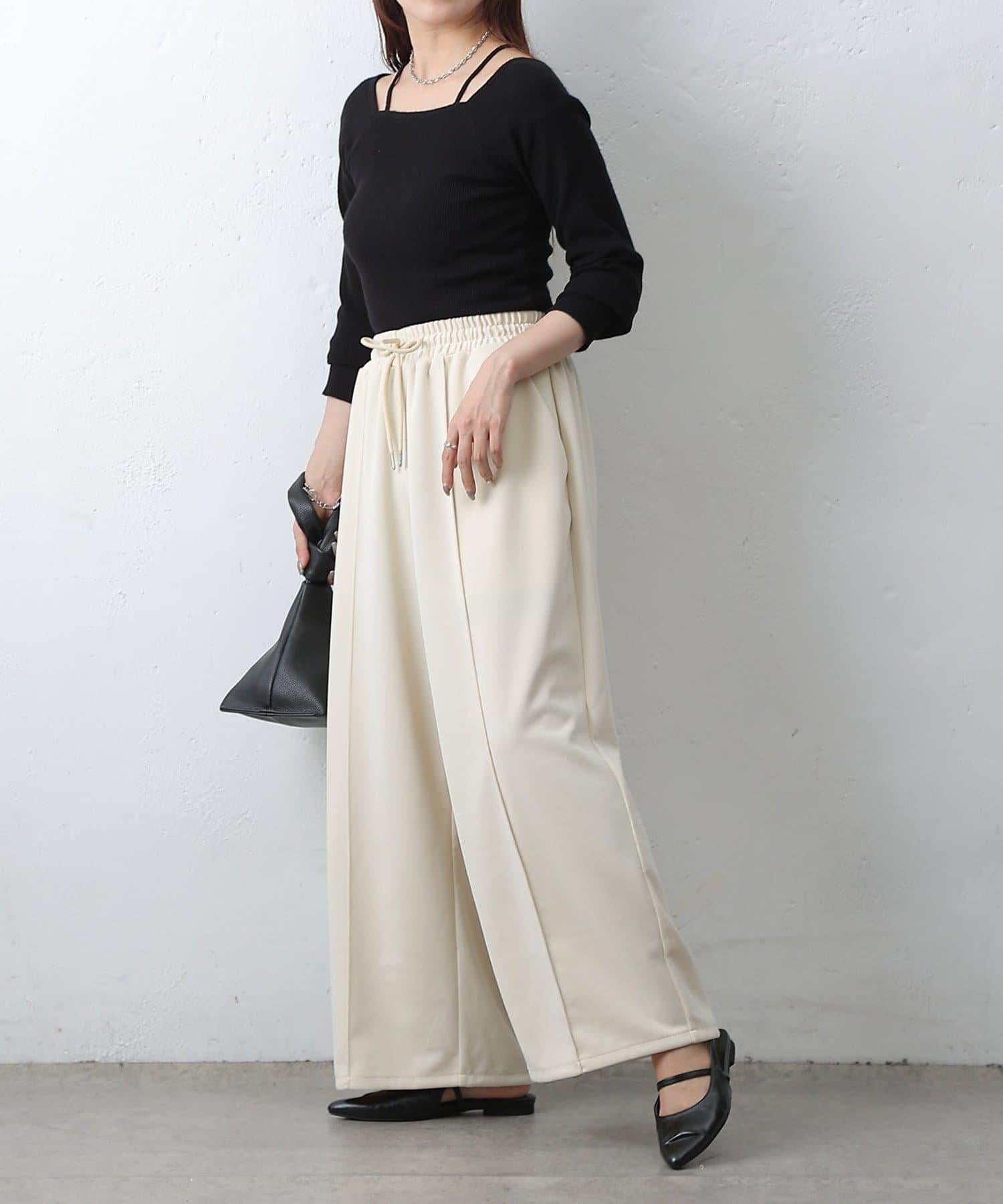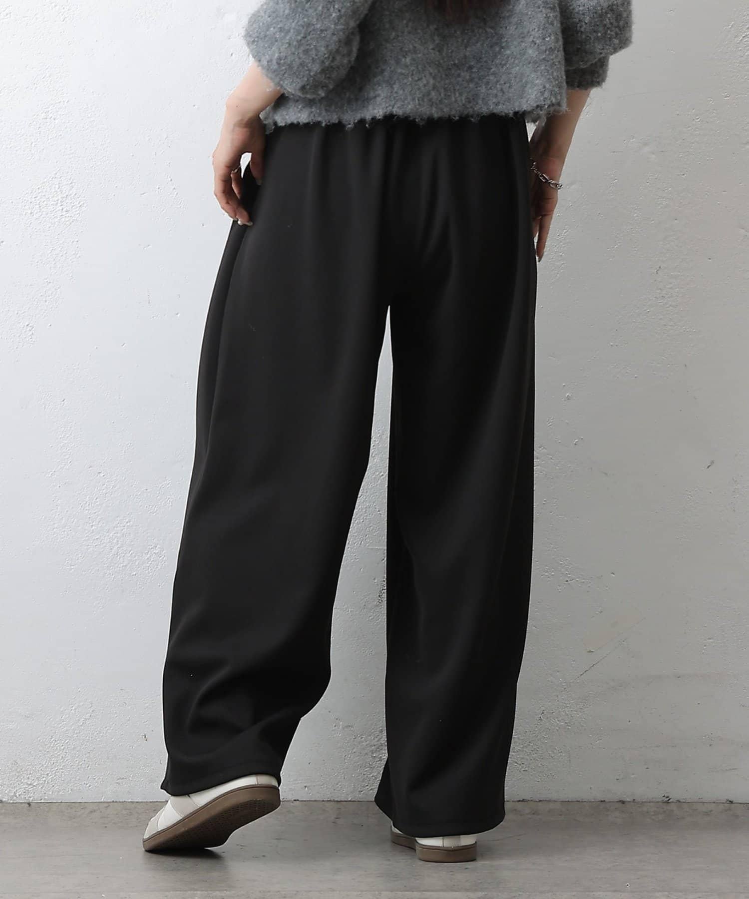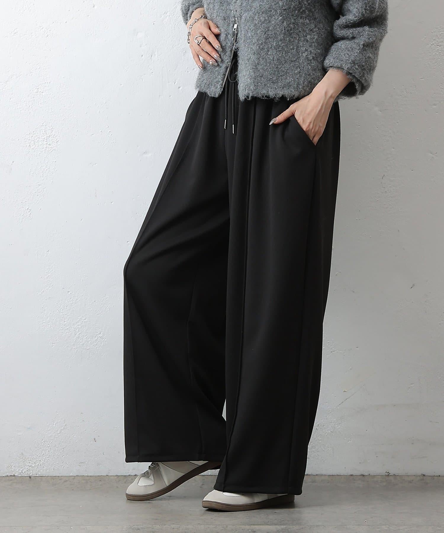 寬大的中縫長褲,褲腿效果優美,給人寬鬆的感覺。