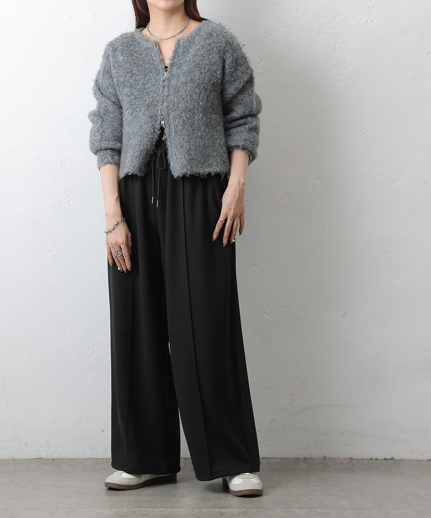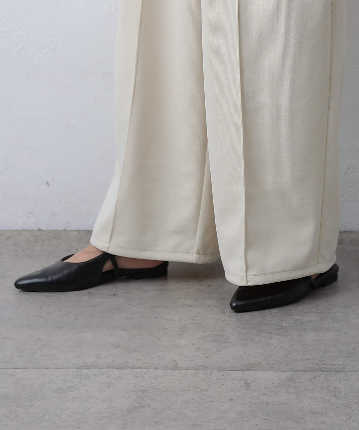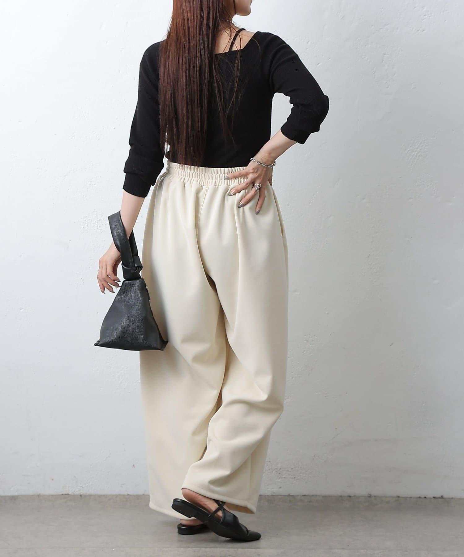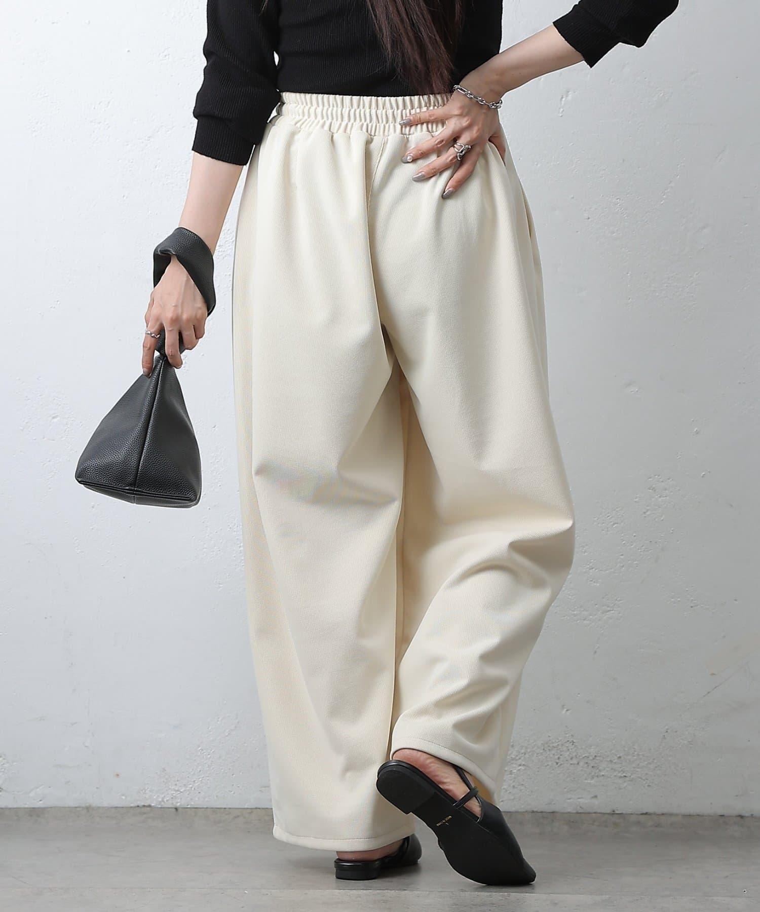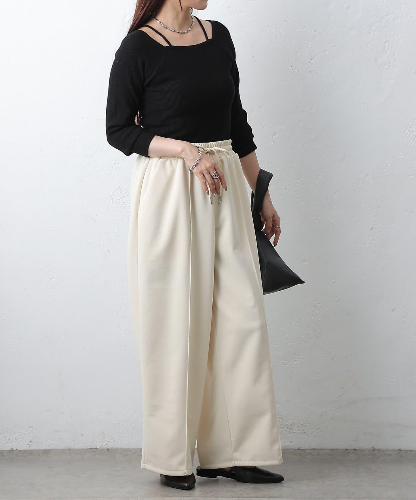 寬大的中縫長褲,褲腿效果優美,給人寬鬆的感覺。