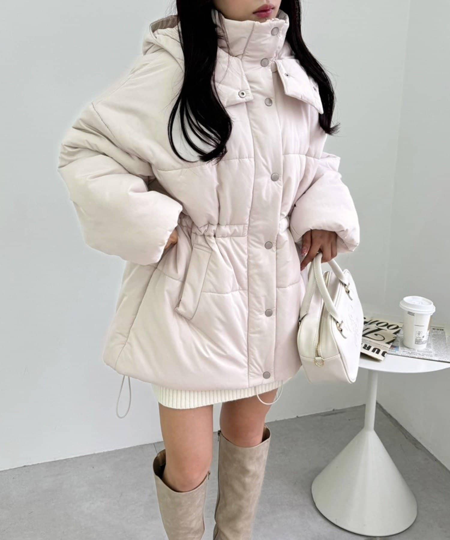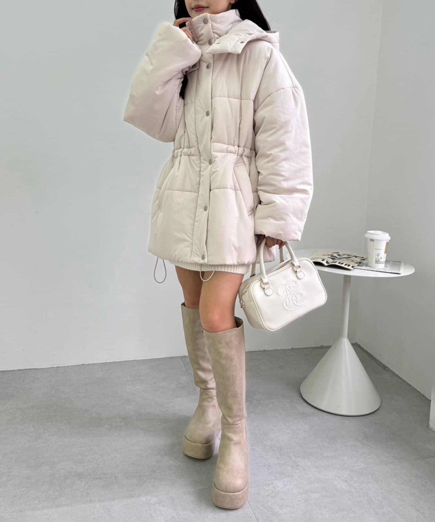 腰部可以收緊,所以雖然是羽絨服,也能穿出時尚感!