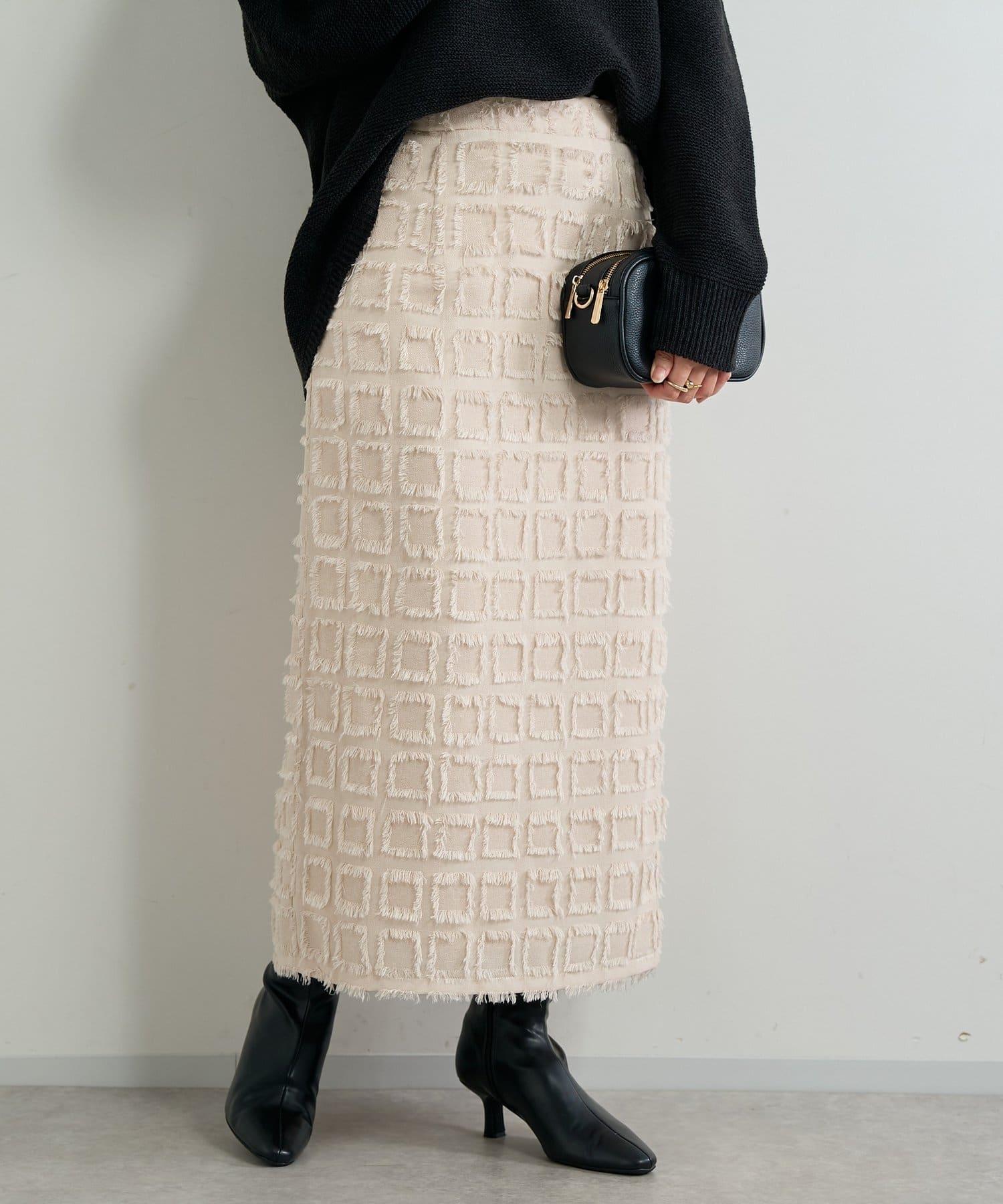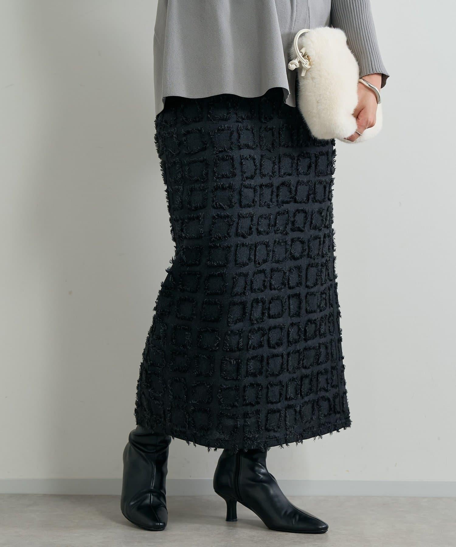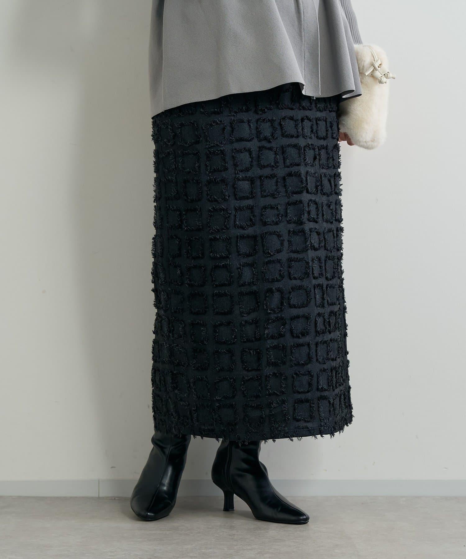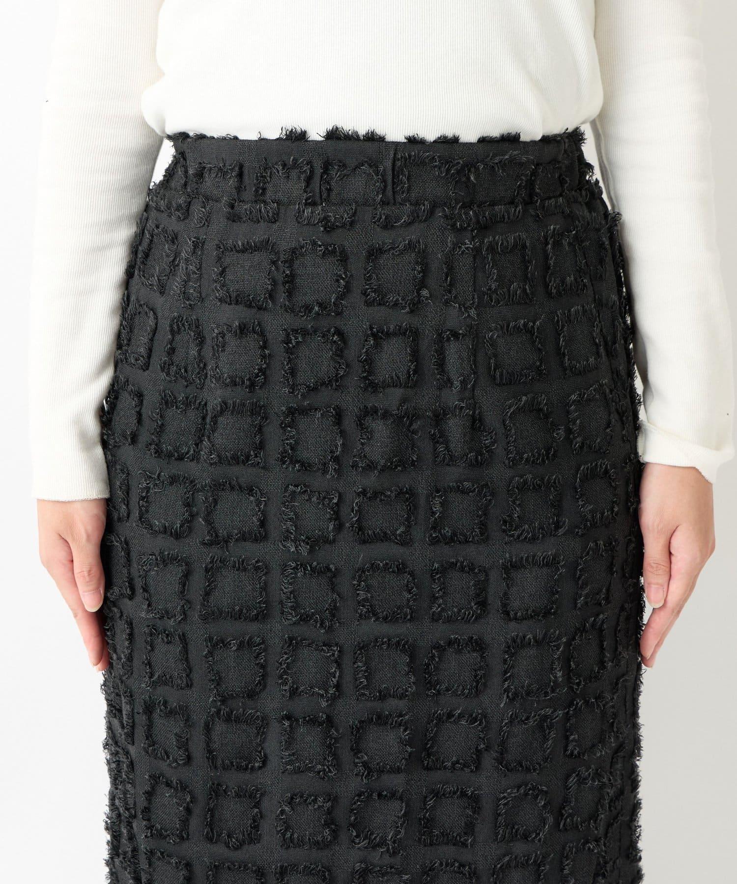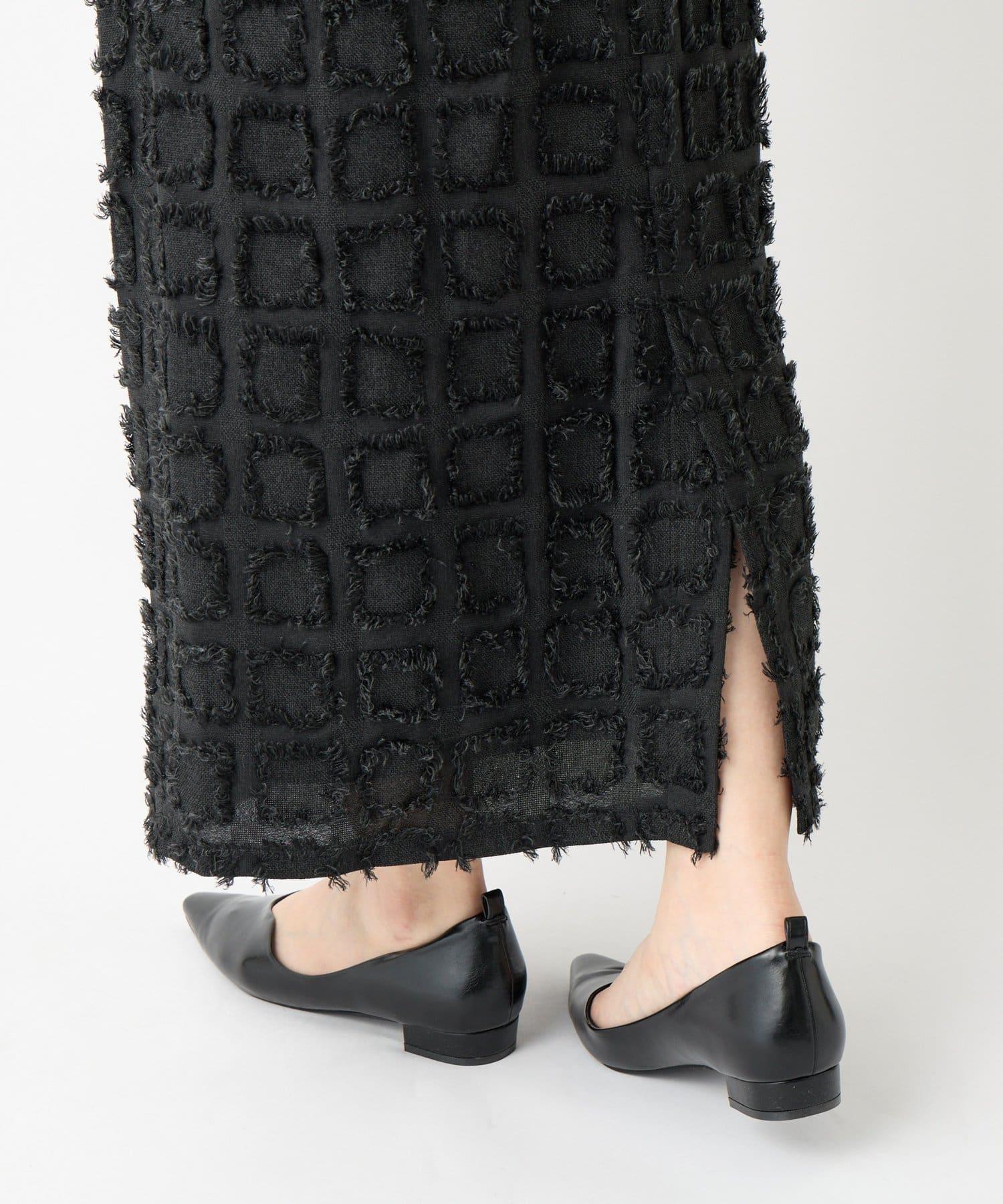 立體感十足的方形提花設計吸引眼球,讓這款裙子成為全場的焦點。