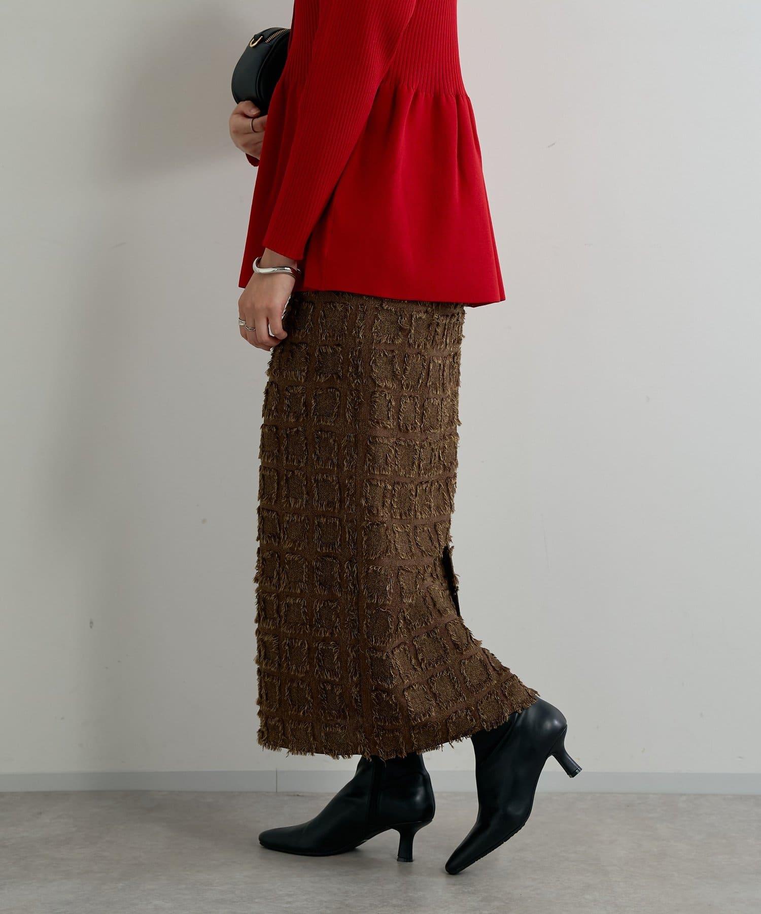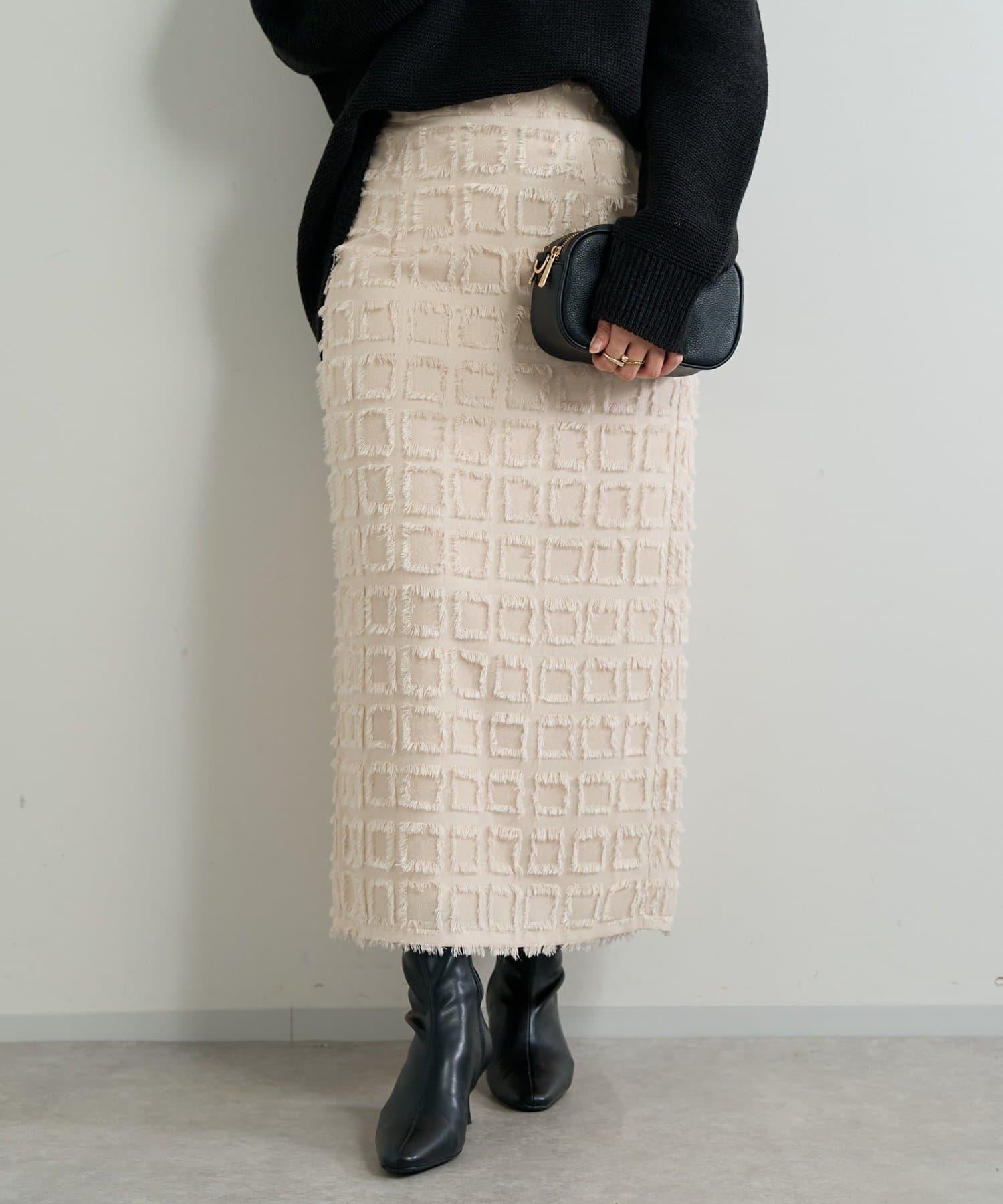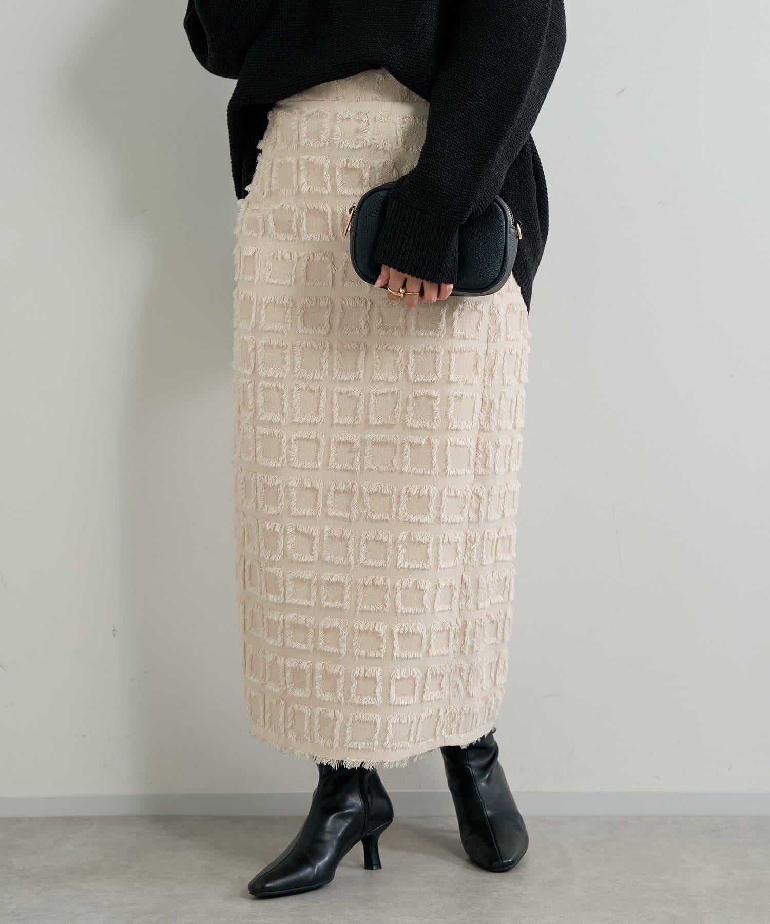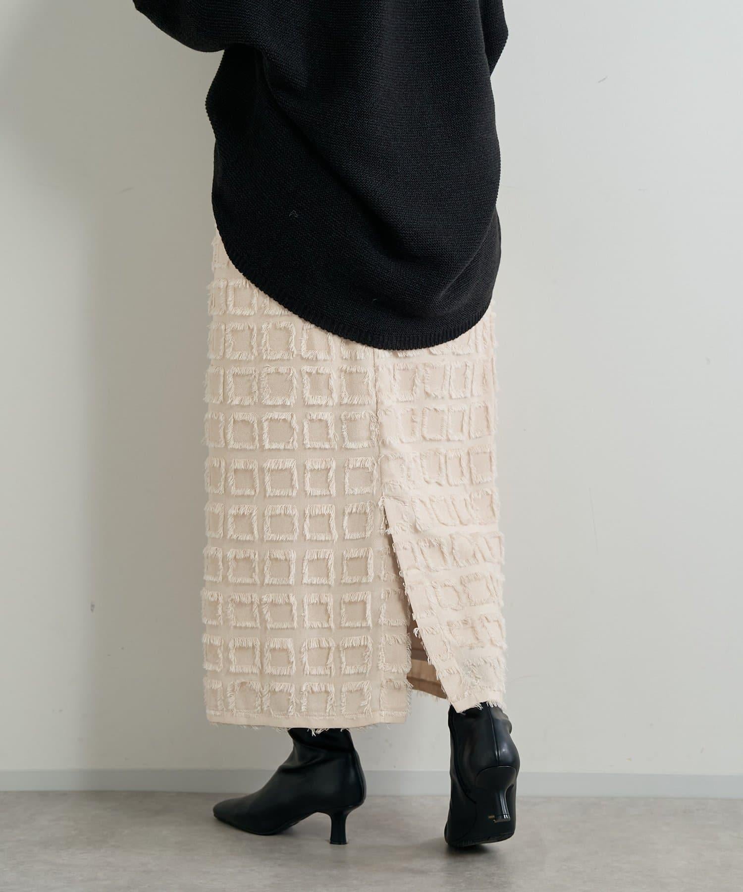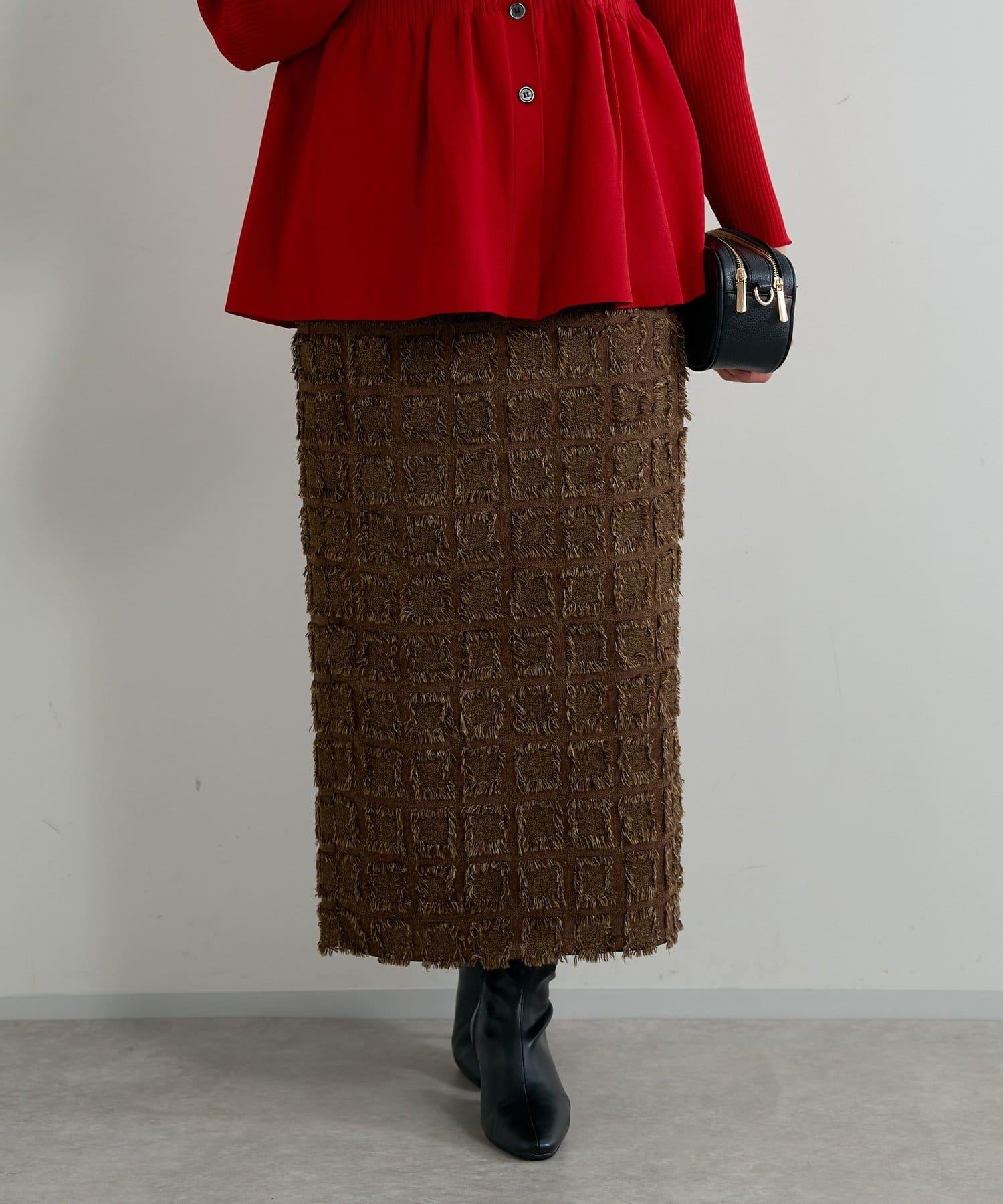 立體感十足的方形提花設計吸引眼球,讓這款裙子成為全場的焦點。