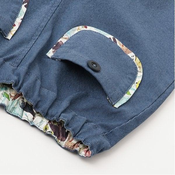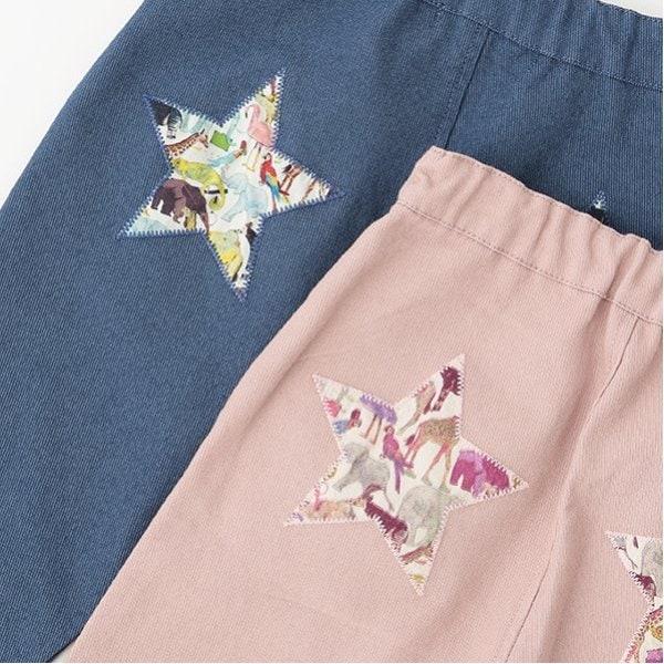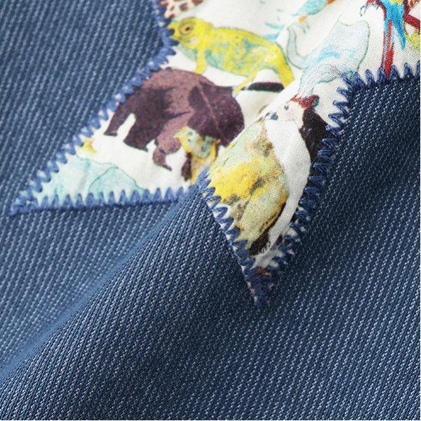 口袋採用鑲邊設計,Liberty 面料上繡有星星貼花。