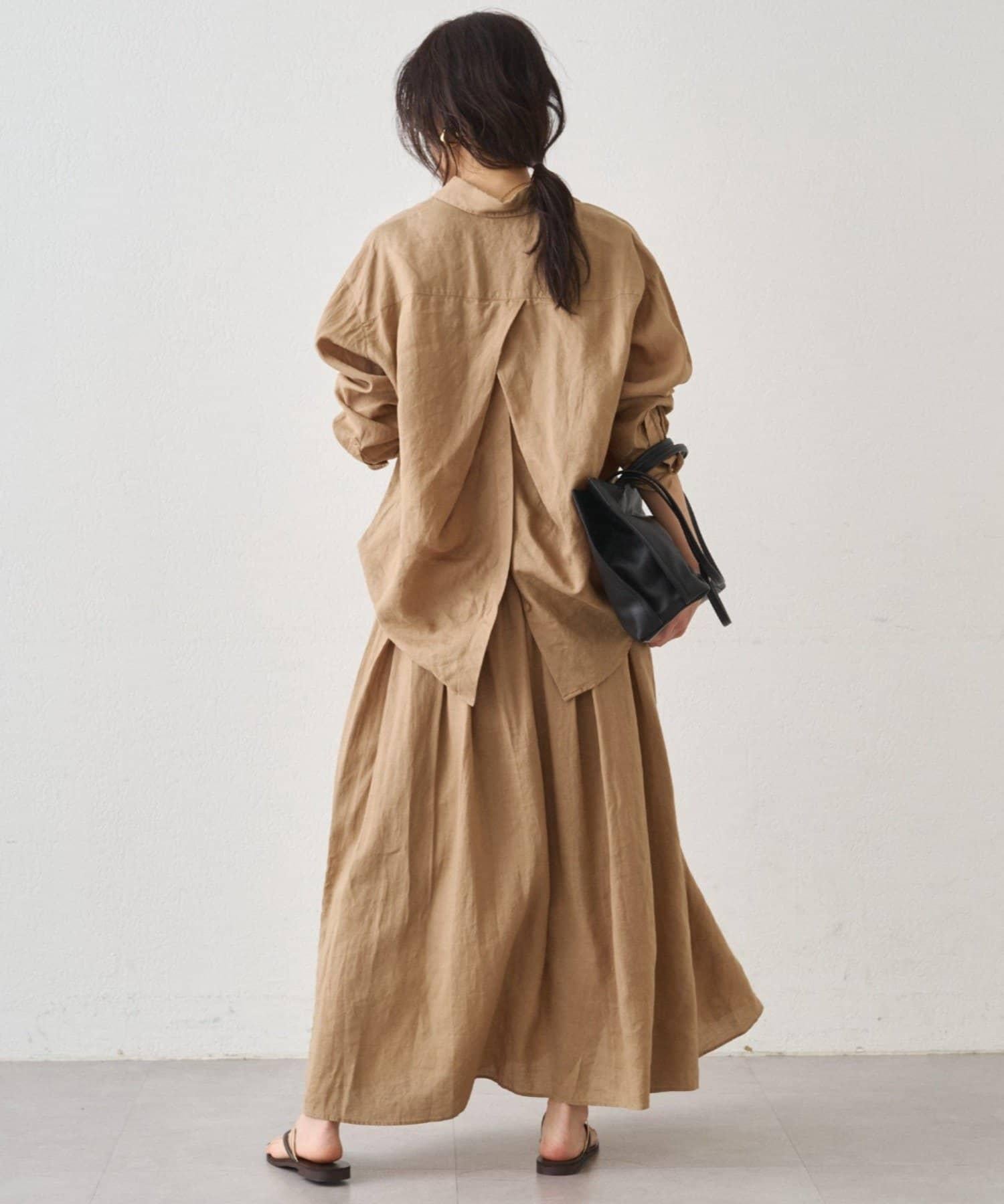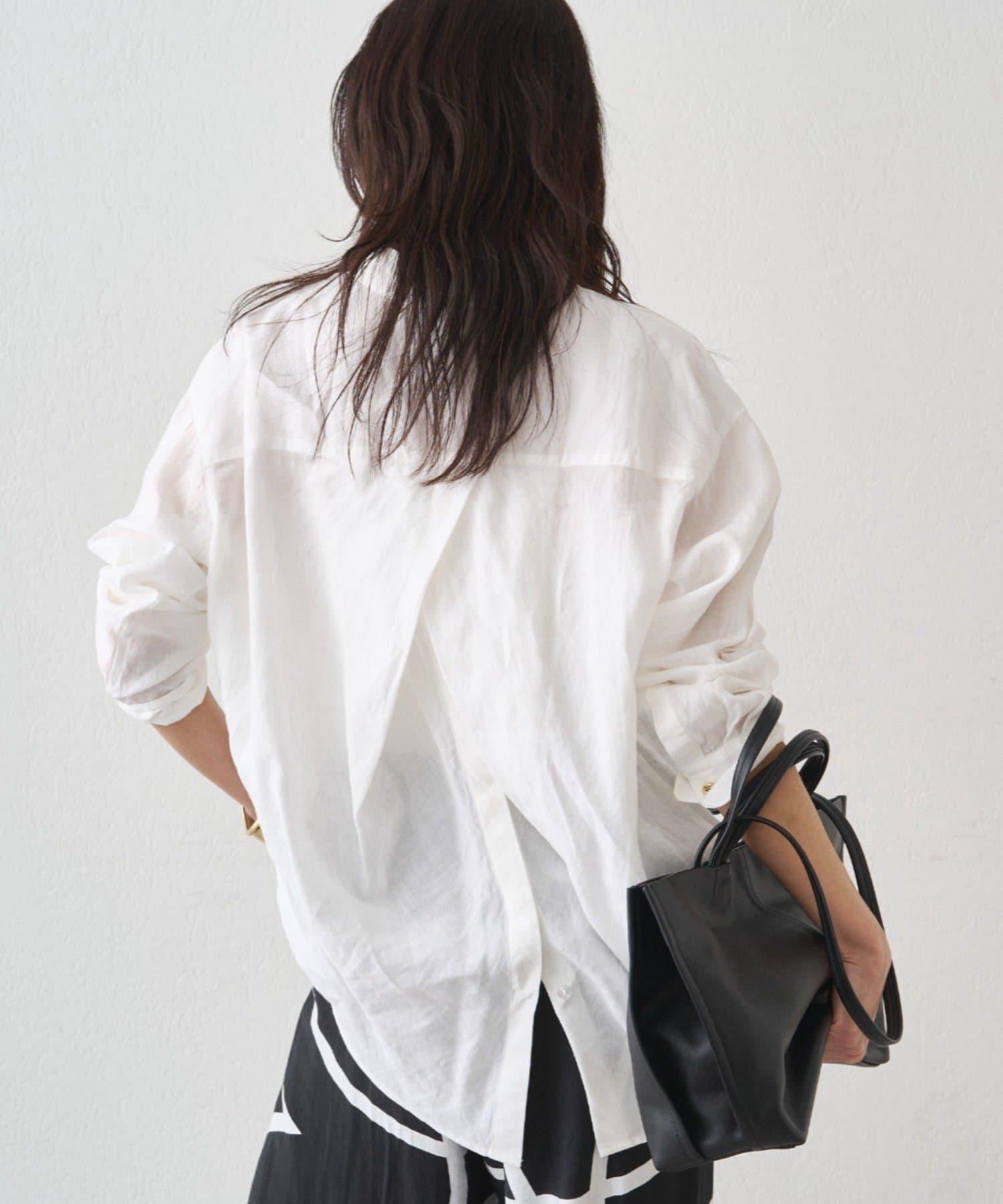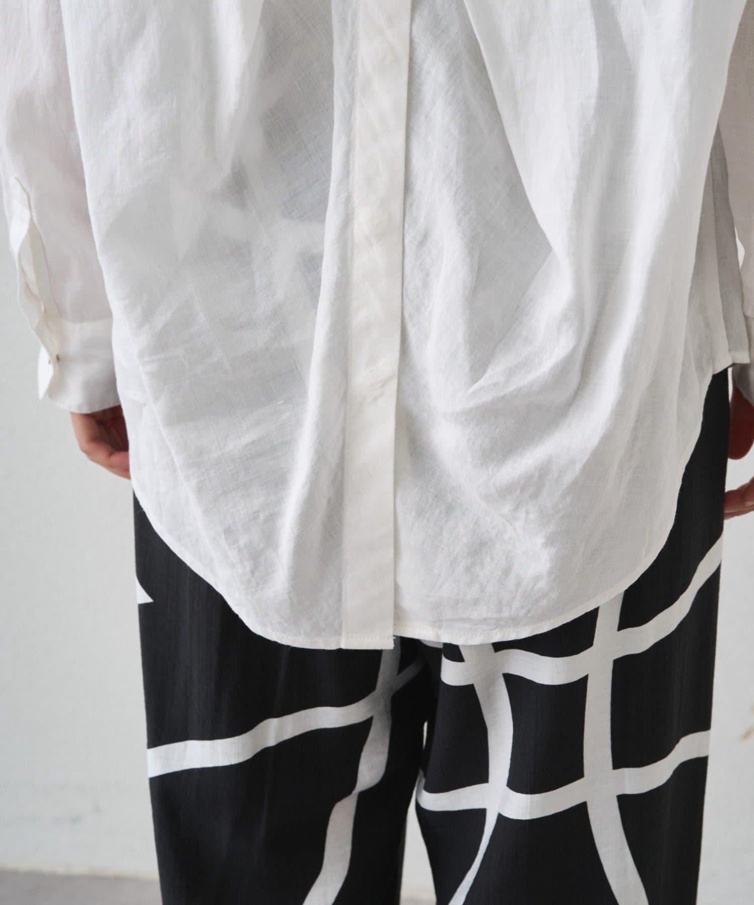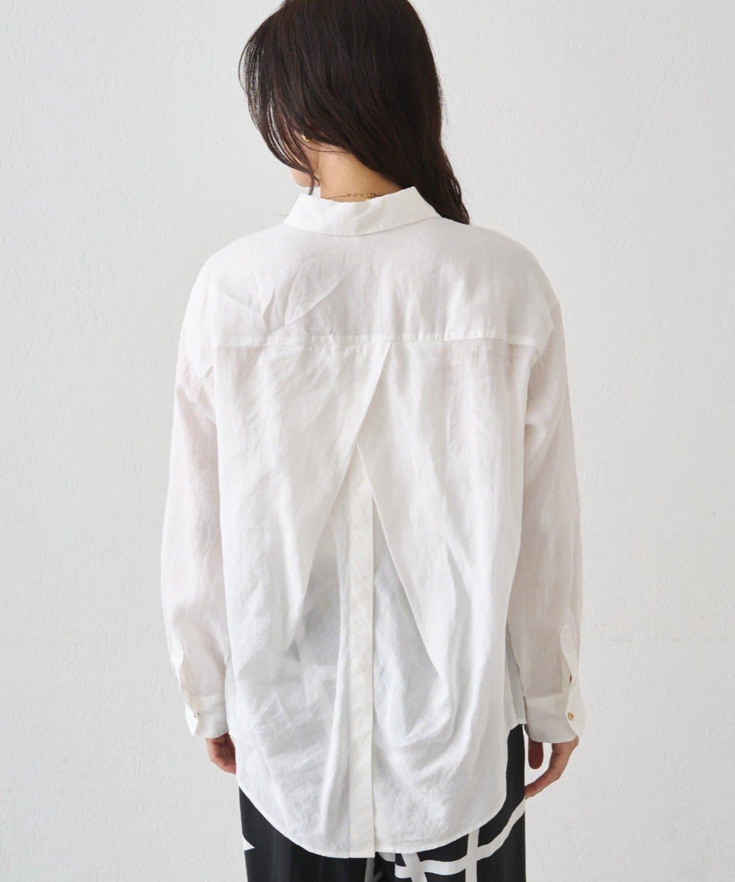 亞麻後繫帶設計襯衫
