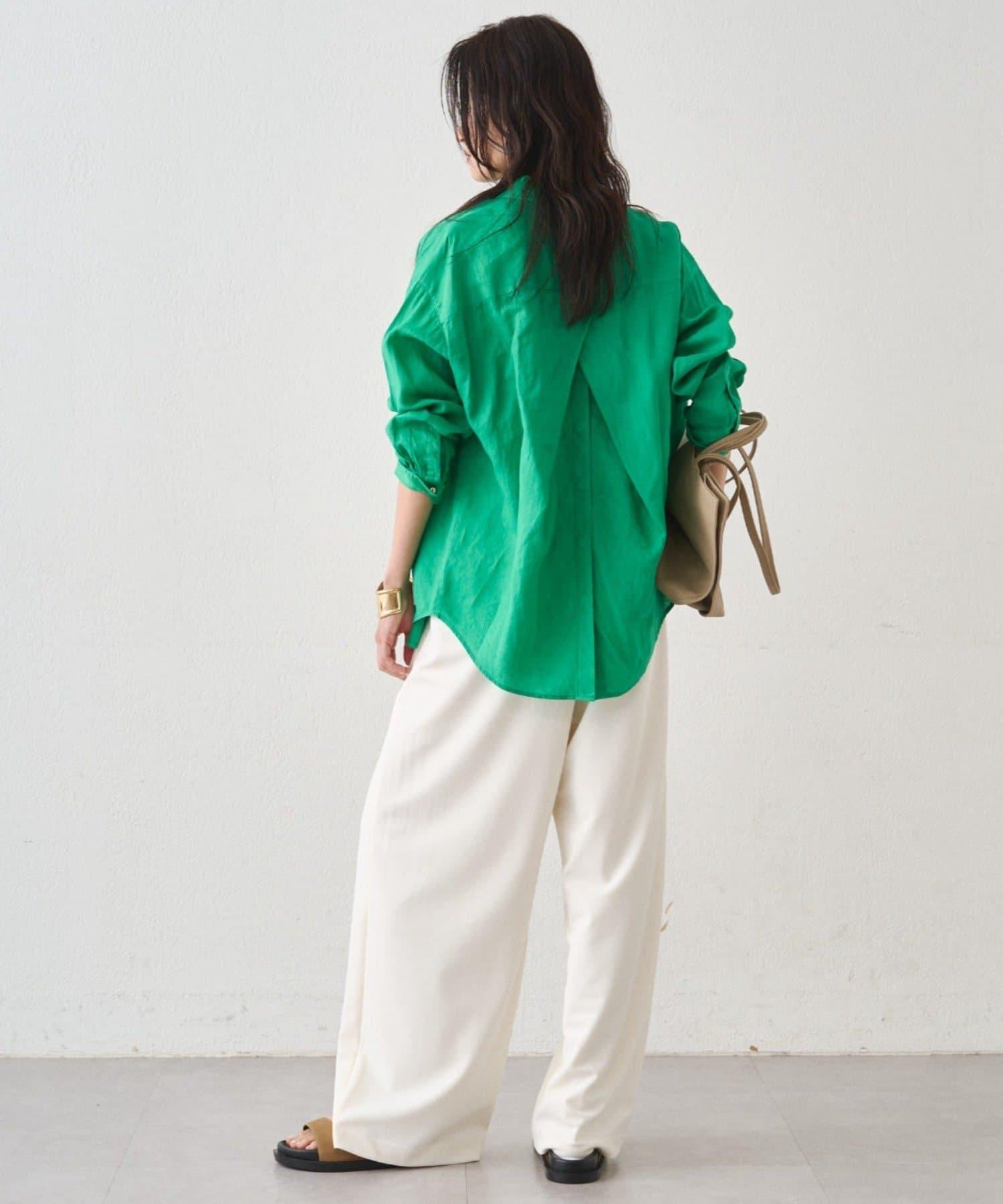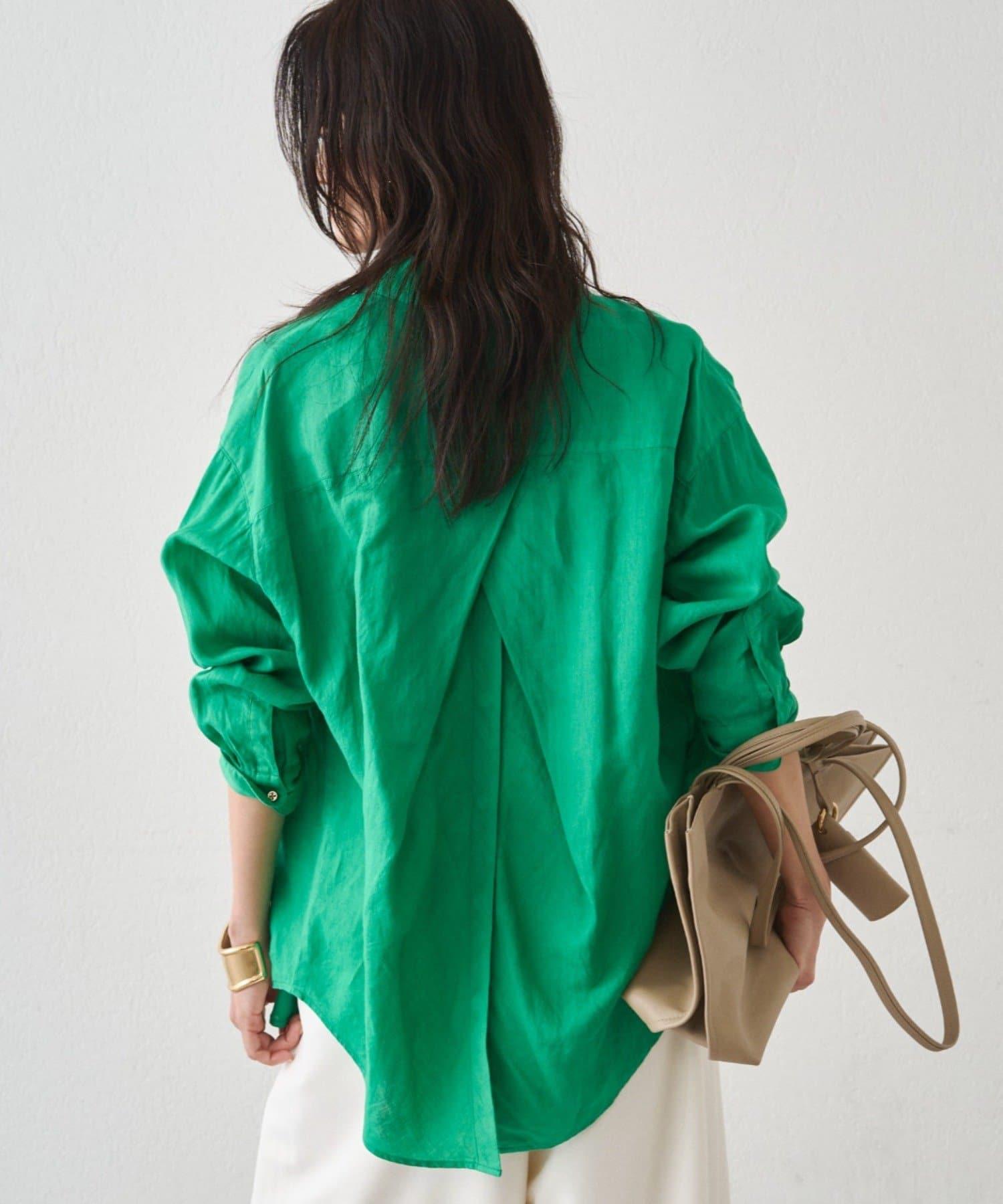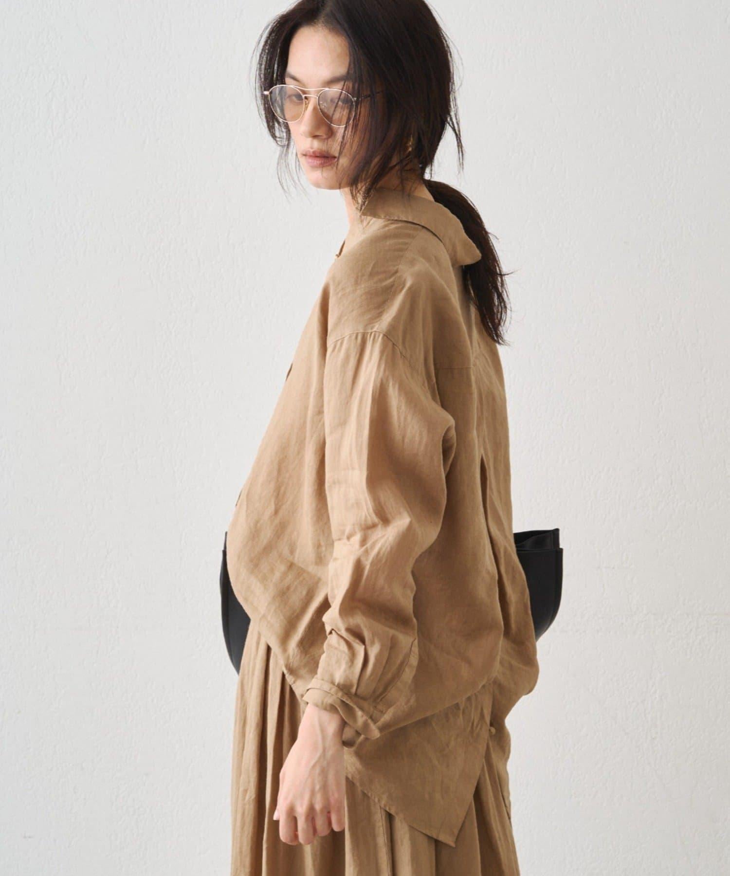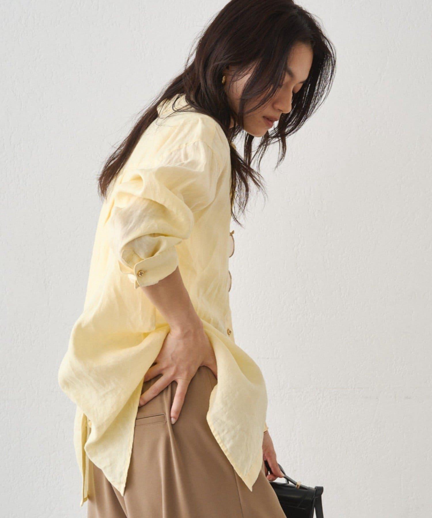 亞麻後繫帶設計襯衫