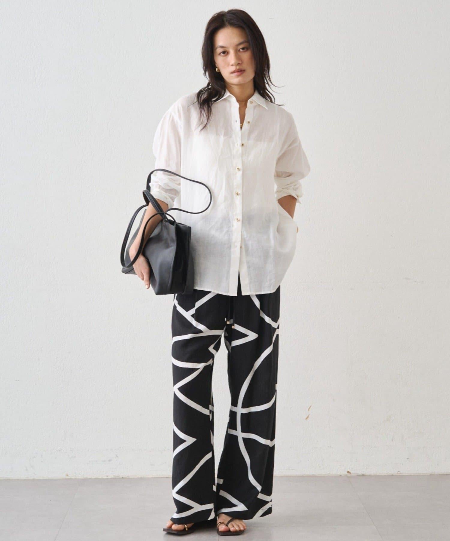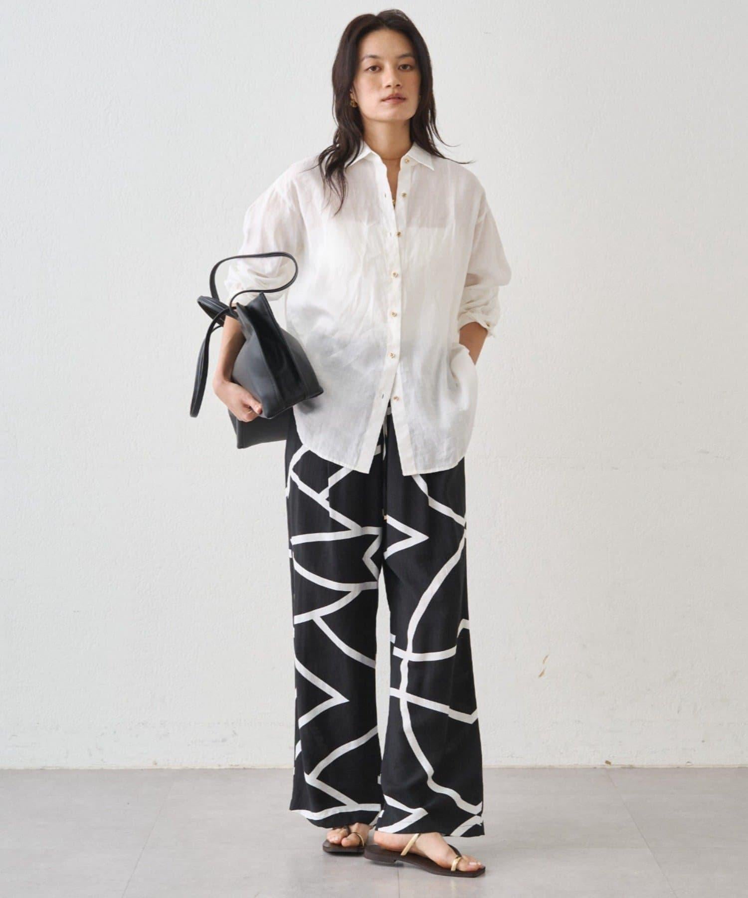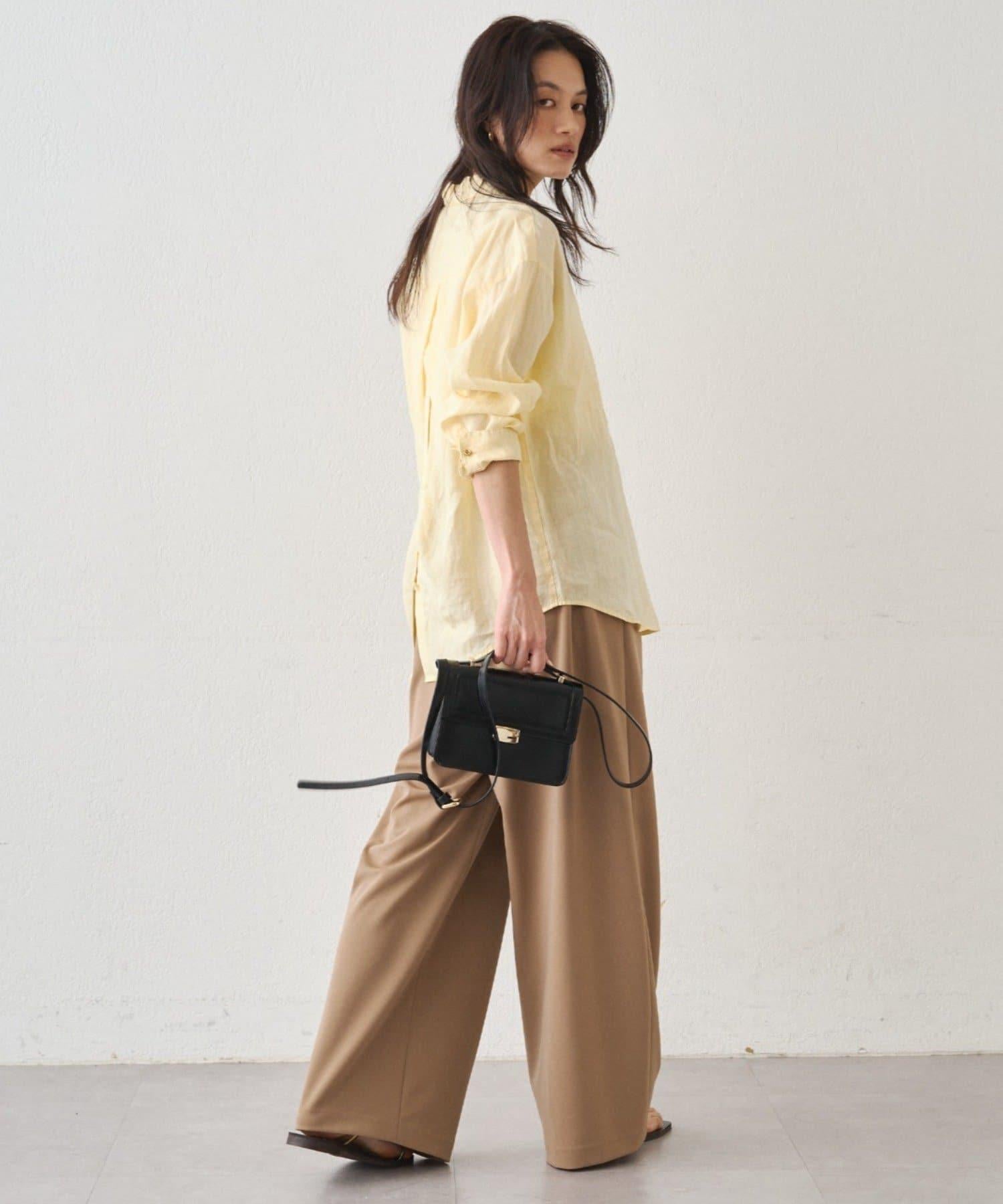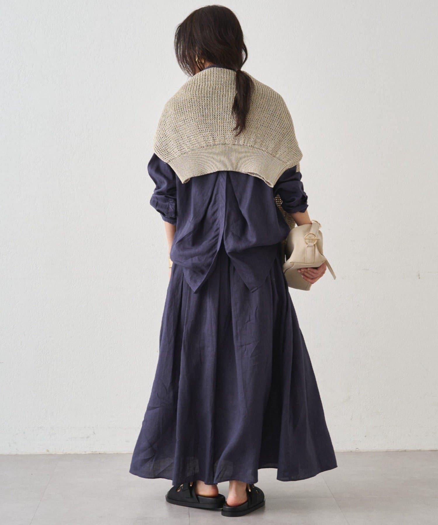 亞麻後繫帶設計襯衫