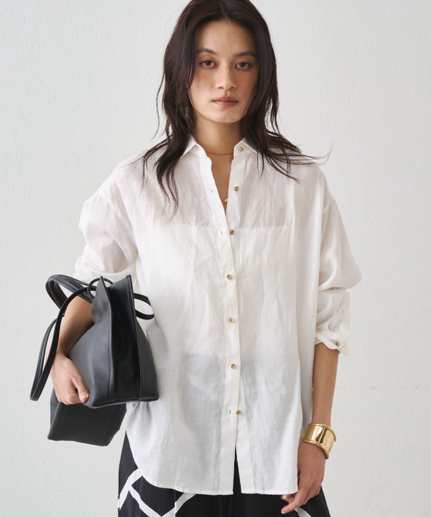 金色紐扣突出了襯衫的質感,使其穿起來更加優雅。