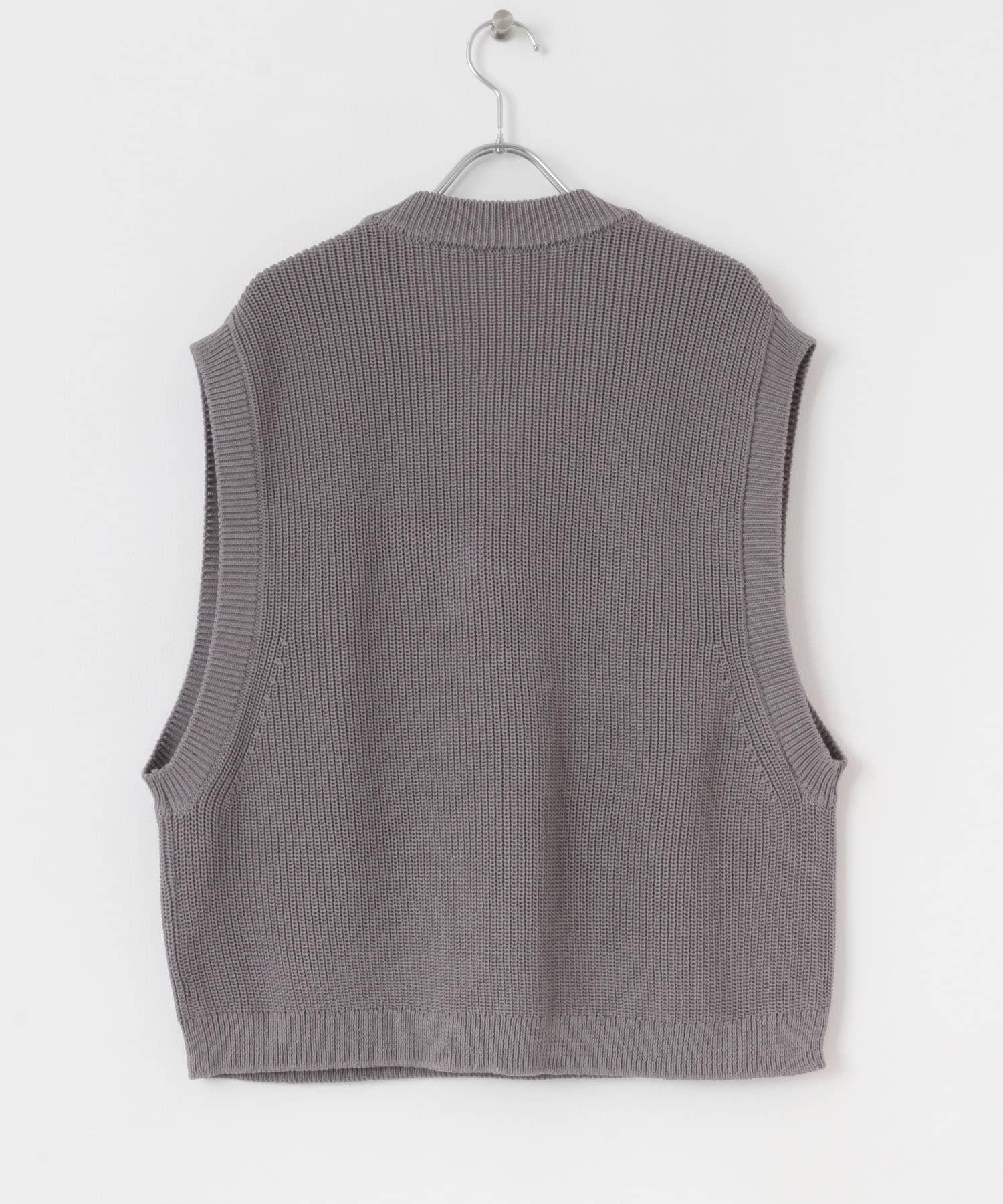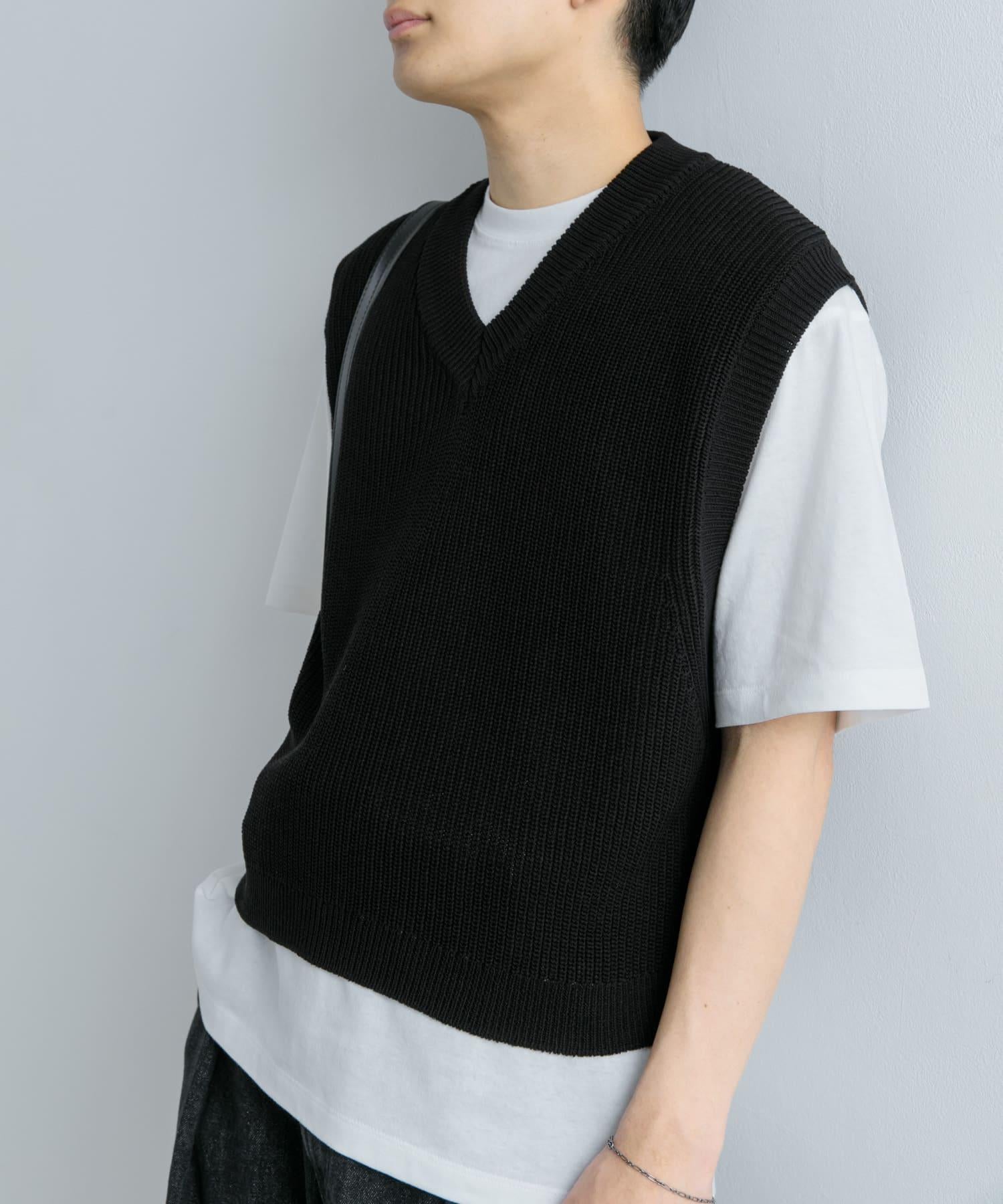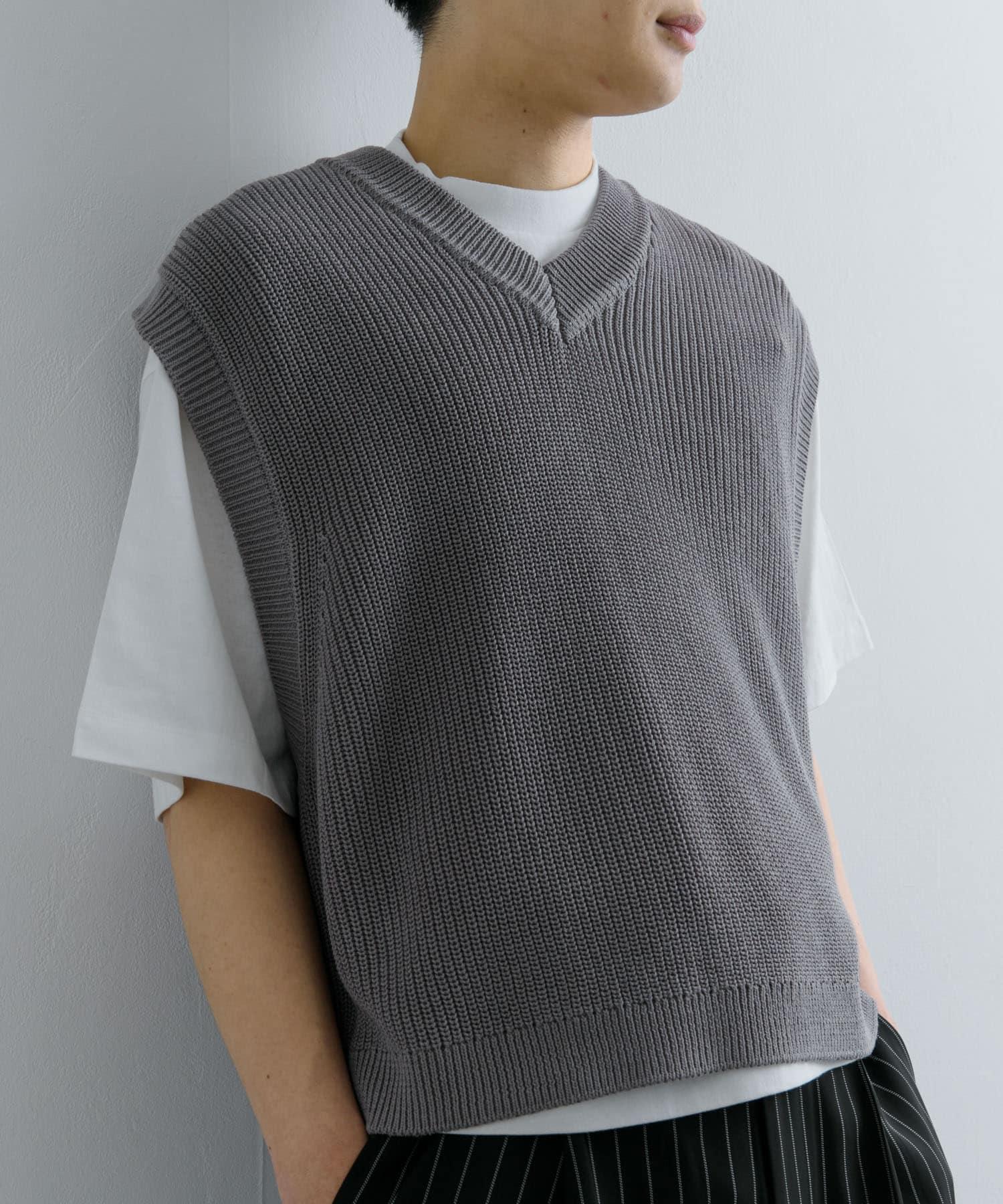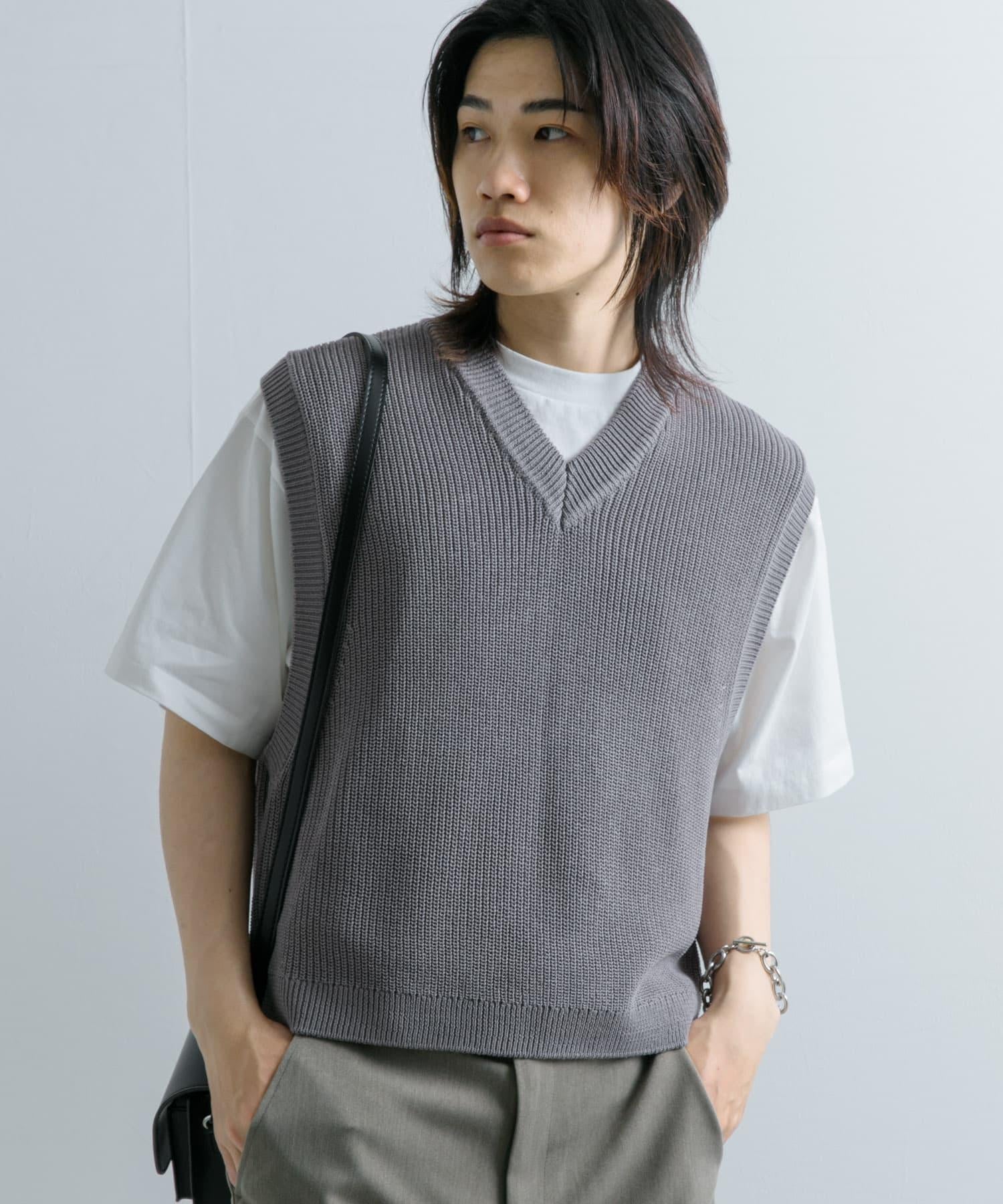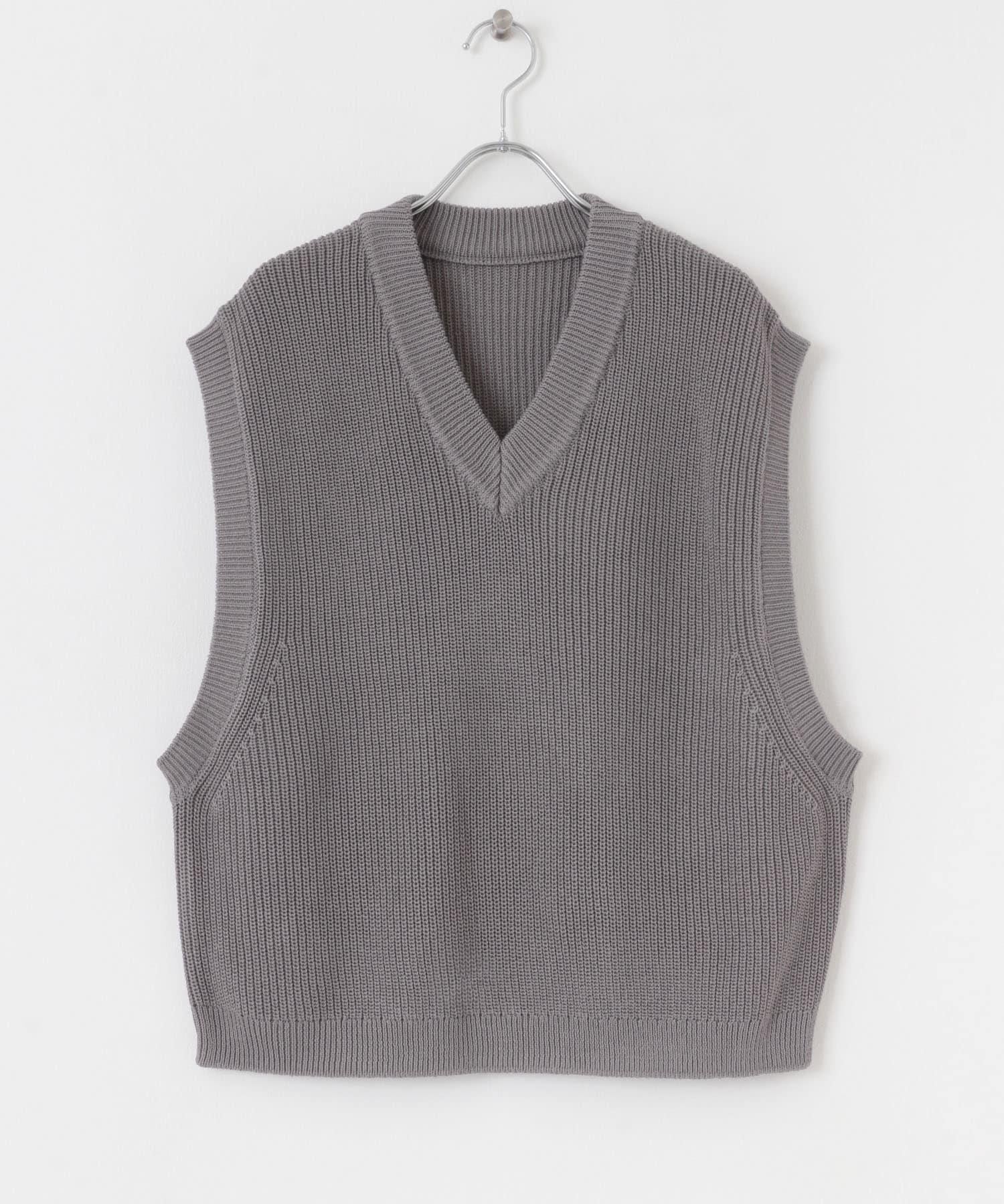 這款針織馬甲採用凹凸有致的羅紋針織和深 V 領設計。