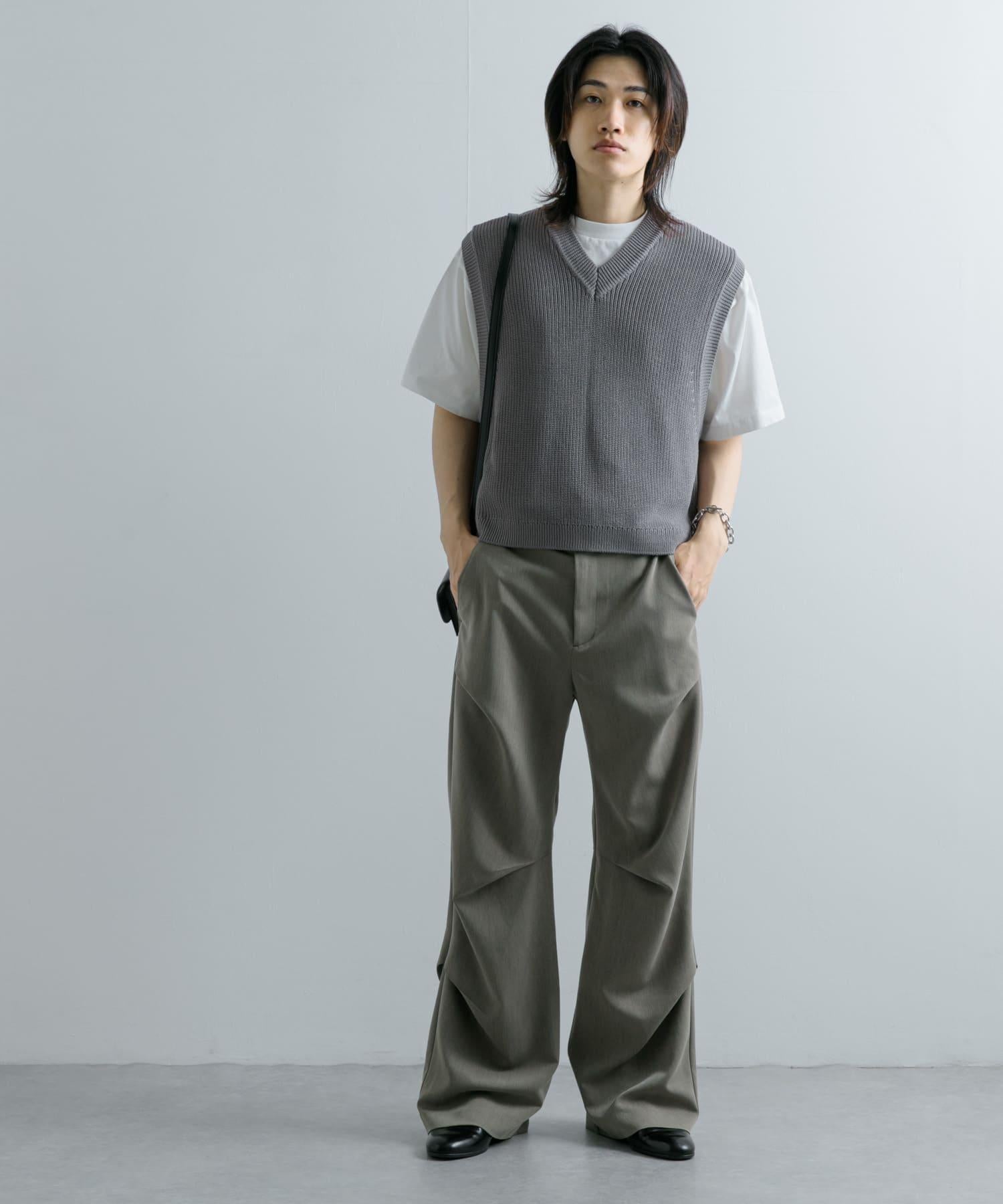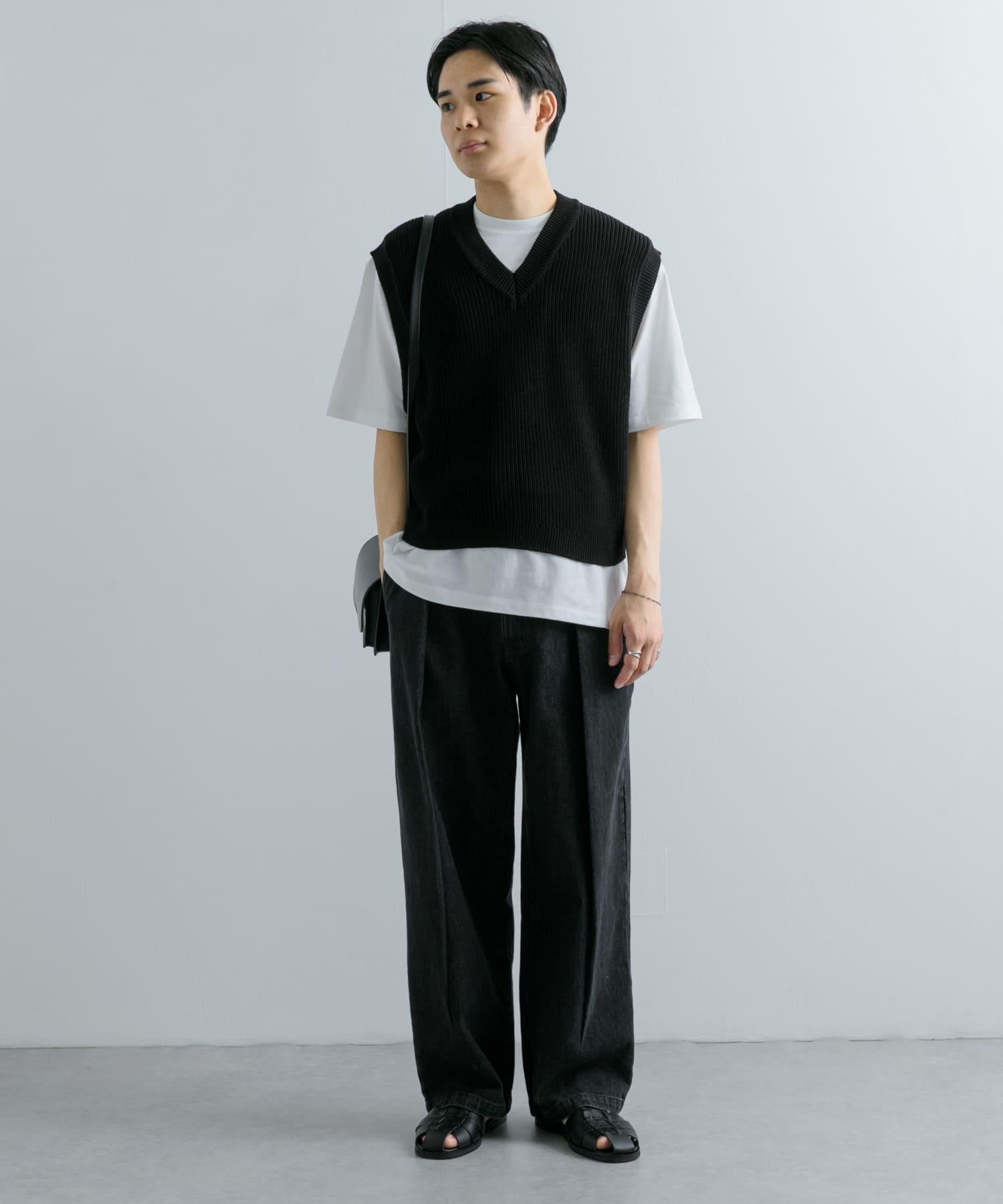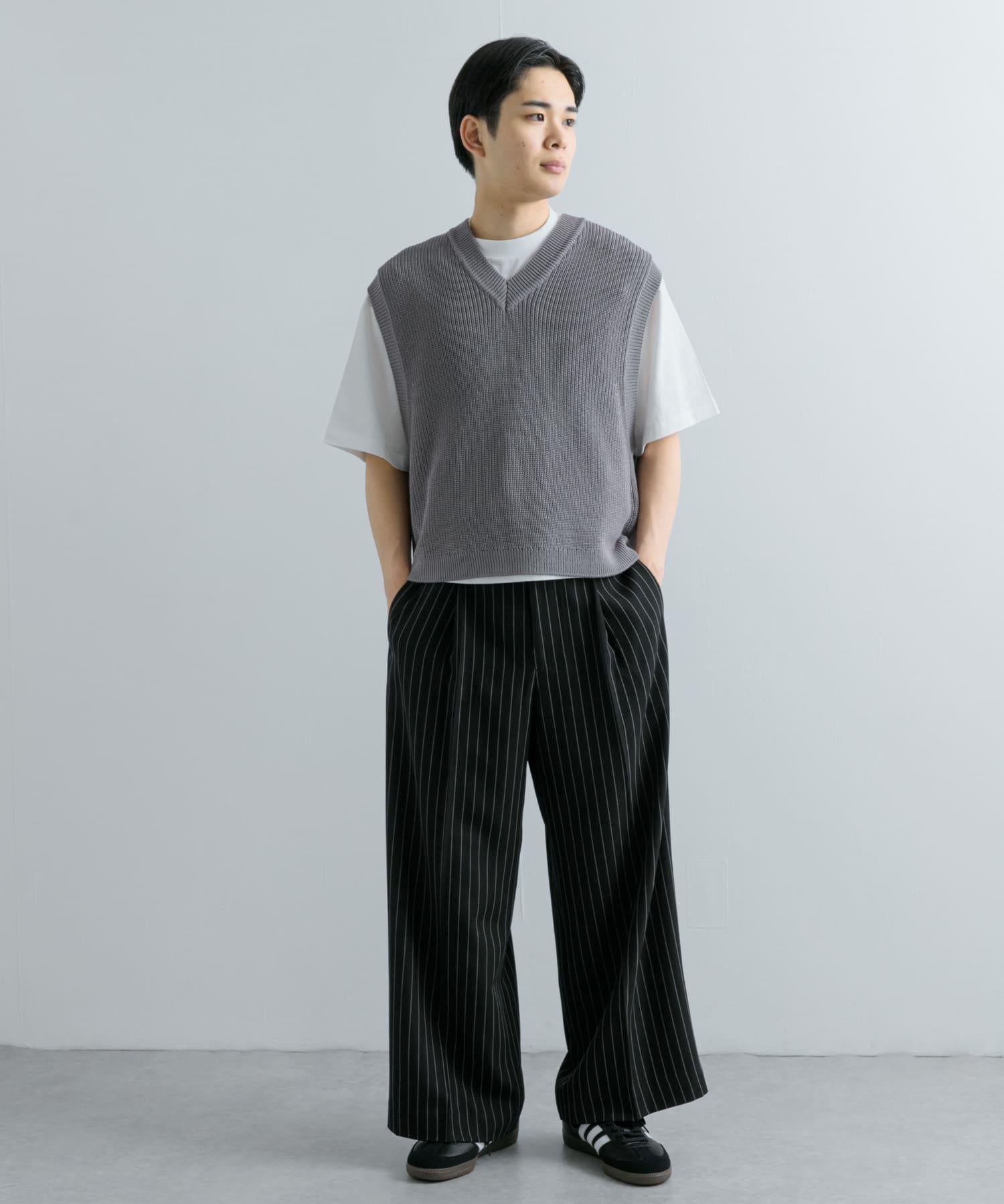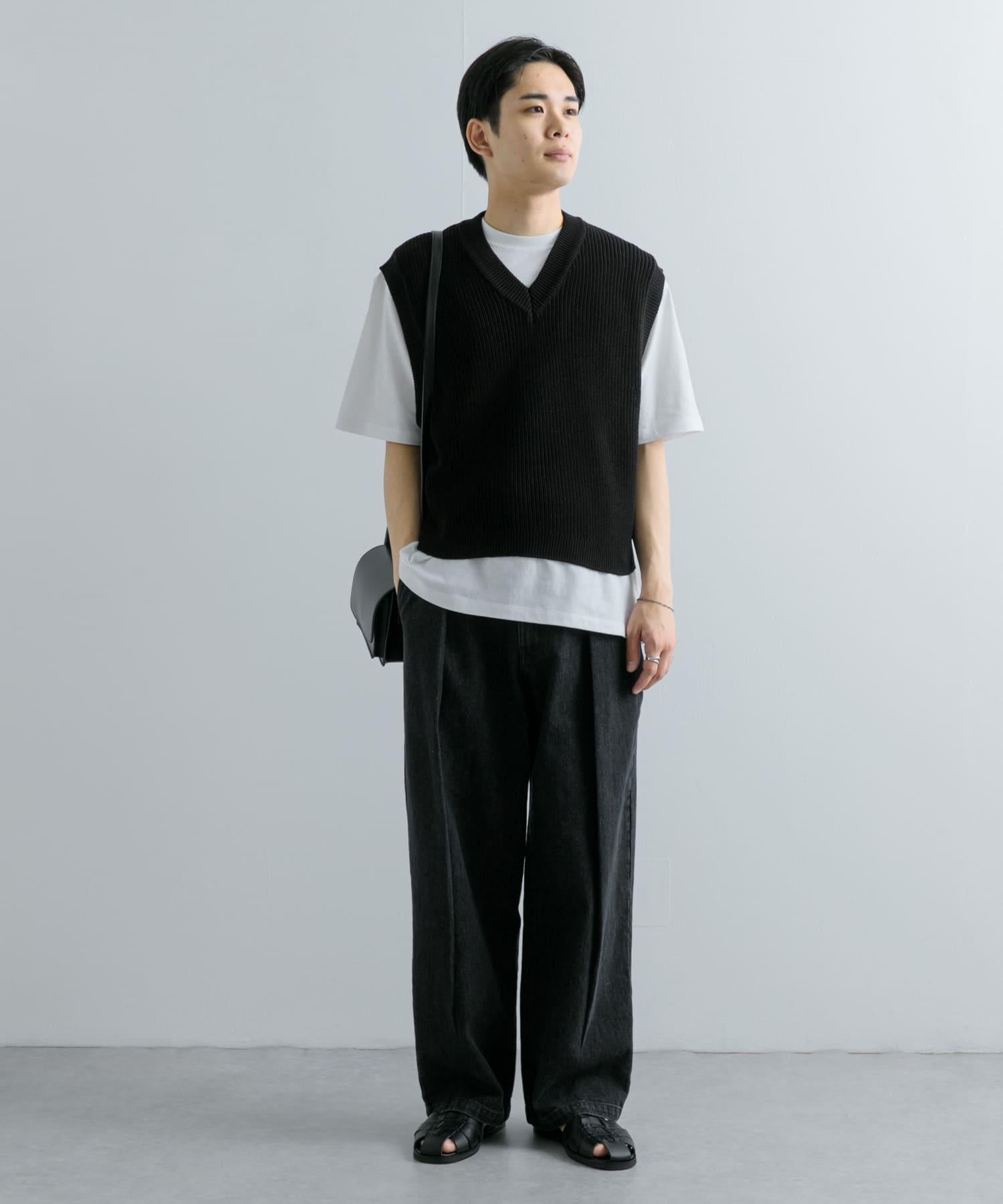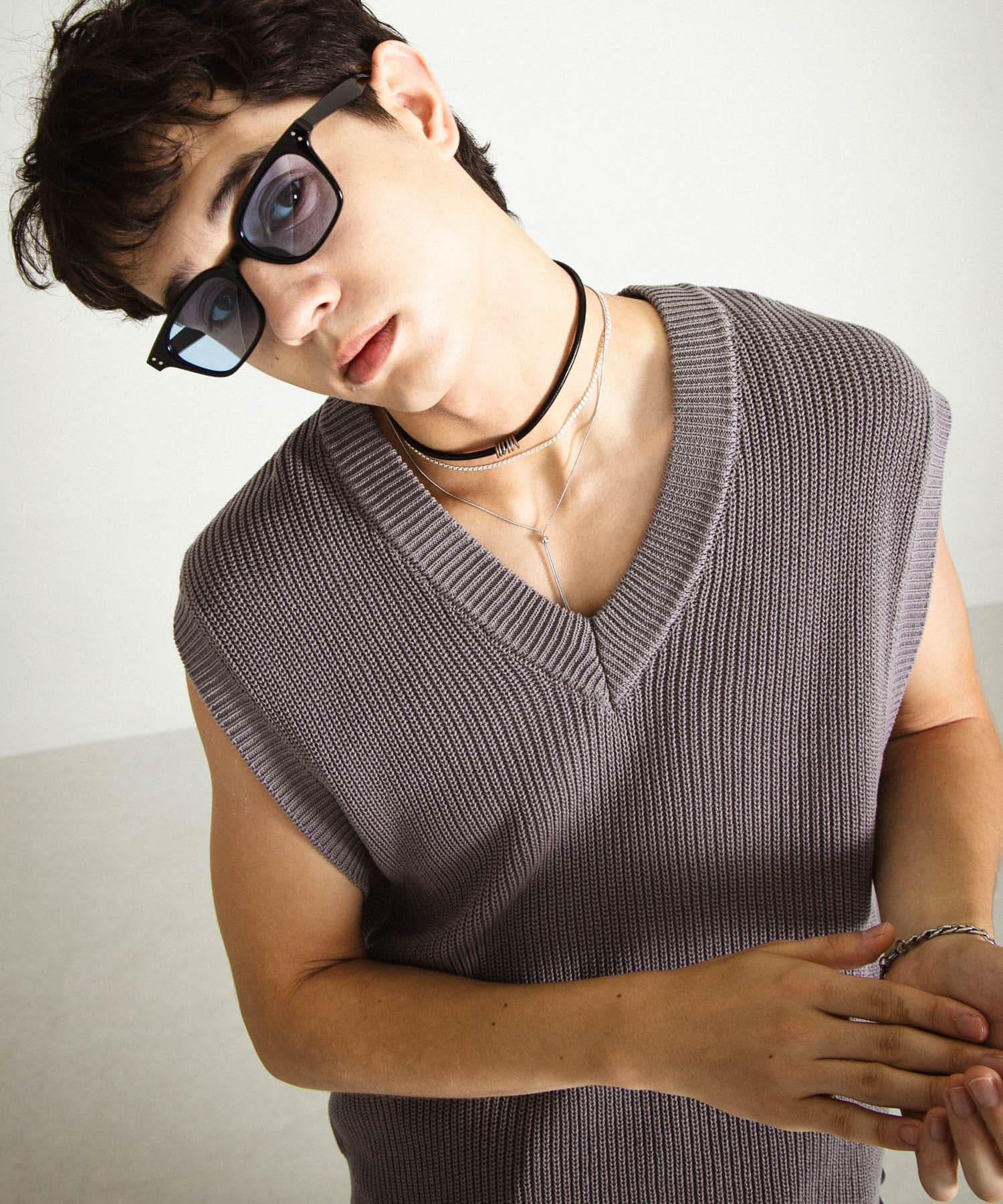 這款針織馬甲採用凹凸有致的羅紋針織和深 V 領設計。
