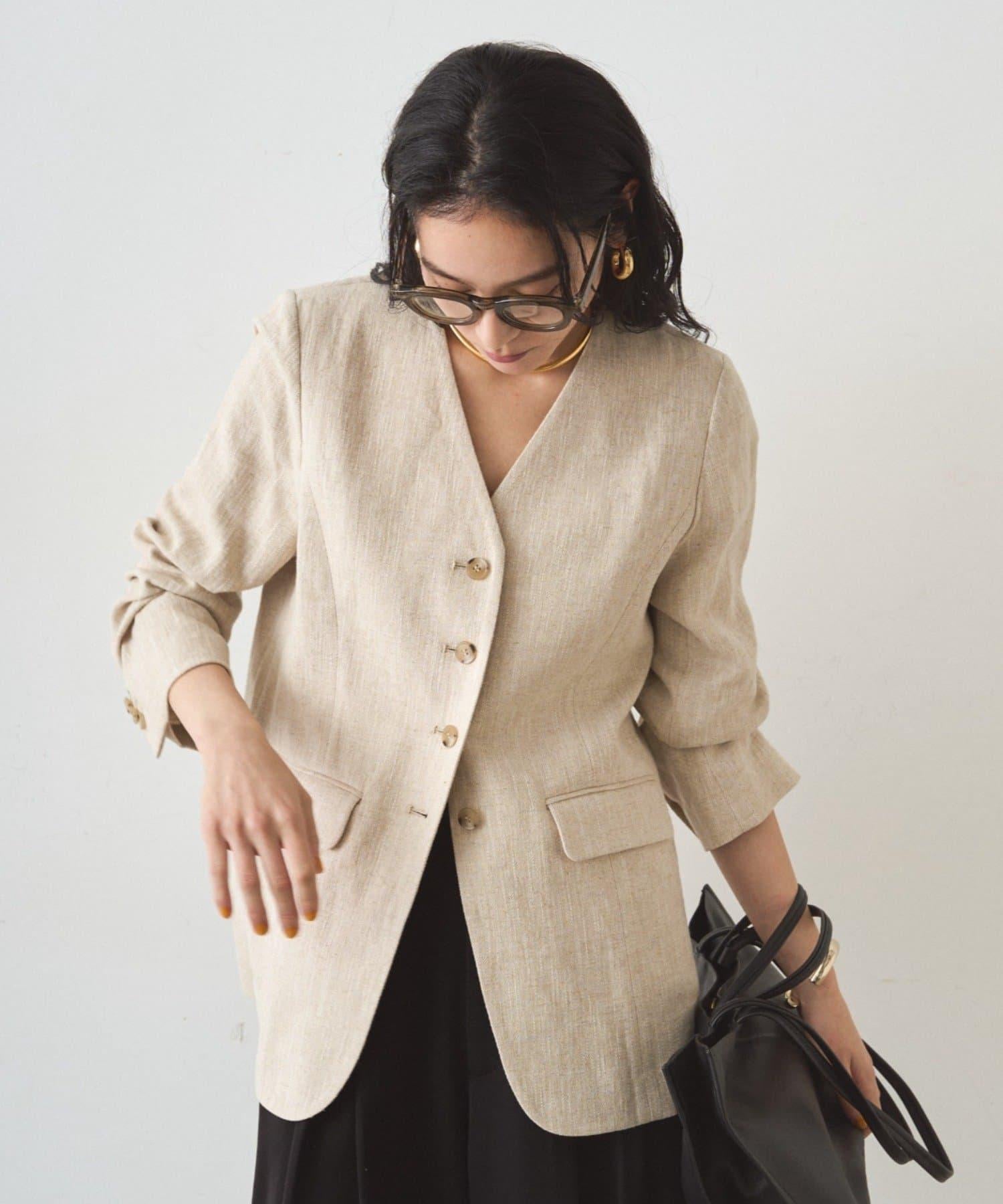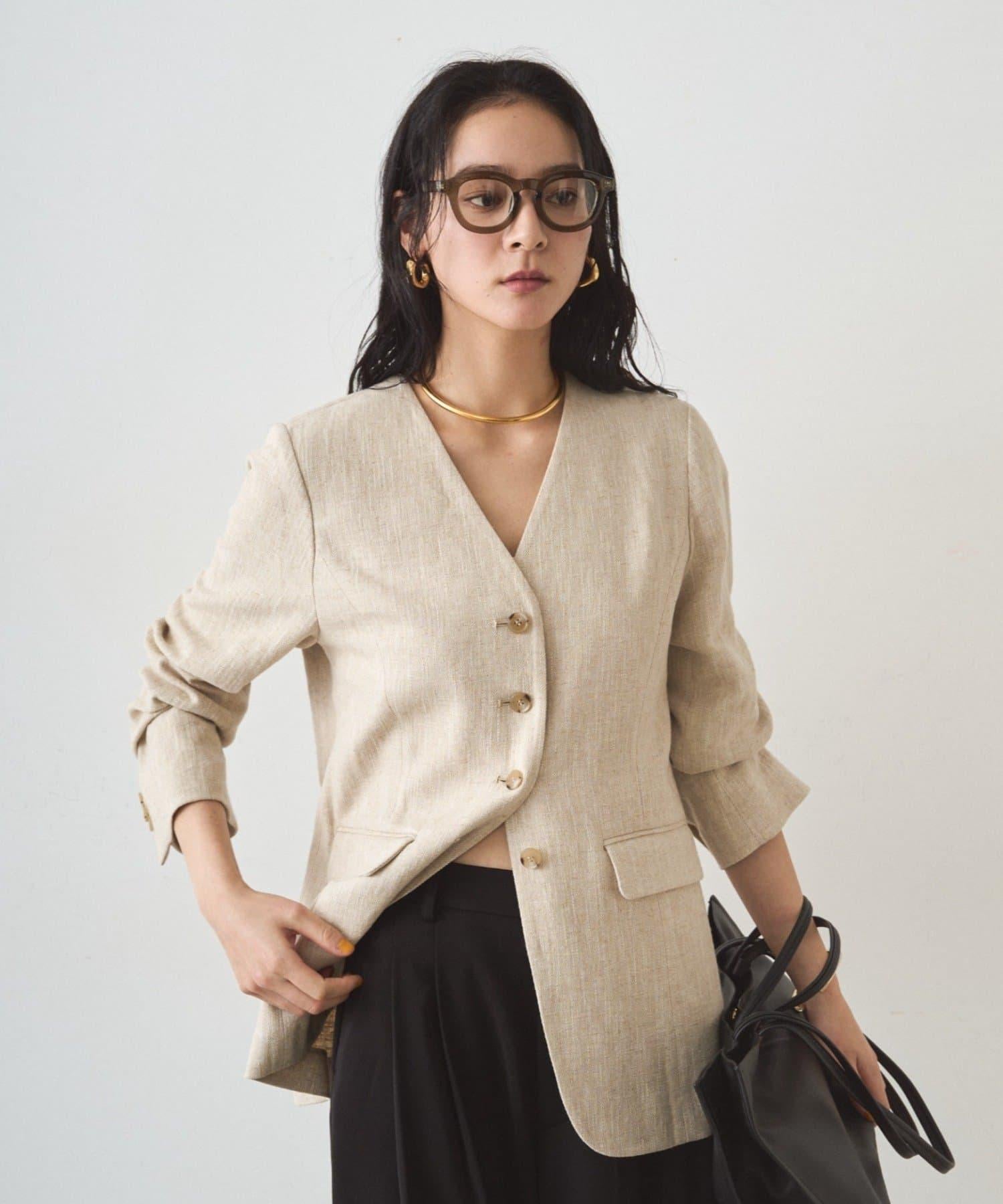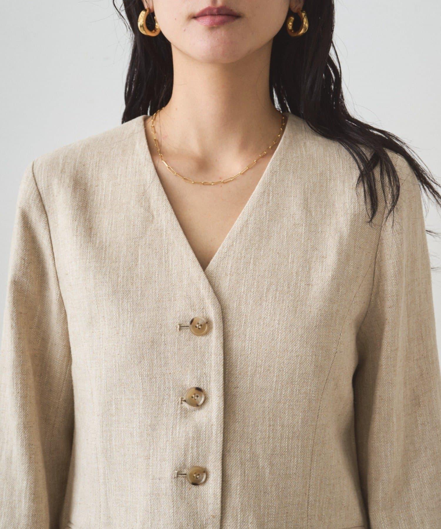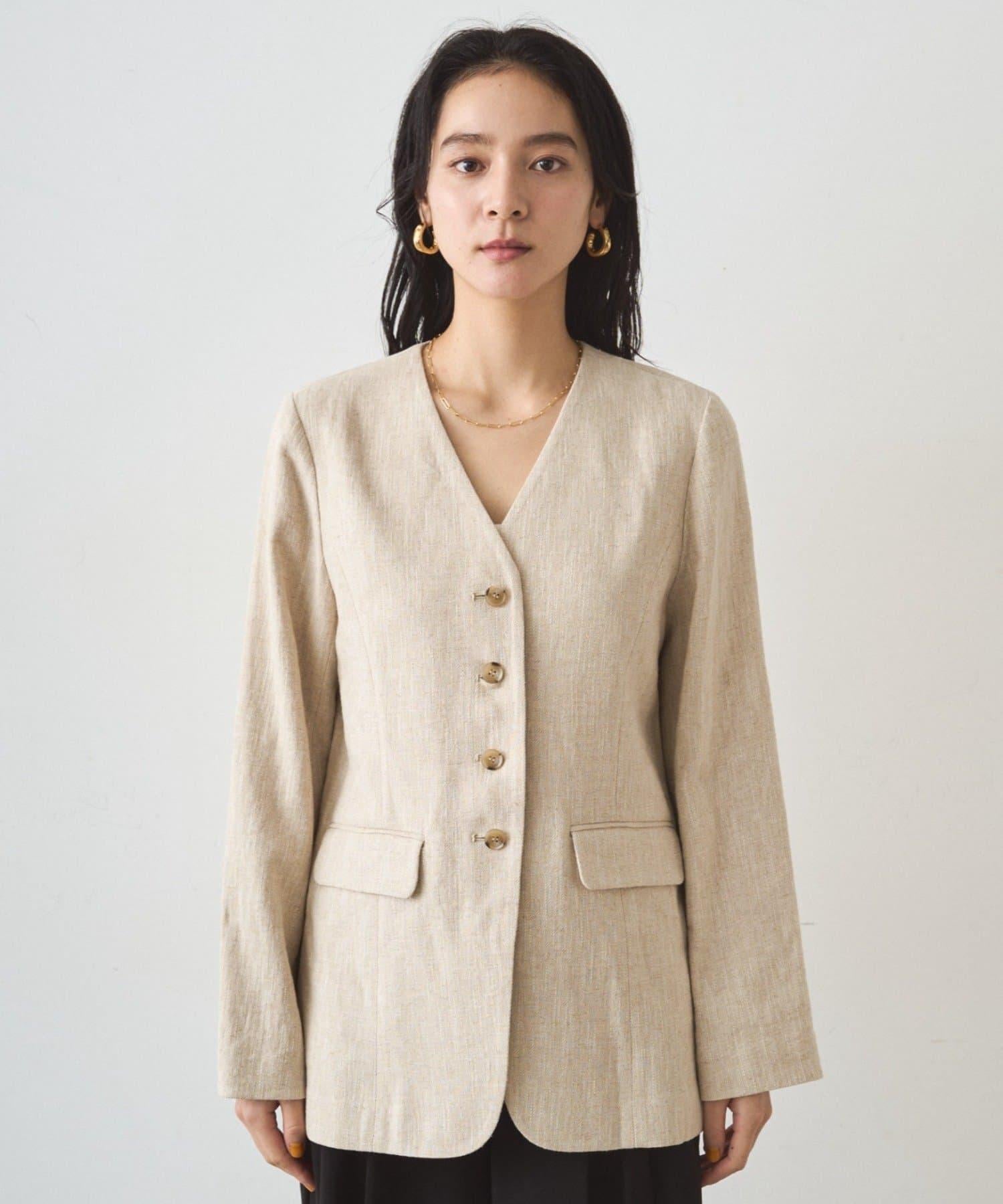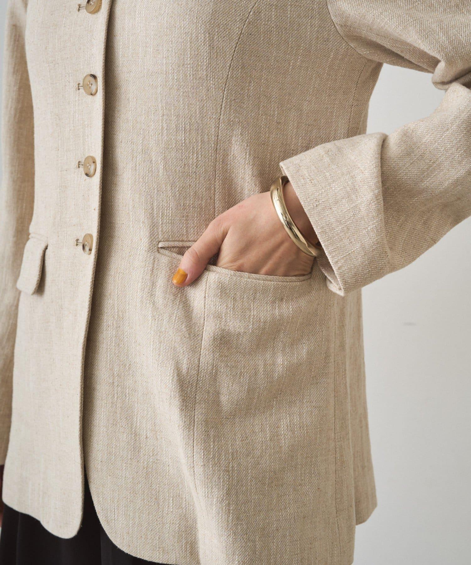 亞麻無領夾克