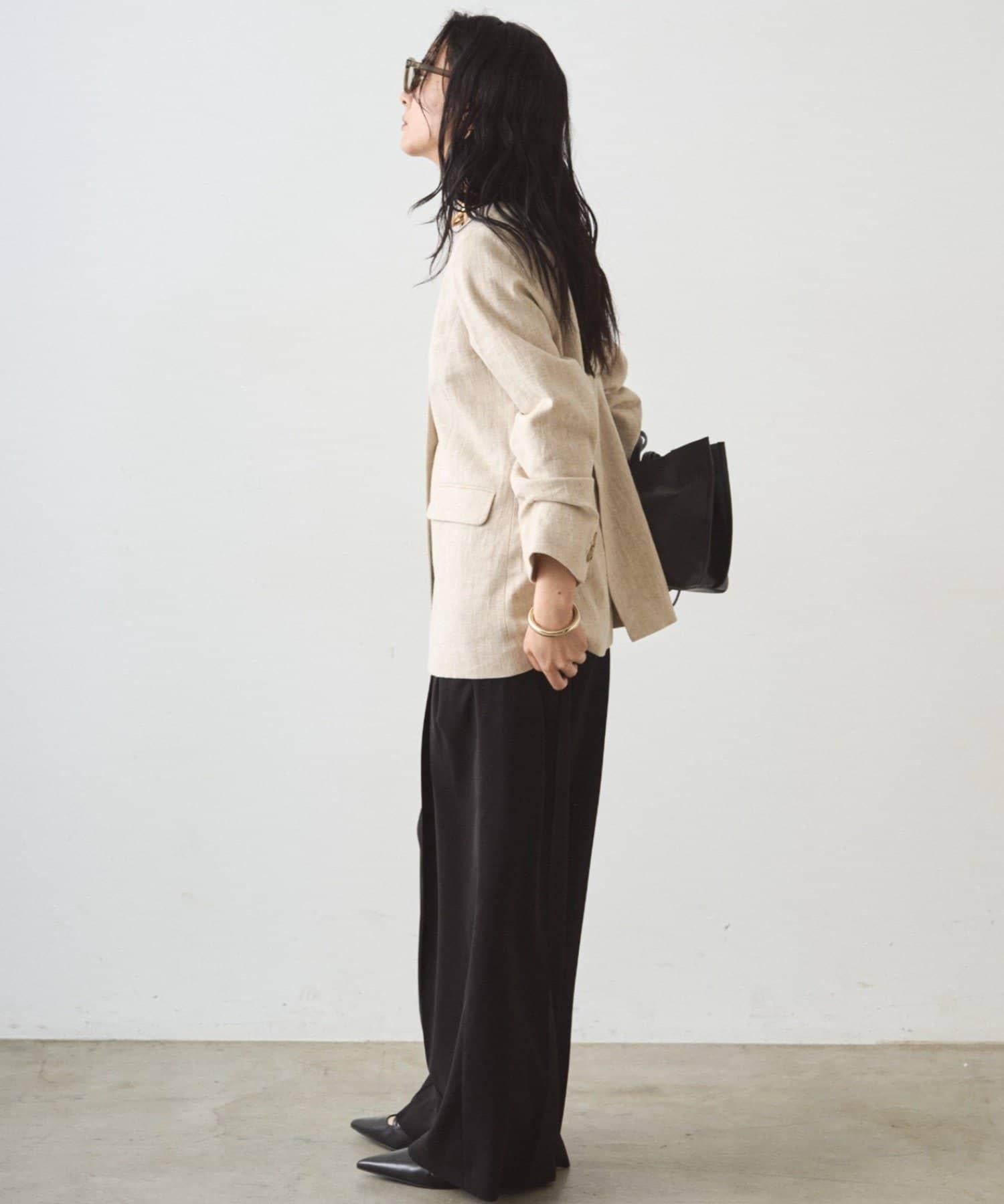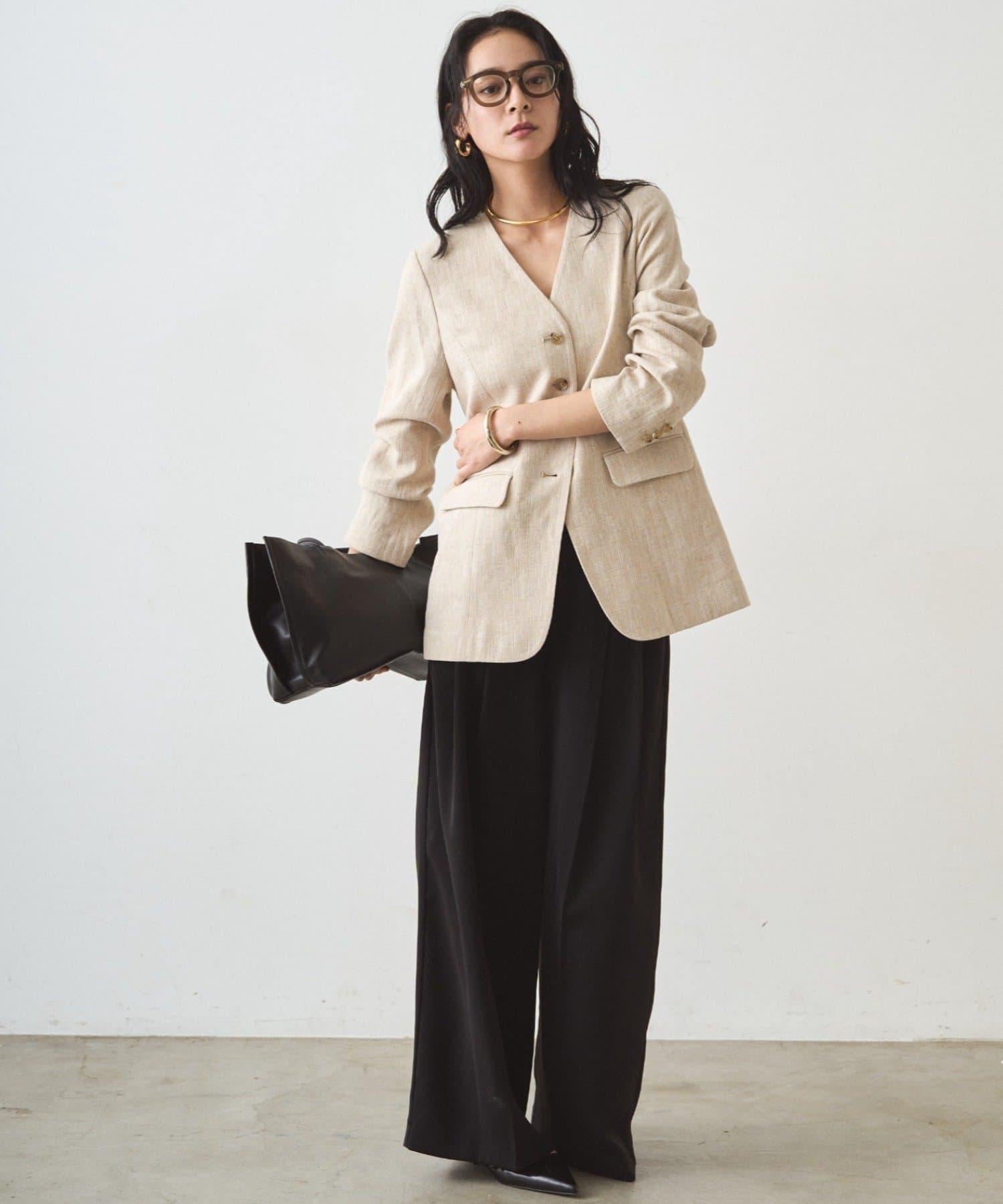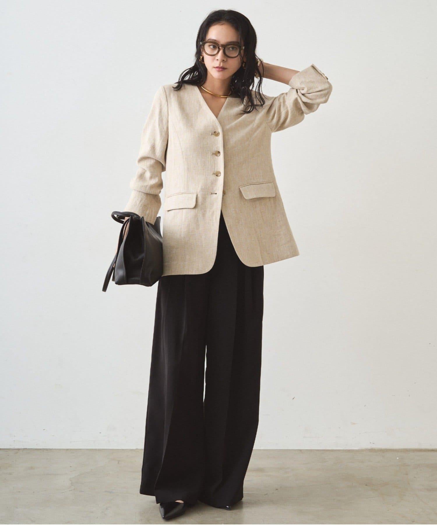 搭配無領外套,盡顯精緻休閒風格。