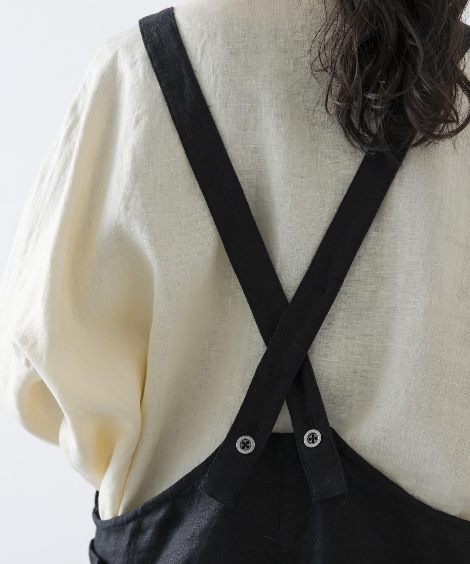 它能輕鬆為您的服裝增添強大的氣場。採用略厚的亞麻布製成,具有迷人的皺褶外觀。背後的交叉繩可以防止從肩上脫落,背後的設計也很美觀。這款單品簡潔大方,適合隨身穿著。只需搭配剪裁簡潔的針織衫或襯衫,就能營造出輕鬆愜意的氛圍。可搭配針織衫和開衫,造型選擇多樣。長度可通過帶調節器和紐扣的肩帶進行調節,腰部的寬度可通過兩側的紐扣進行調節。另有棉質款式可供選擇。