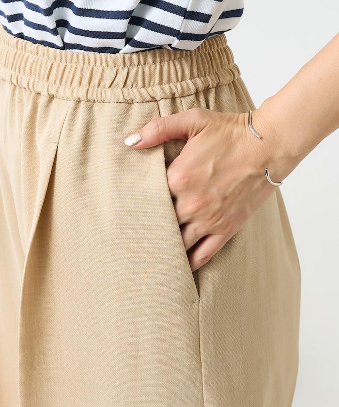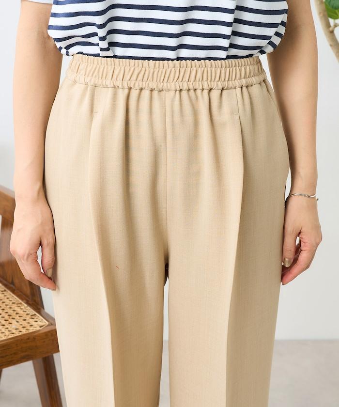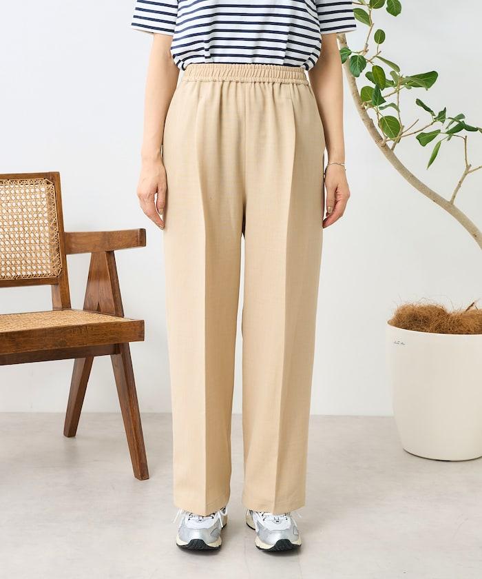 這款簡便長褲具有亞麻的質感,但由聚酯纖維製成,抗皺性強,易於居家打理。
