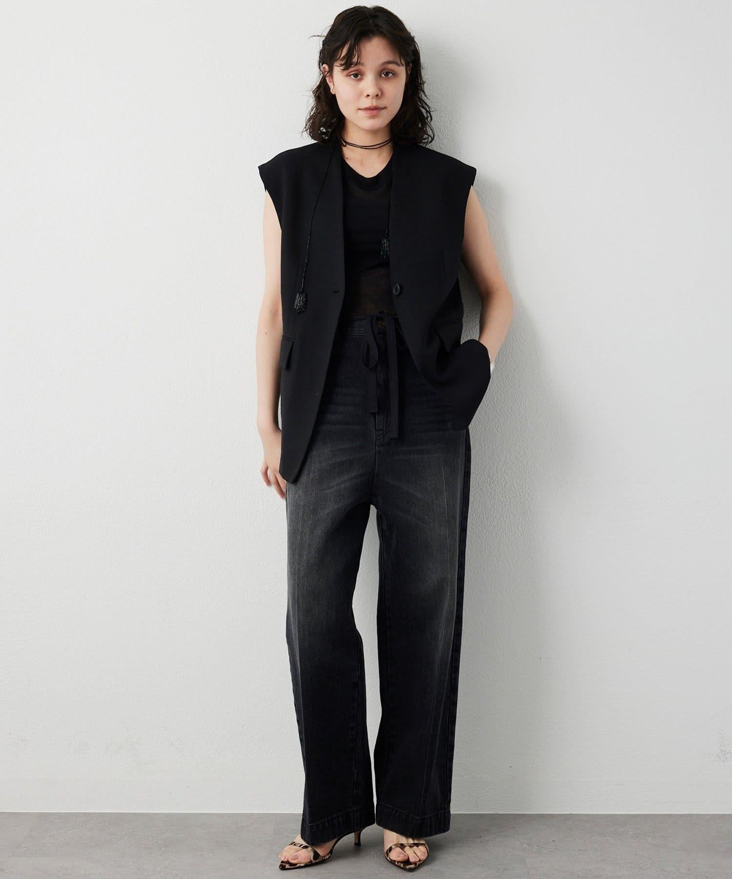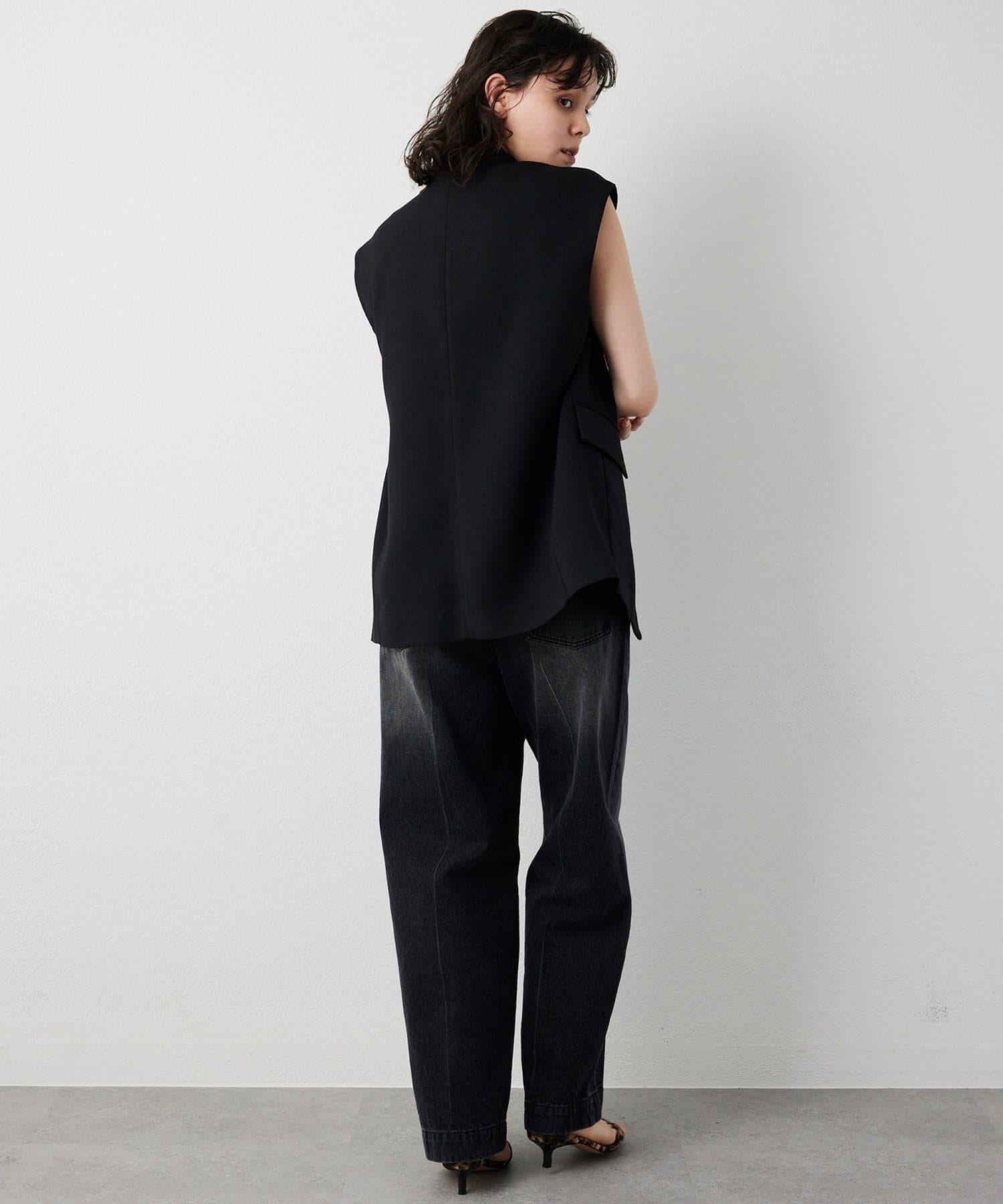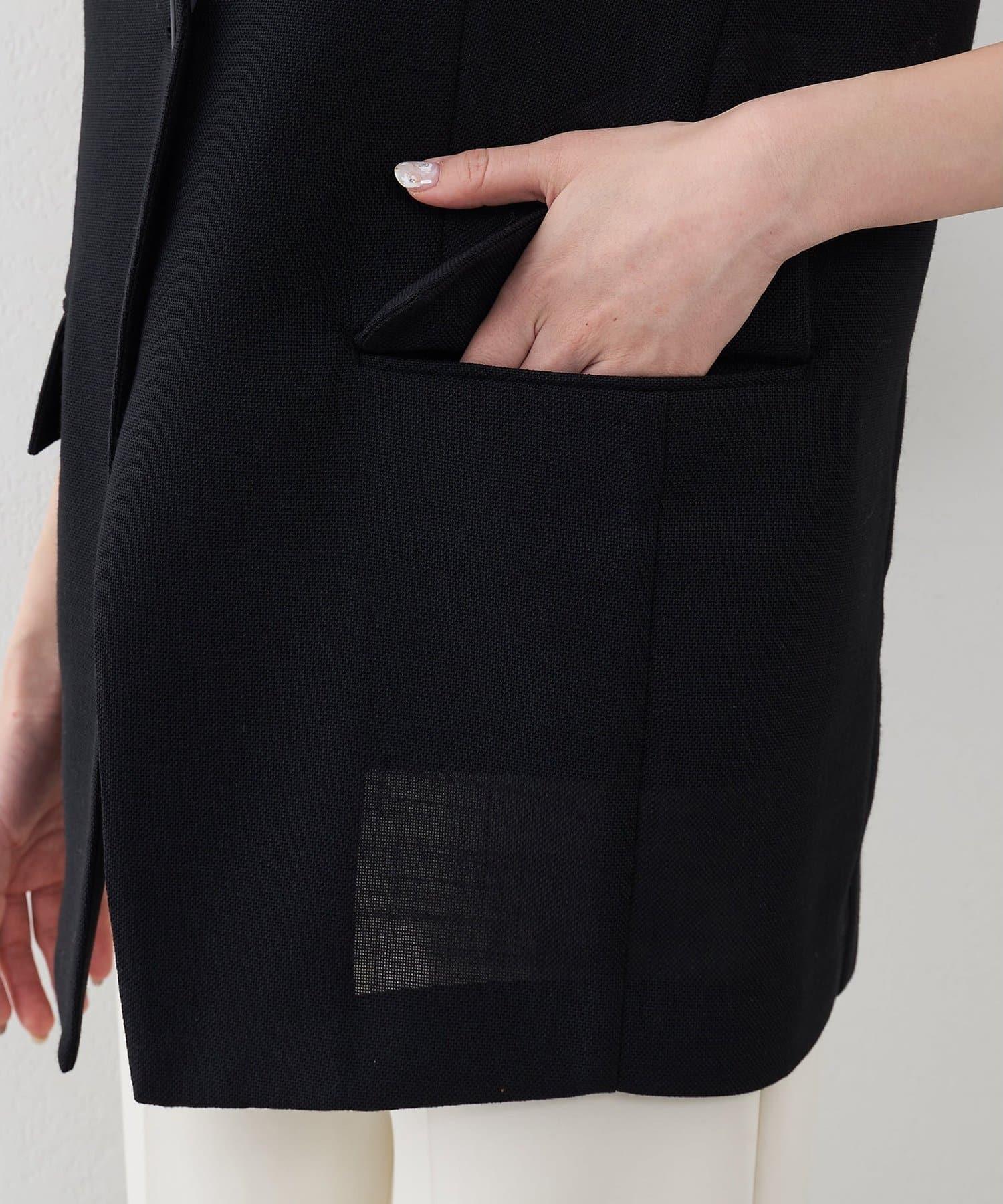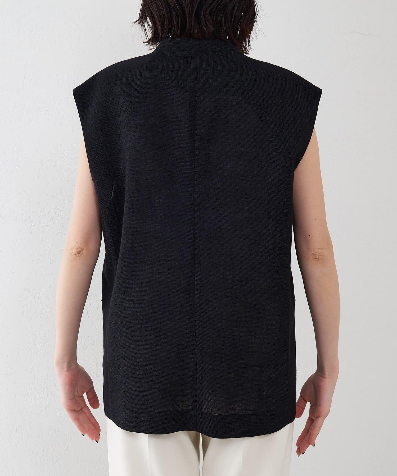 深色仿亞麻面料馬甲。