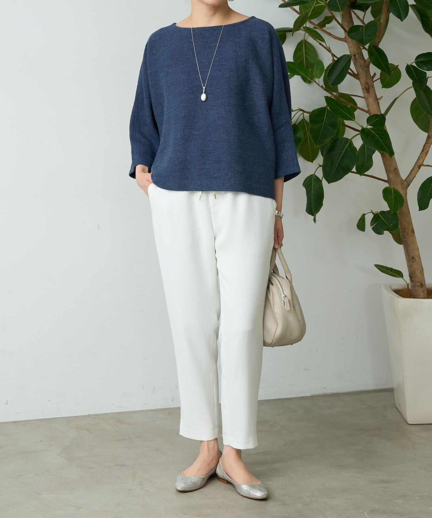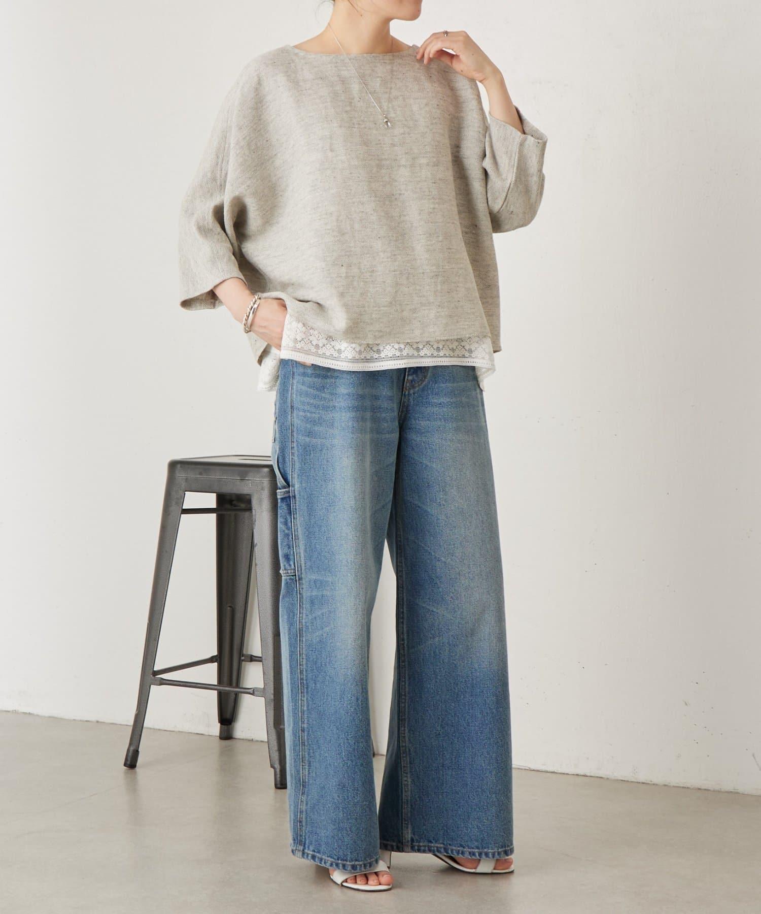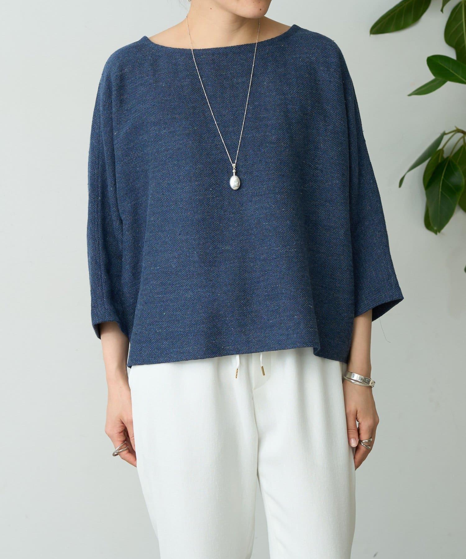 亞麻Inlay針織套頭上衣