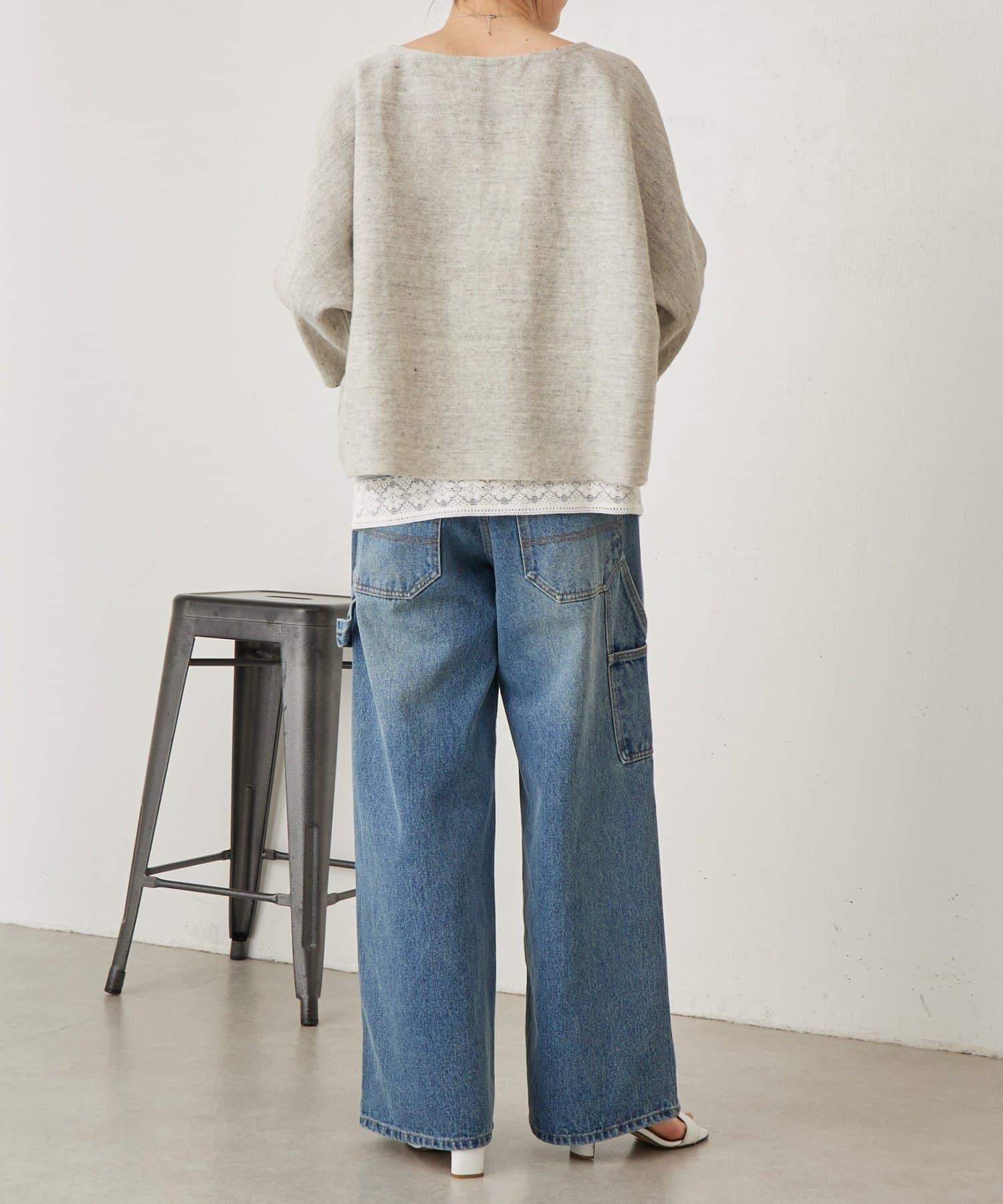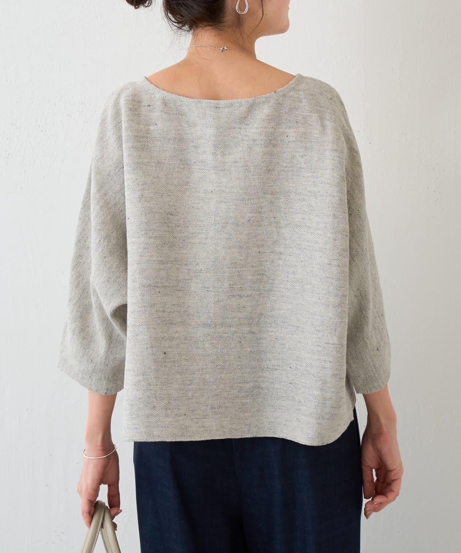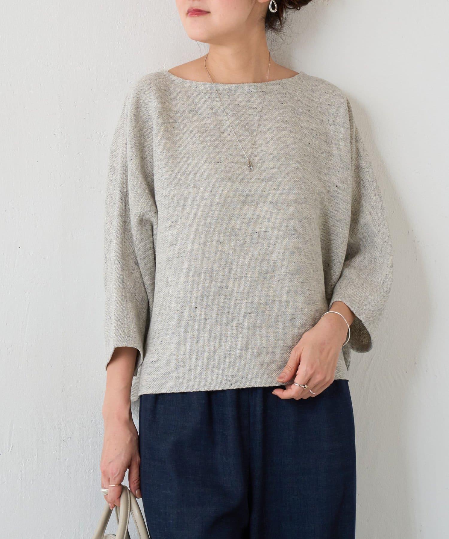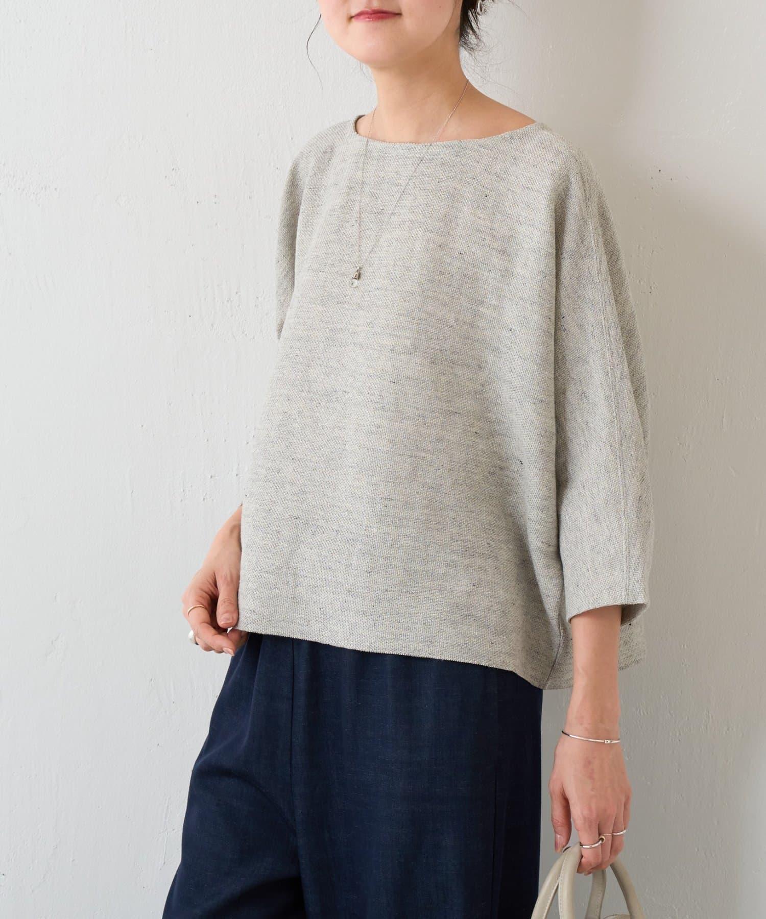 亞麻Inlay針織套頭上衣
