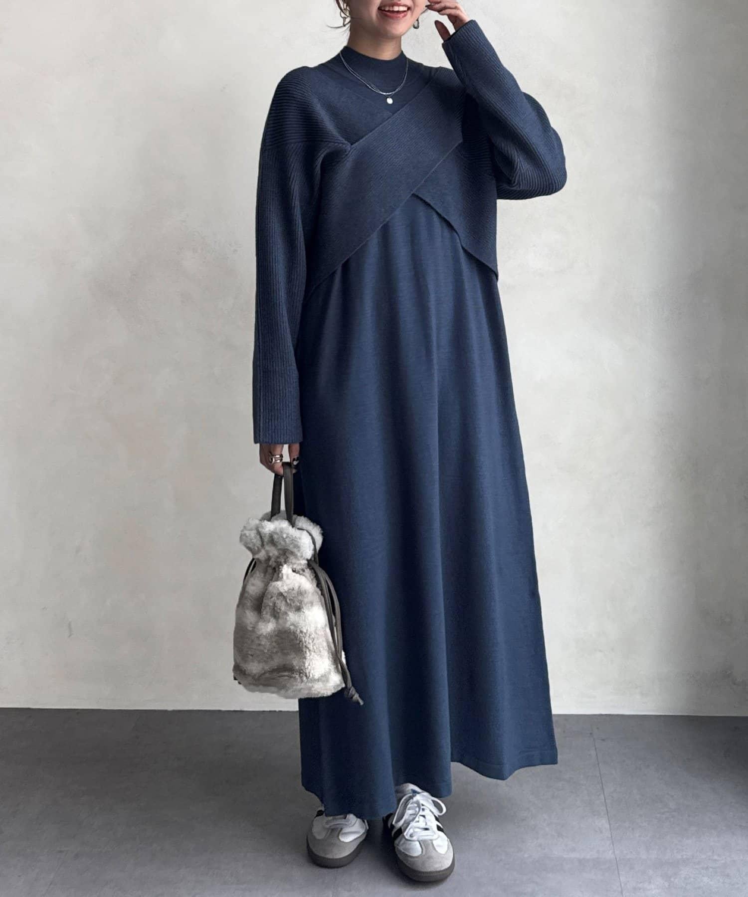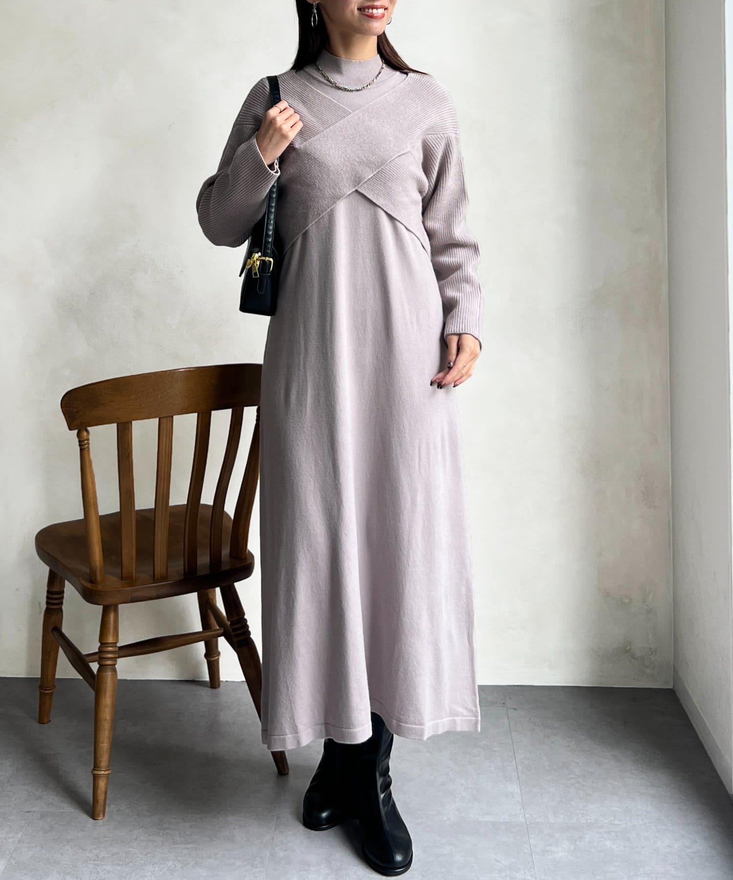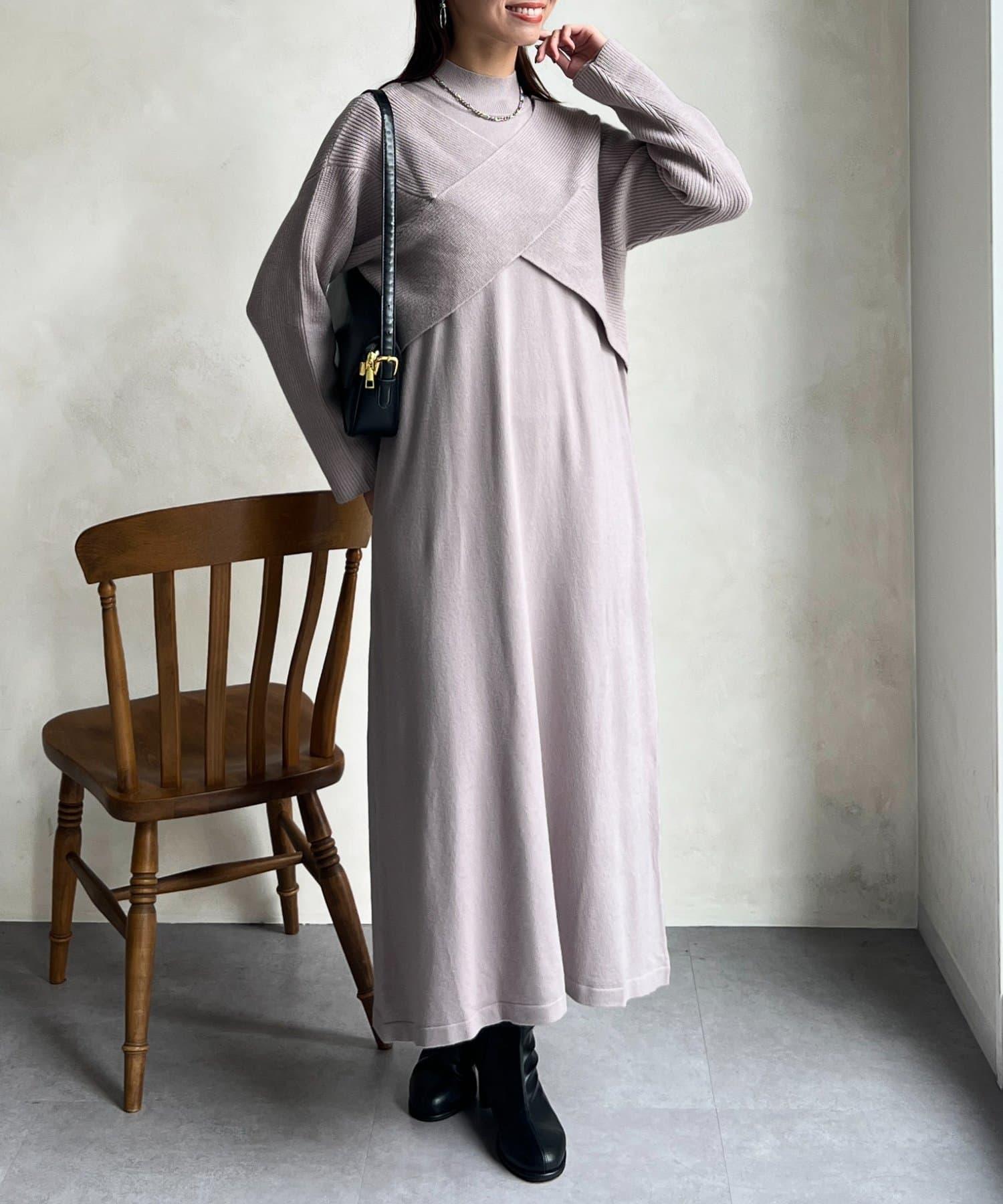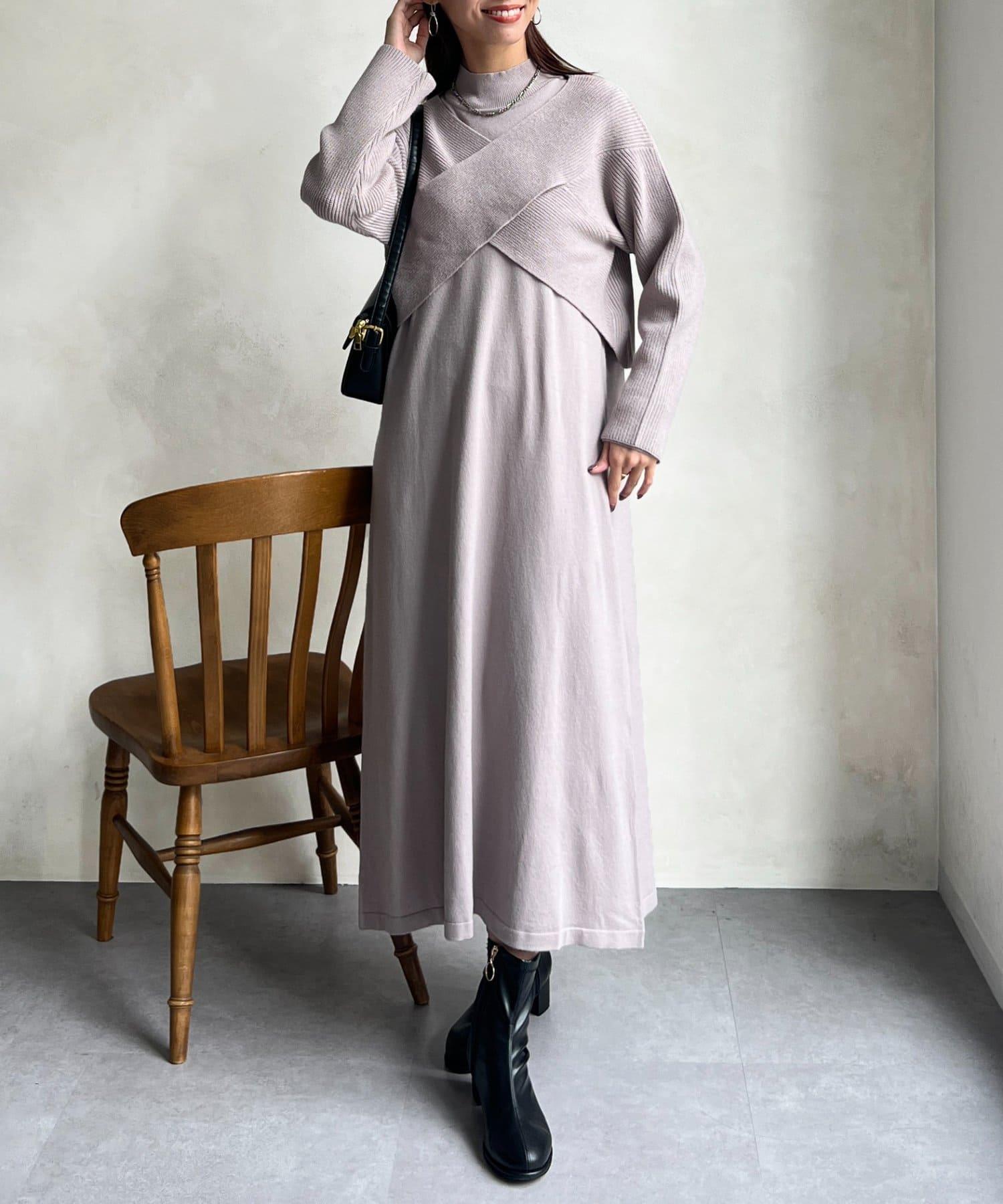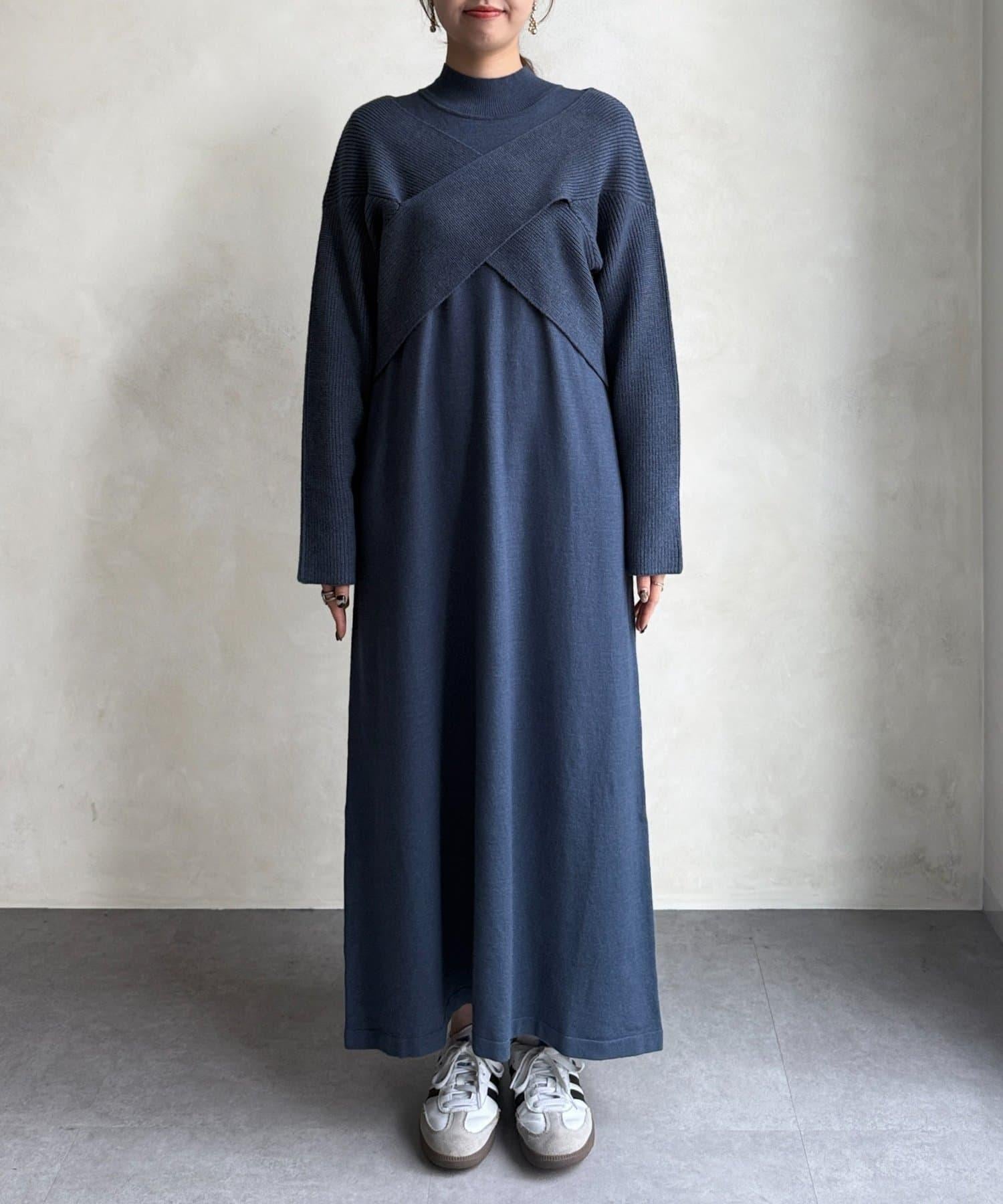 交叉套頭針織連衣裙