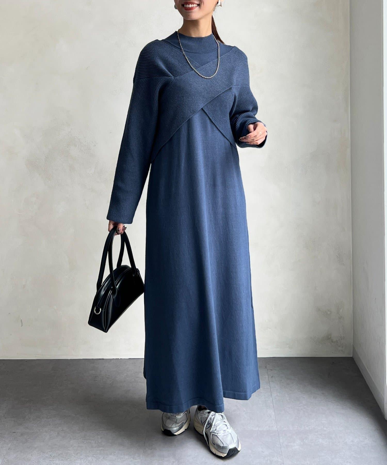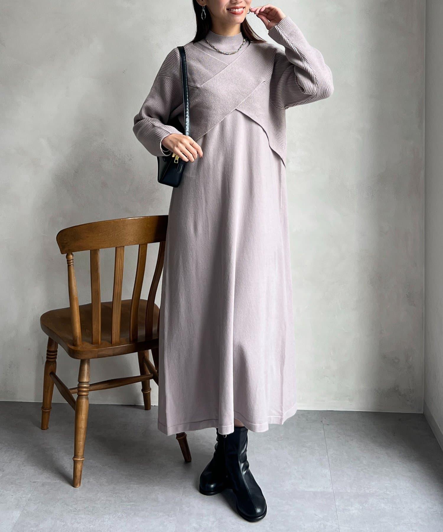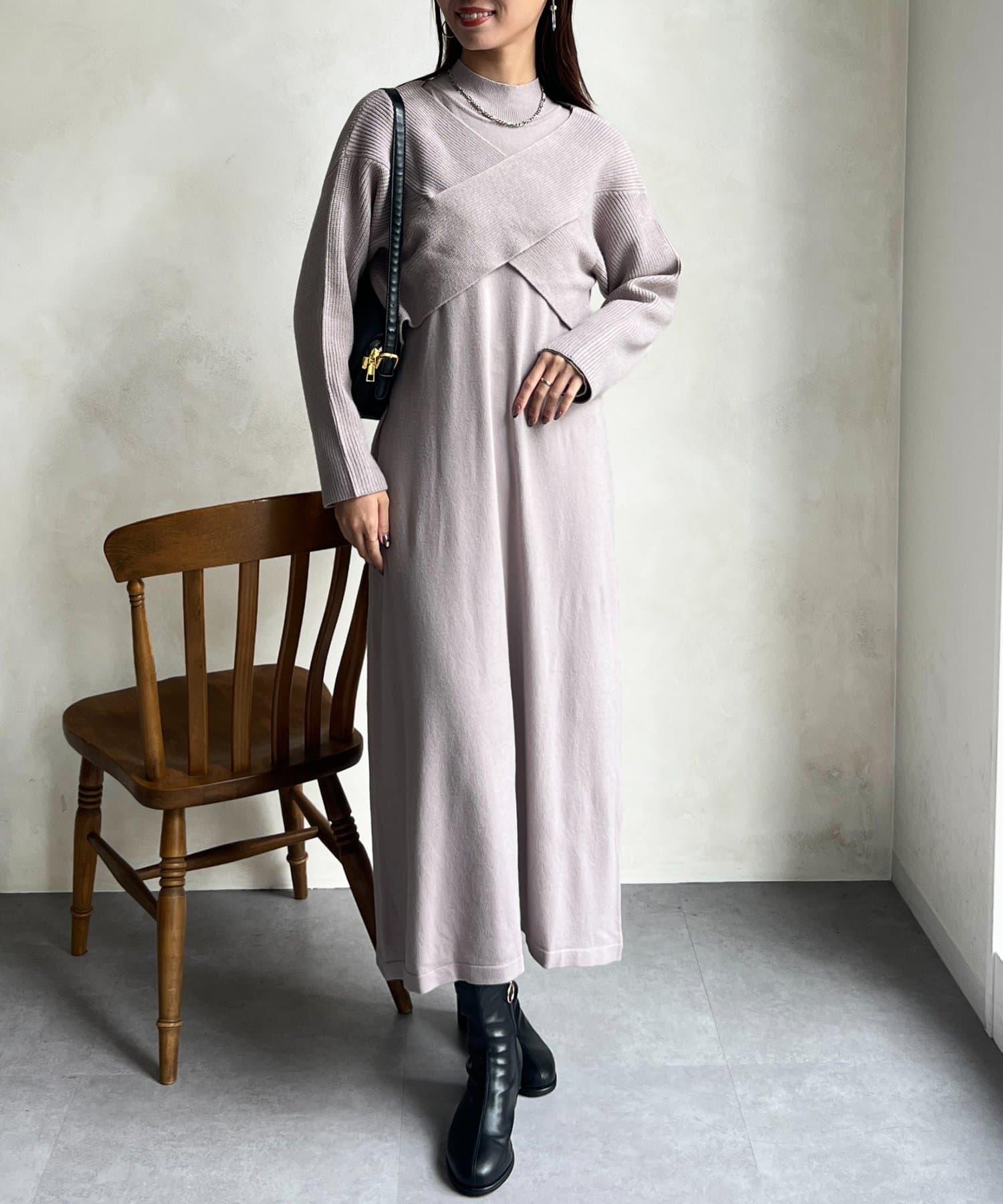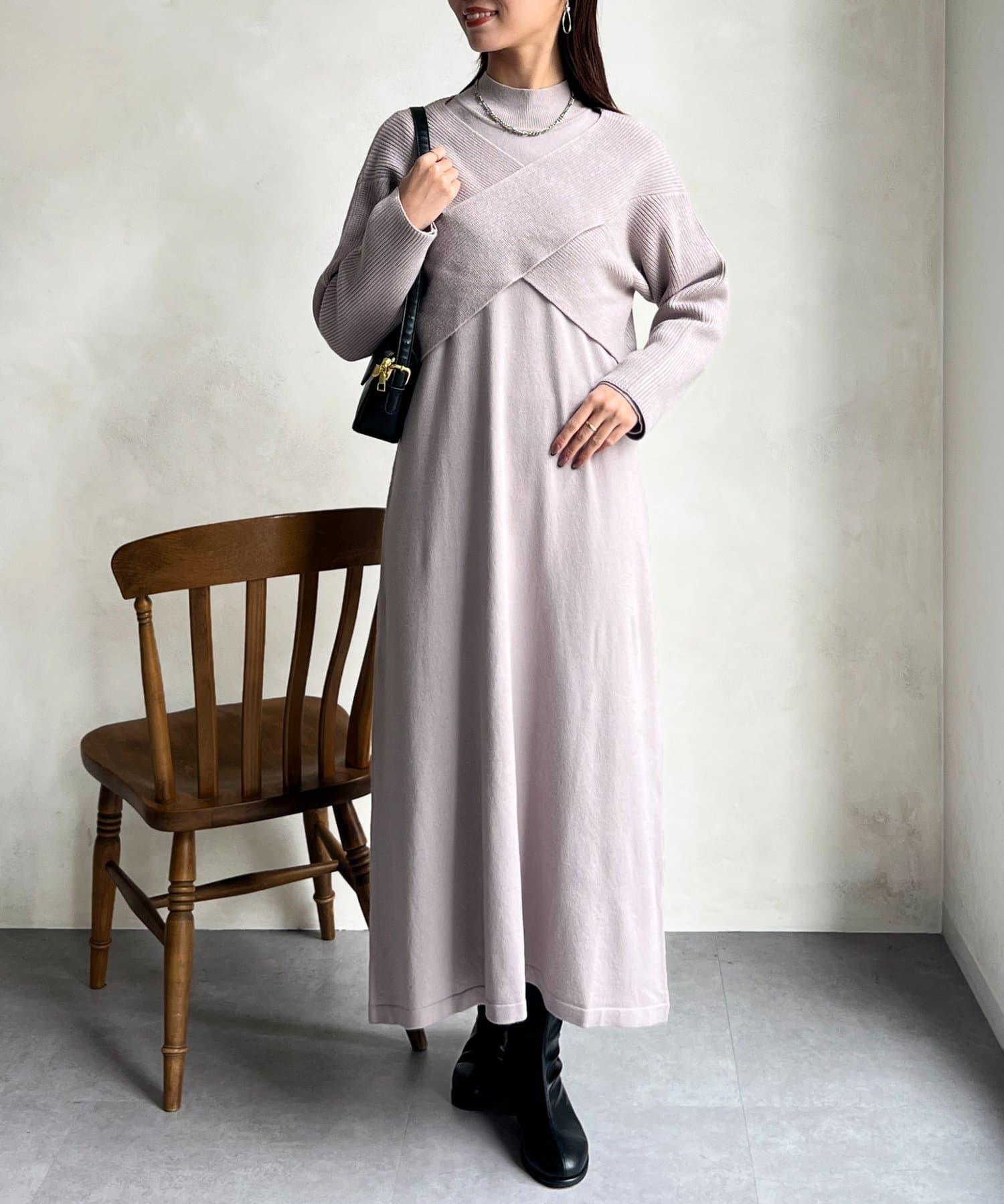 交叉套頭針織連衣裙