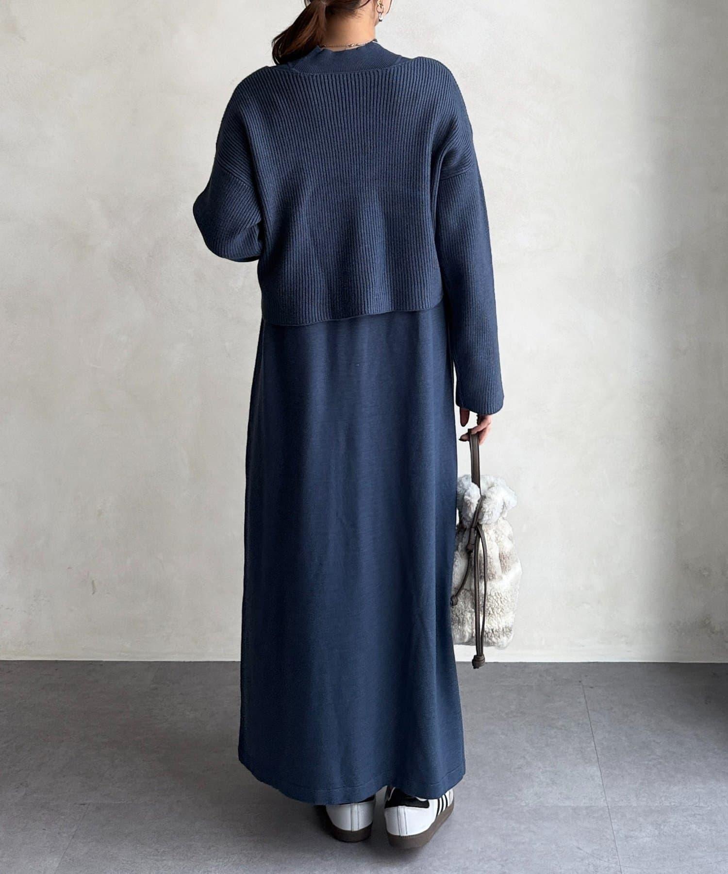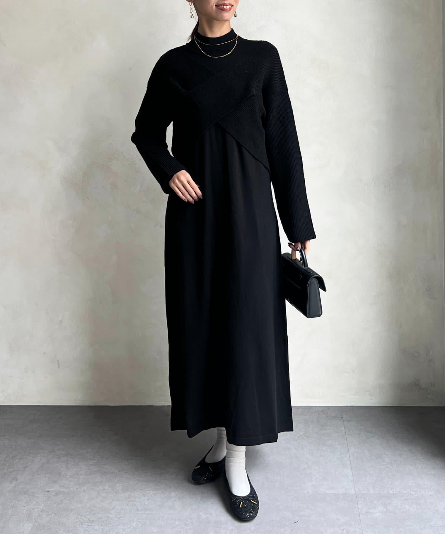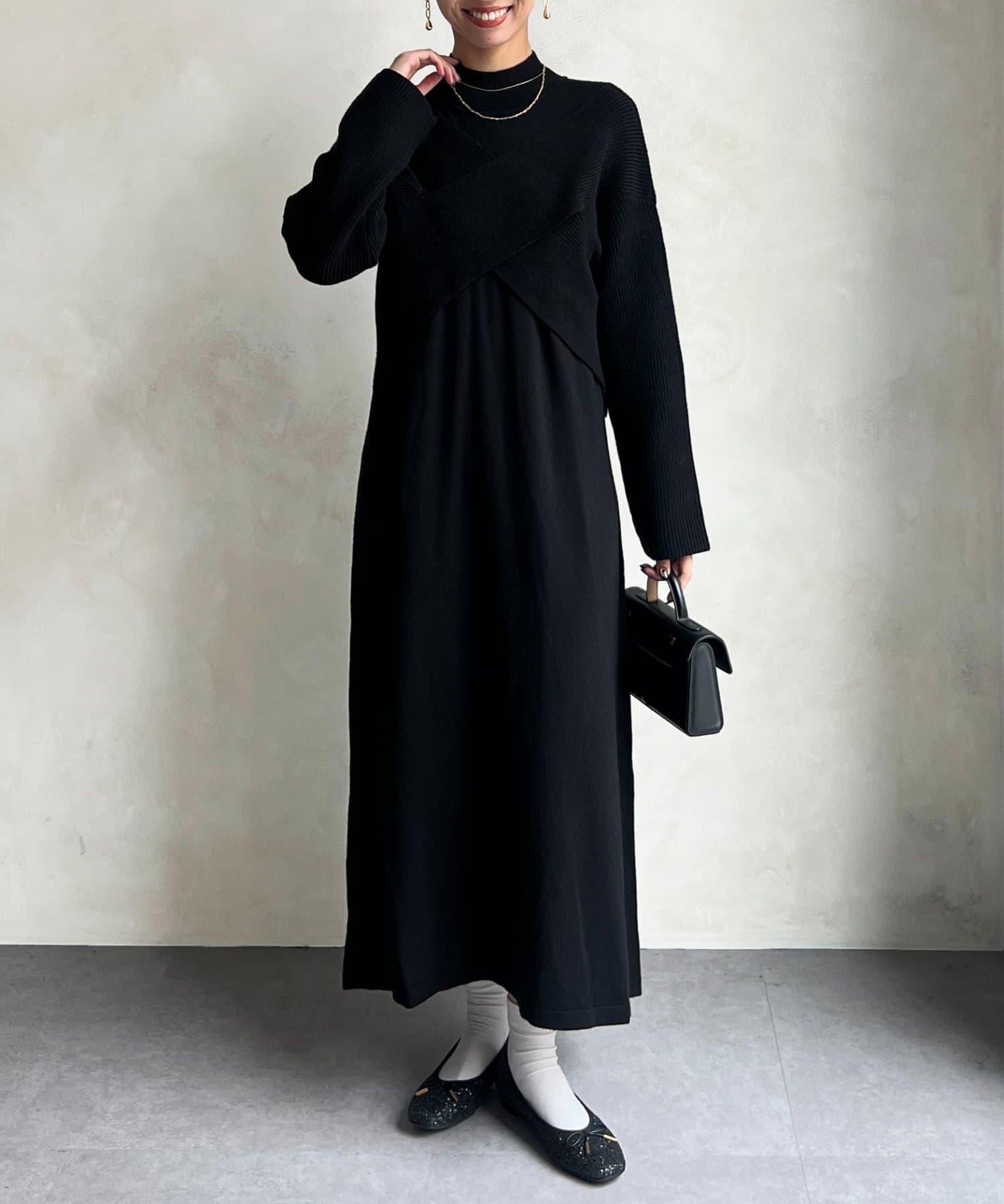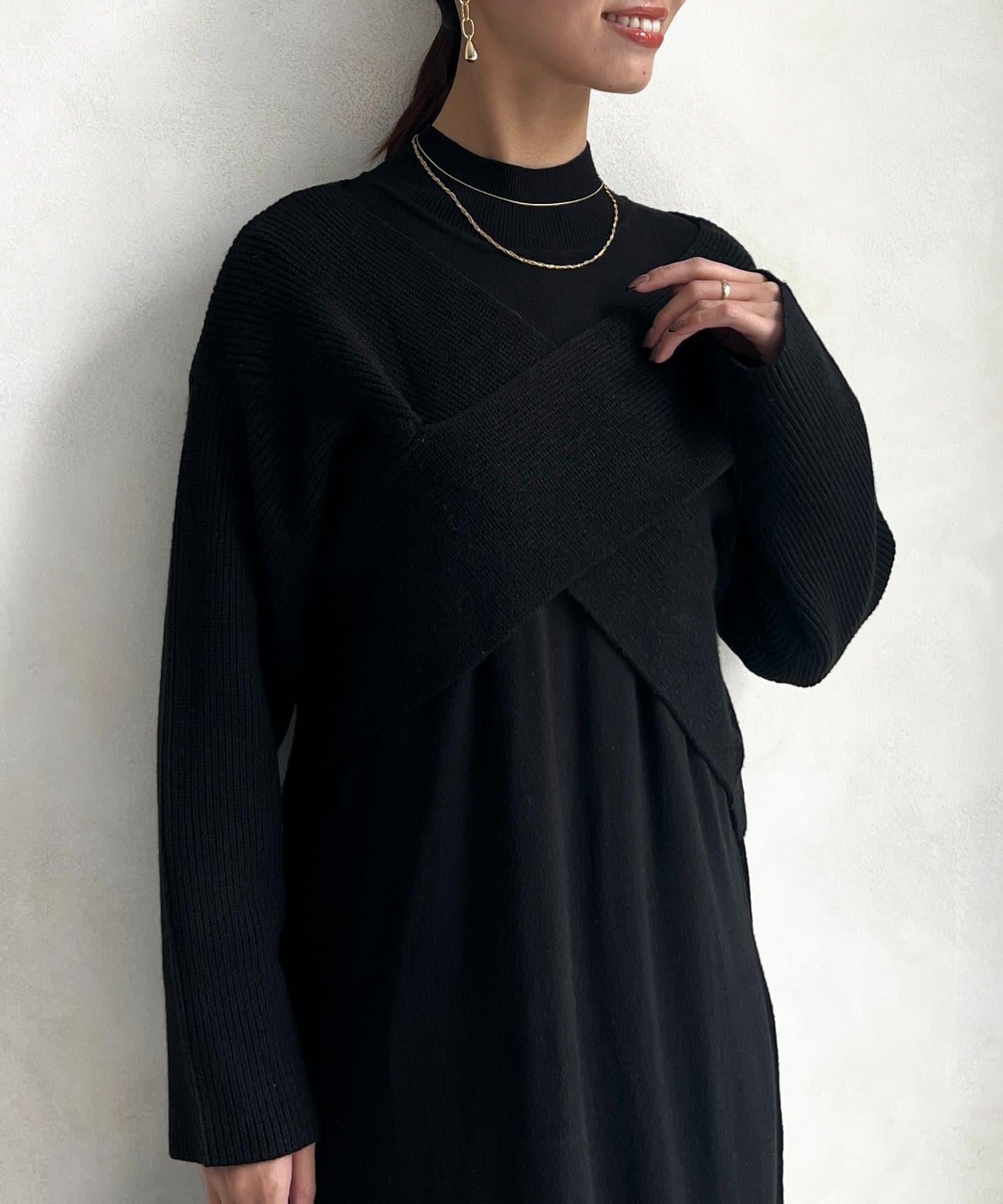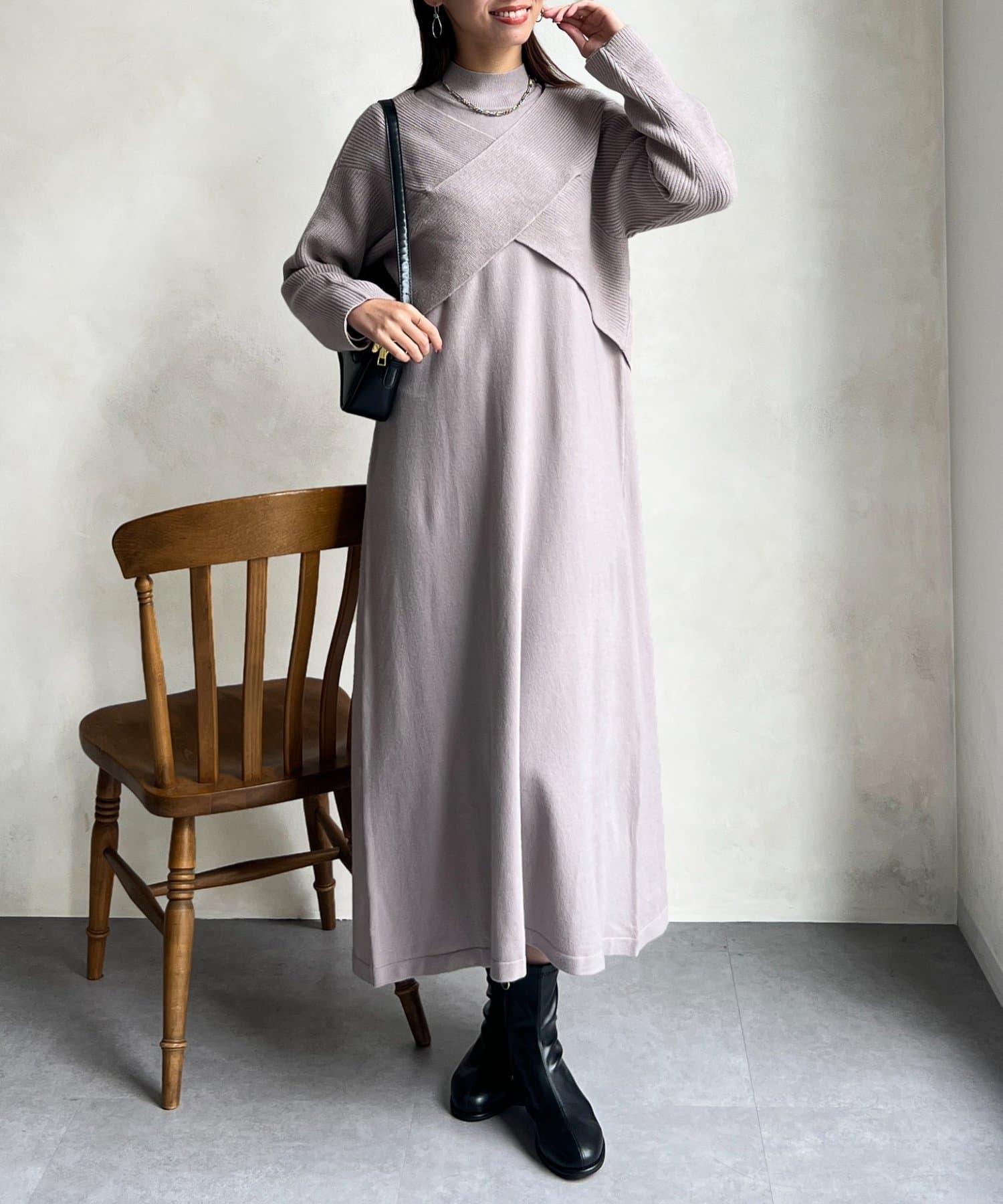 交叉套頭針織連衣裙