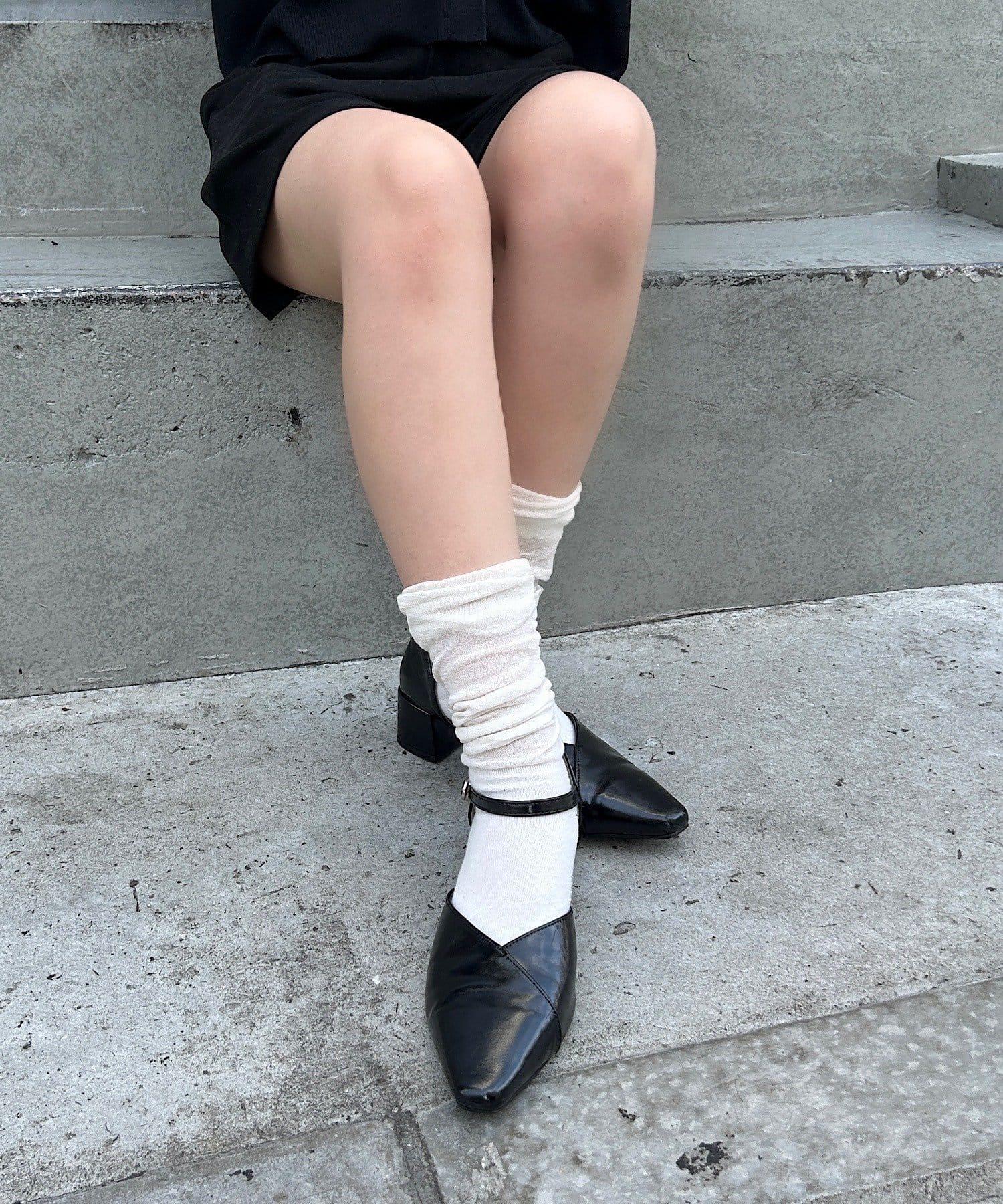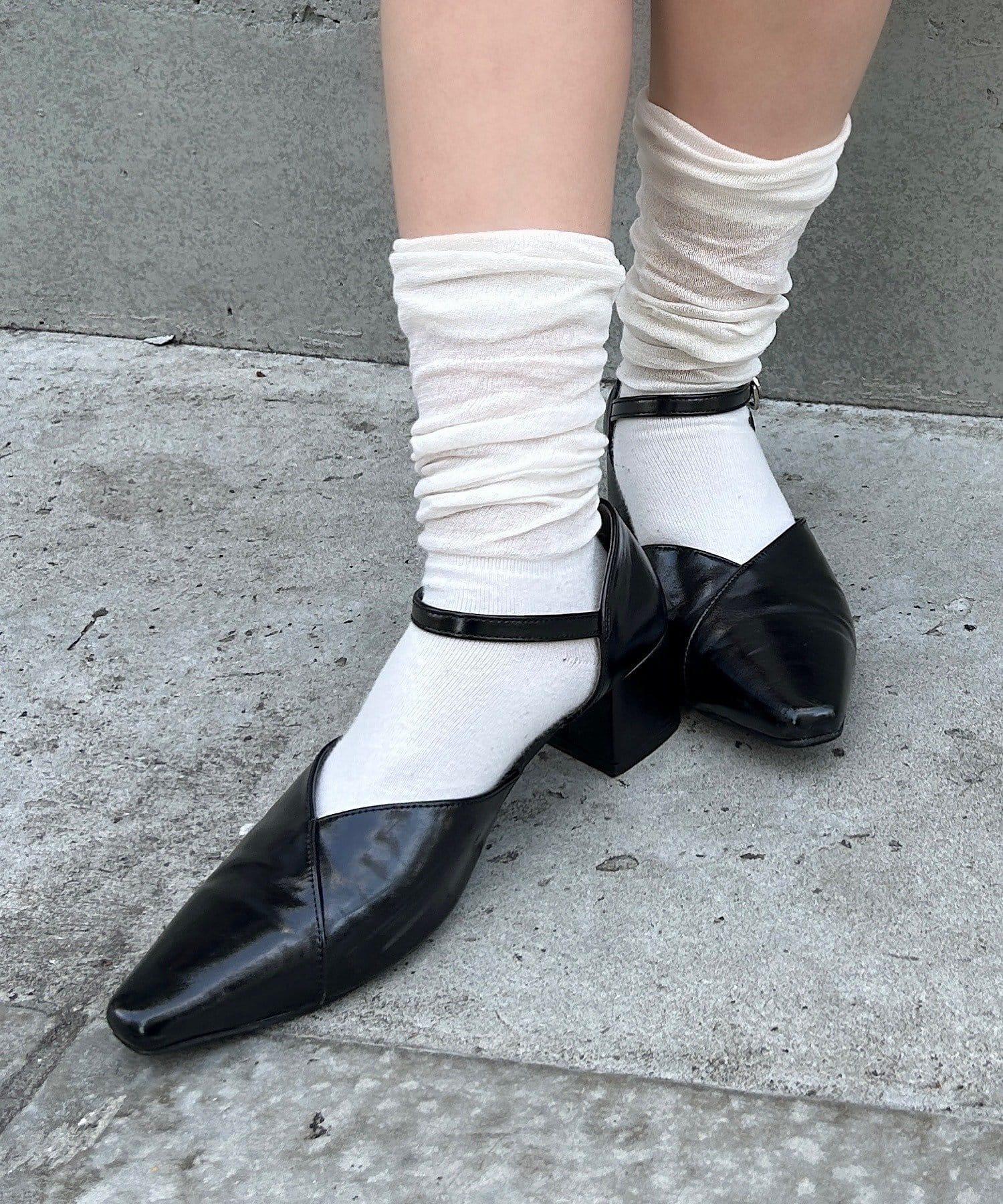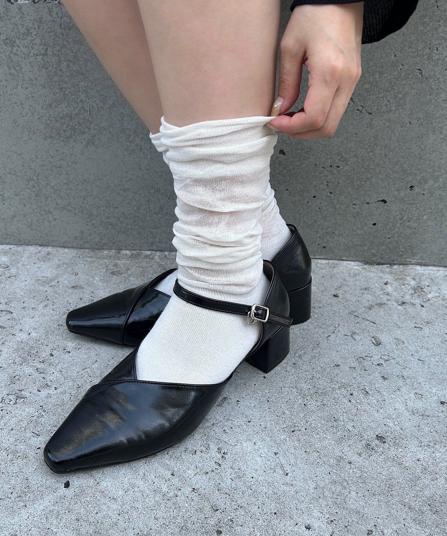 這款高跟鞋採用尖銳的方形鞋頭和交叉綁帶設計,更顯女性柔美。