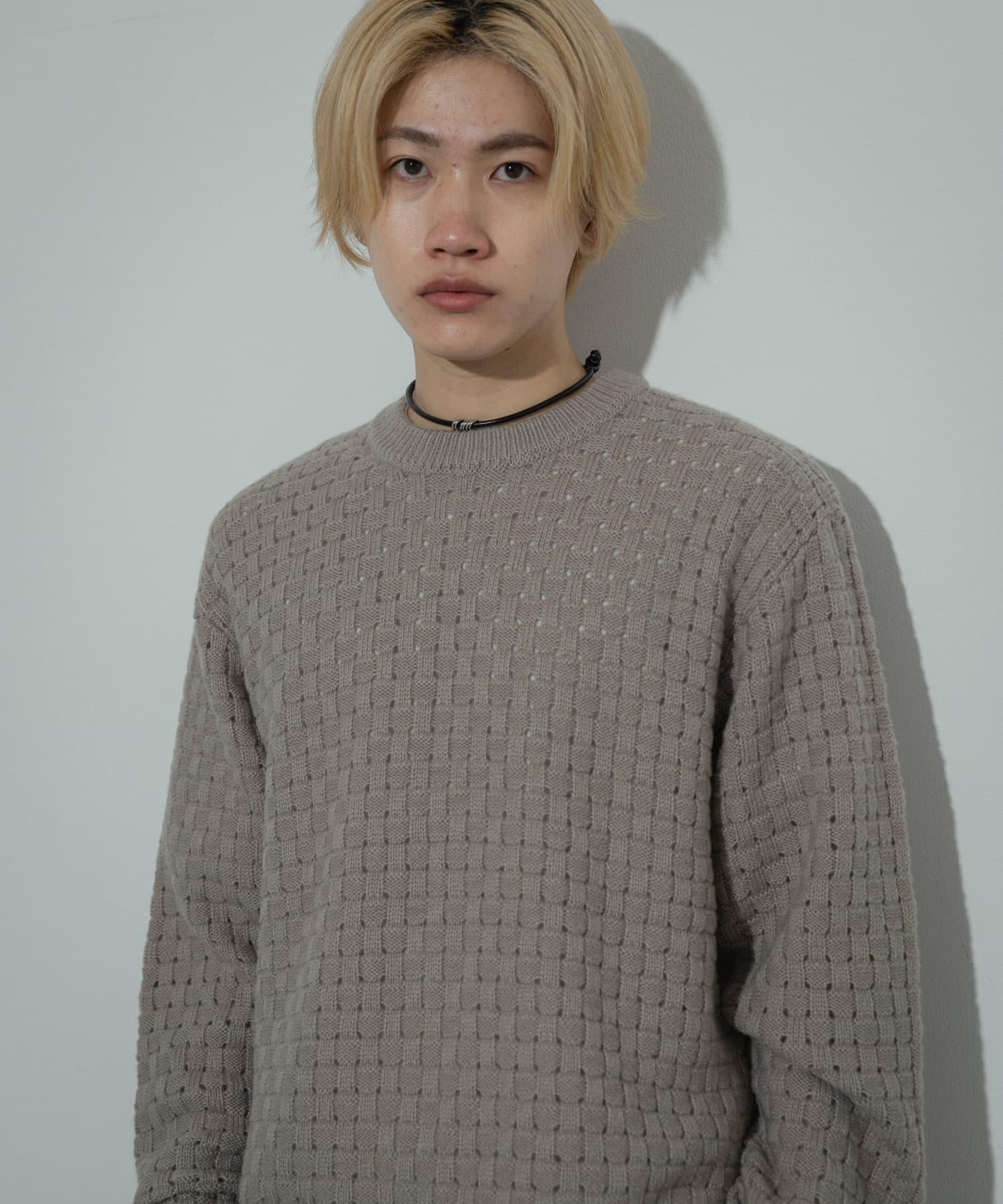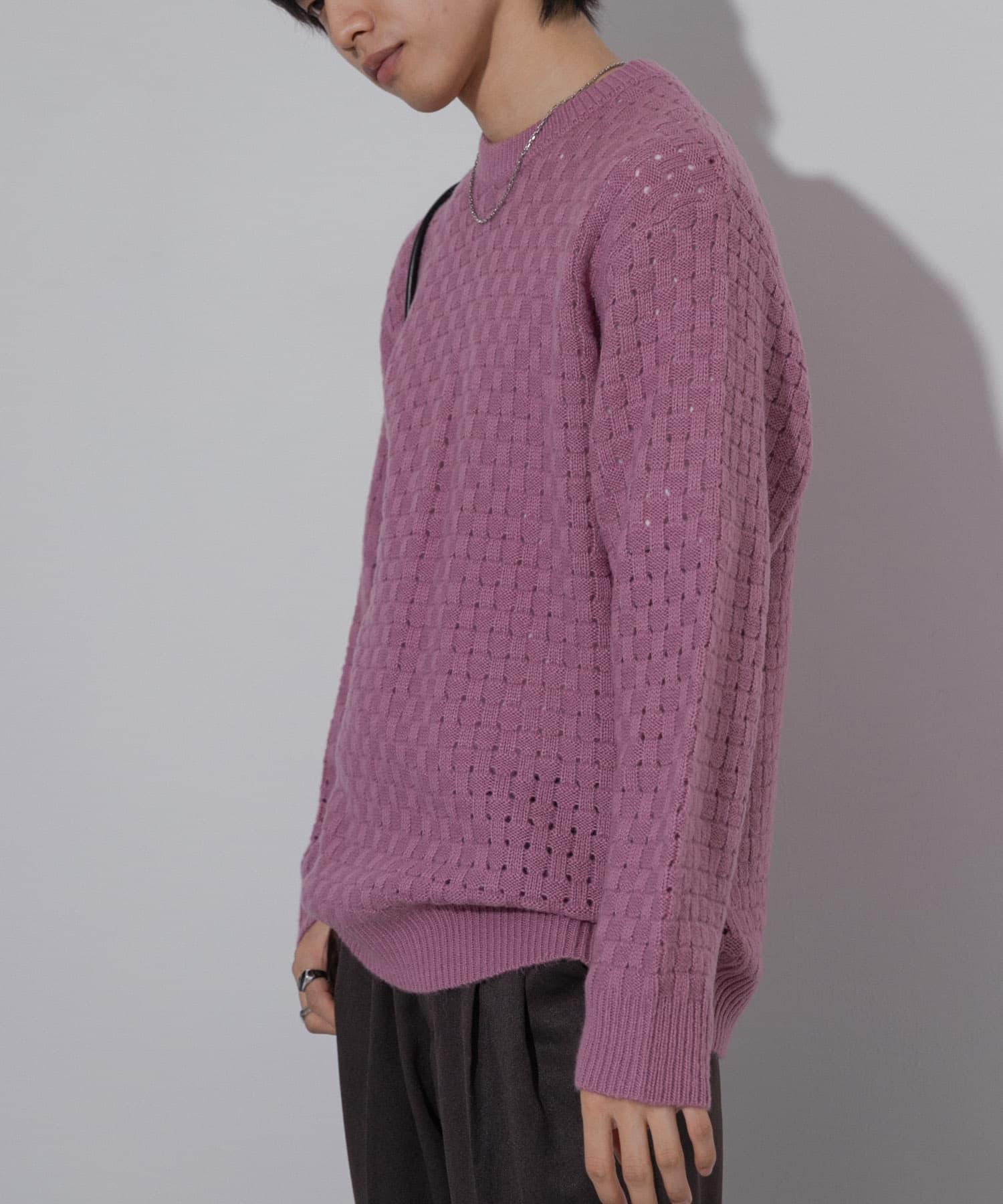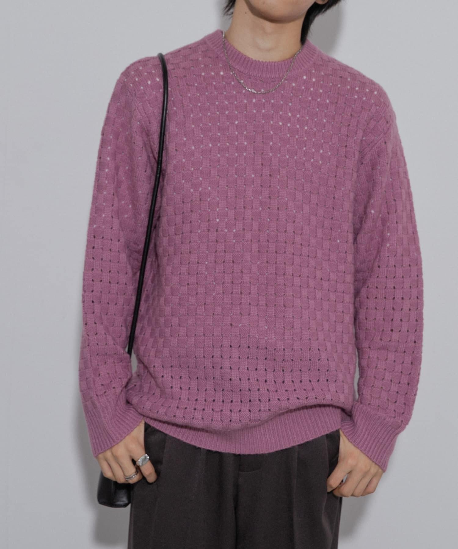 交叉編織透視圓領針織衫