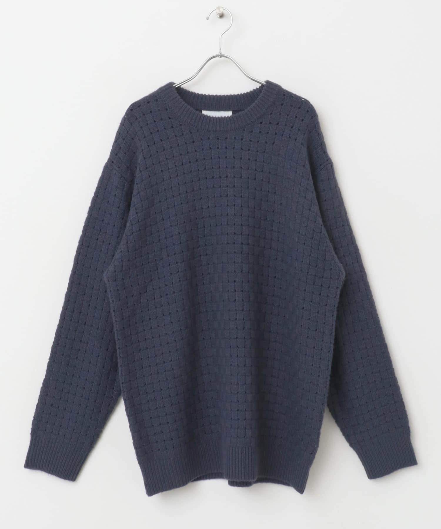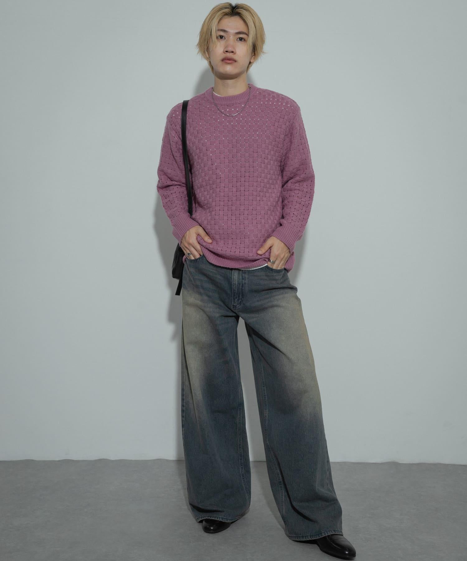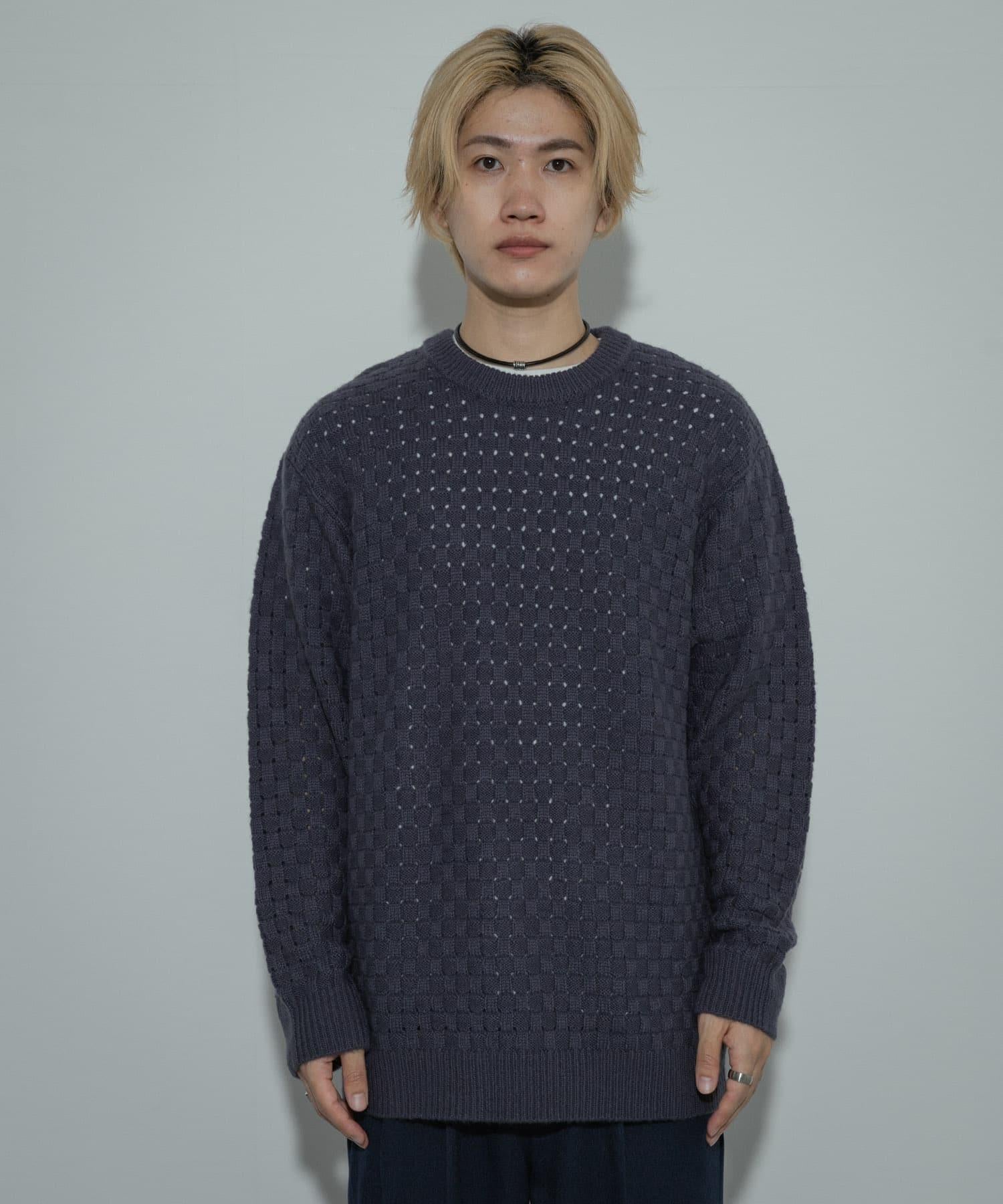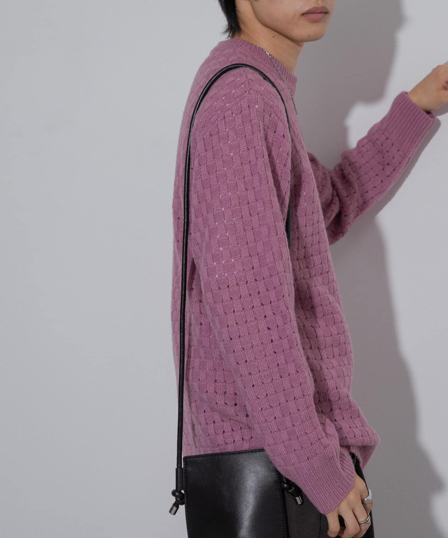 交叉編織透視圓領針織衫