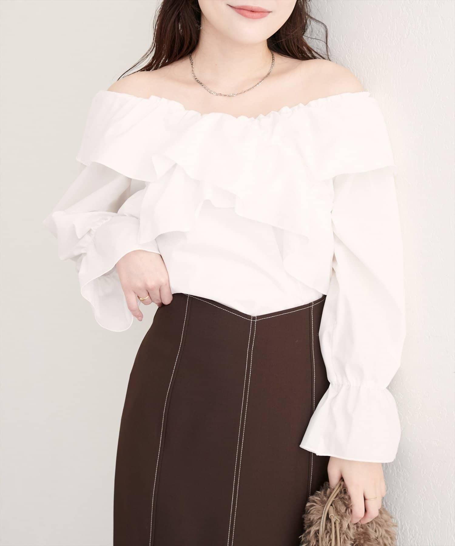 肩部看起來乾淨漂亮,營造出寬鬆、成熟、可愛的氛圍。