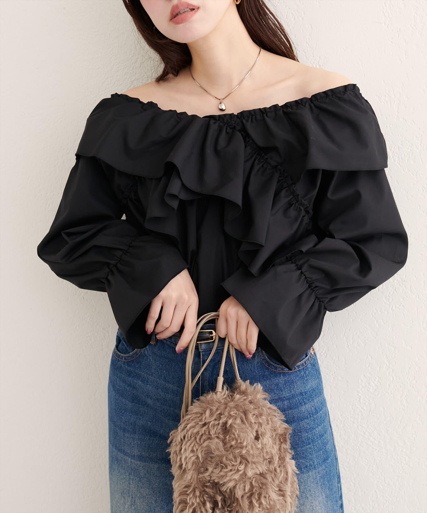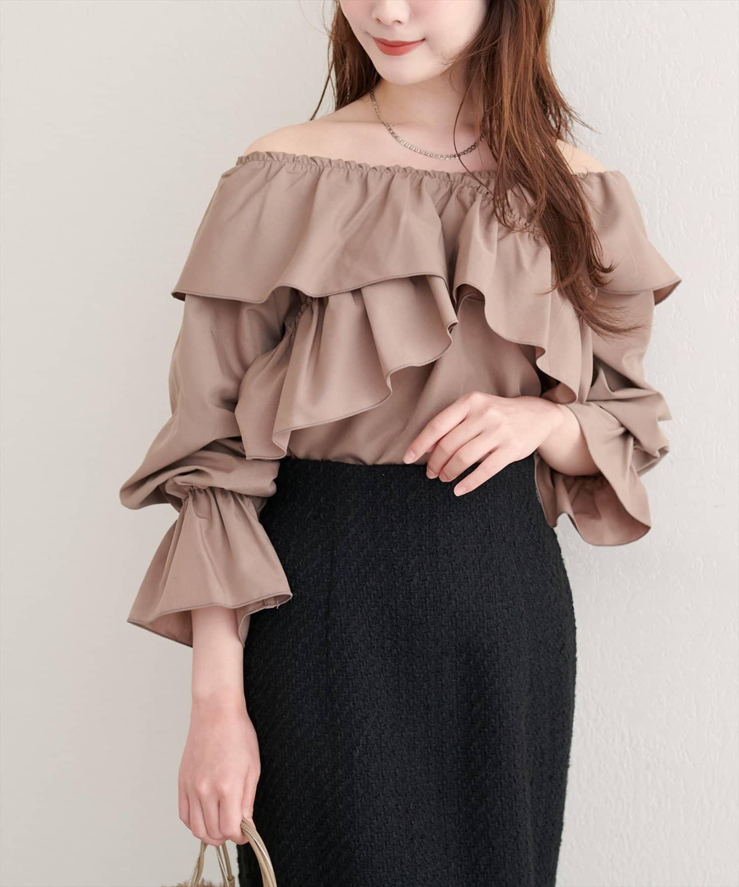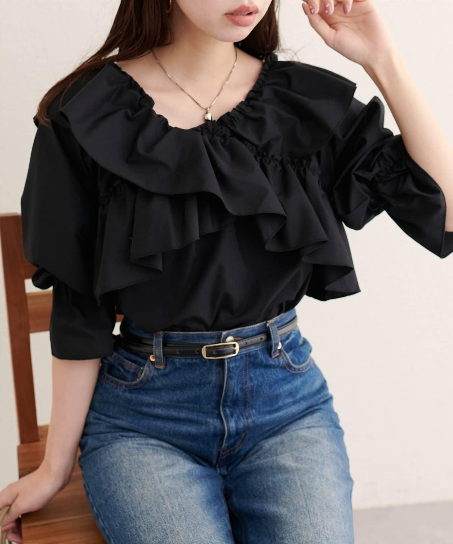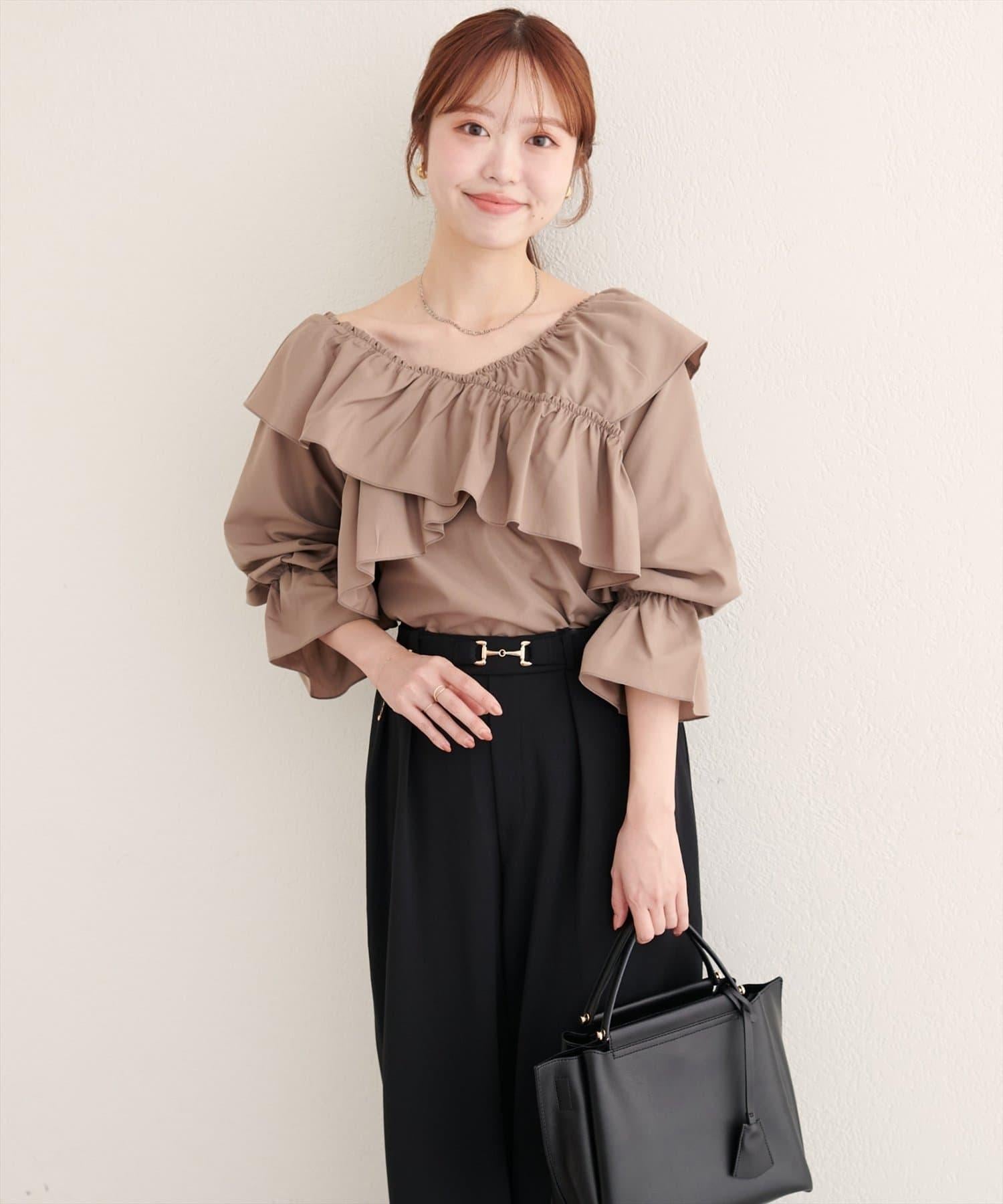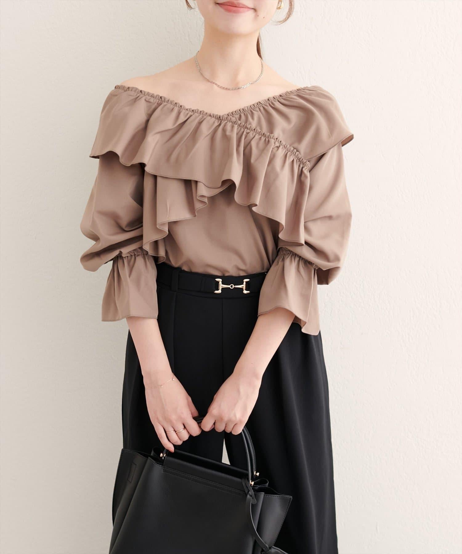 寬大的荷葉邊和糖果袖增加了亮點,因此只需搭配簡單的下裝,就能打造出協調的造型。