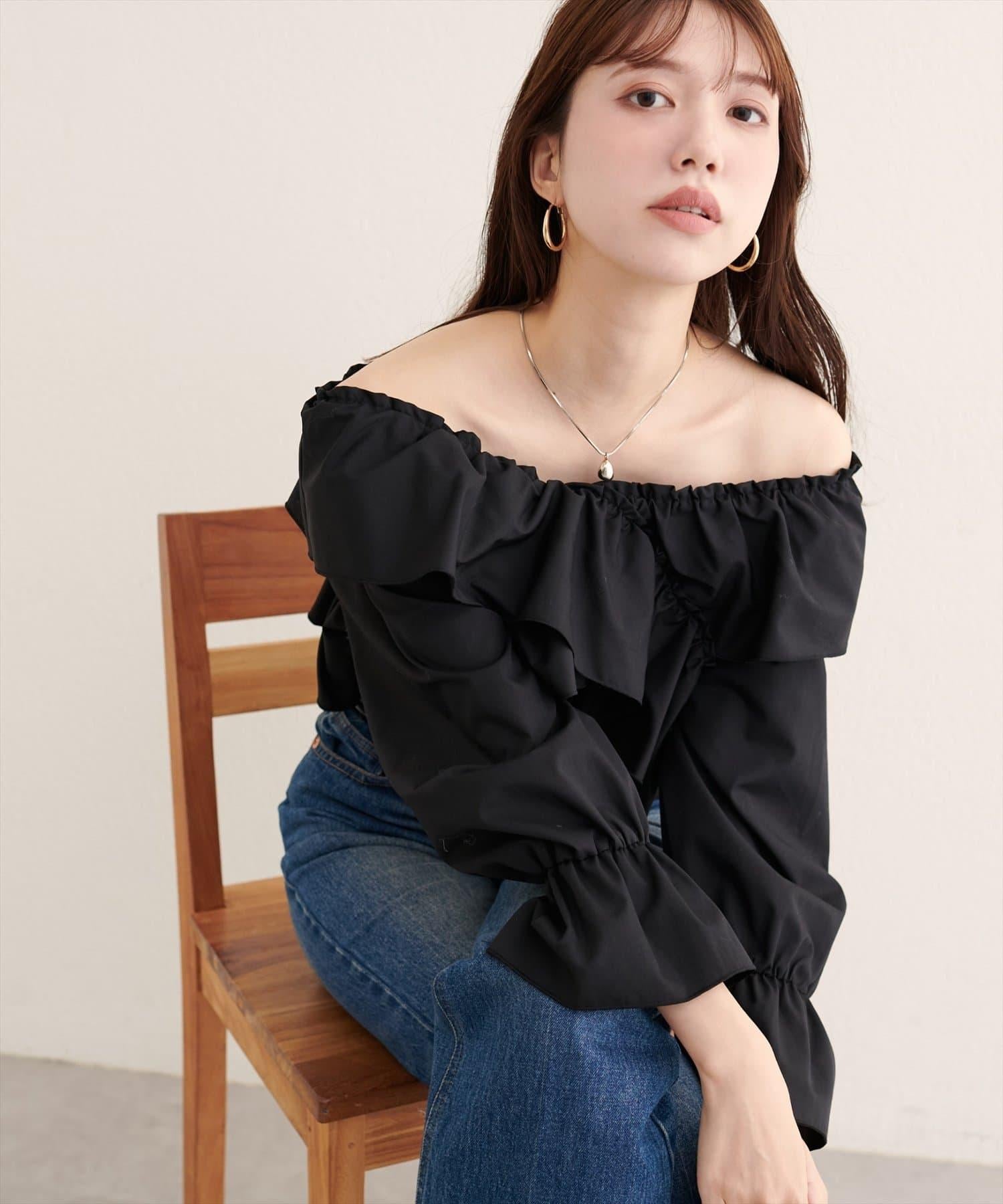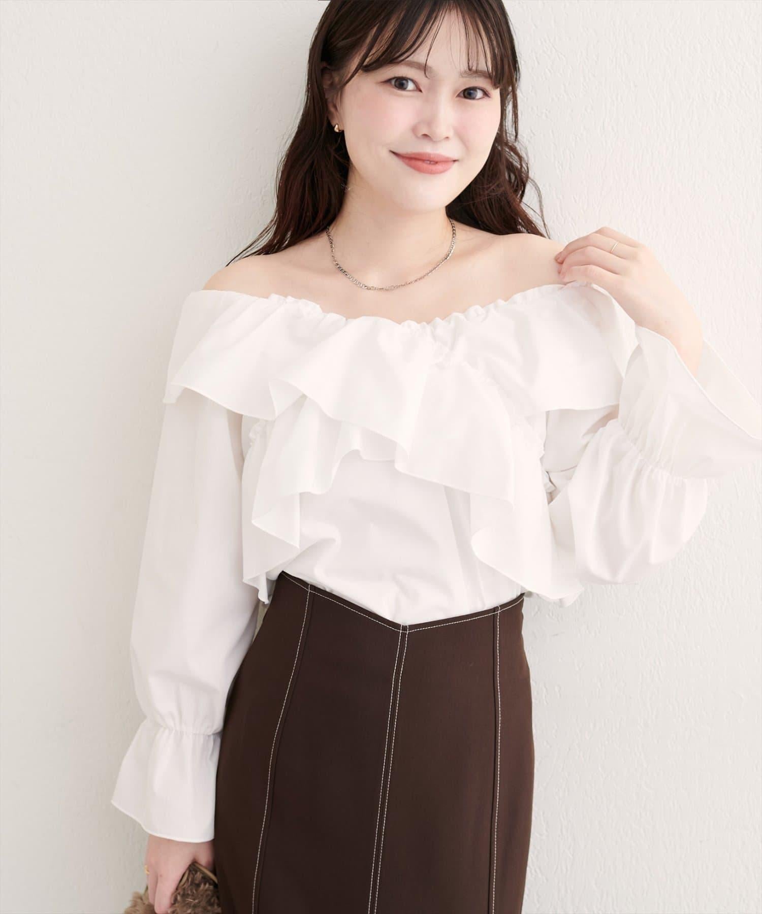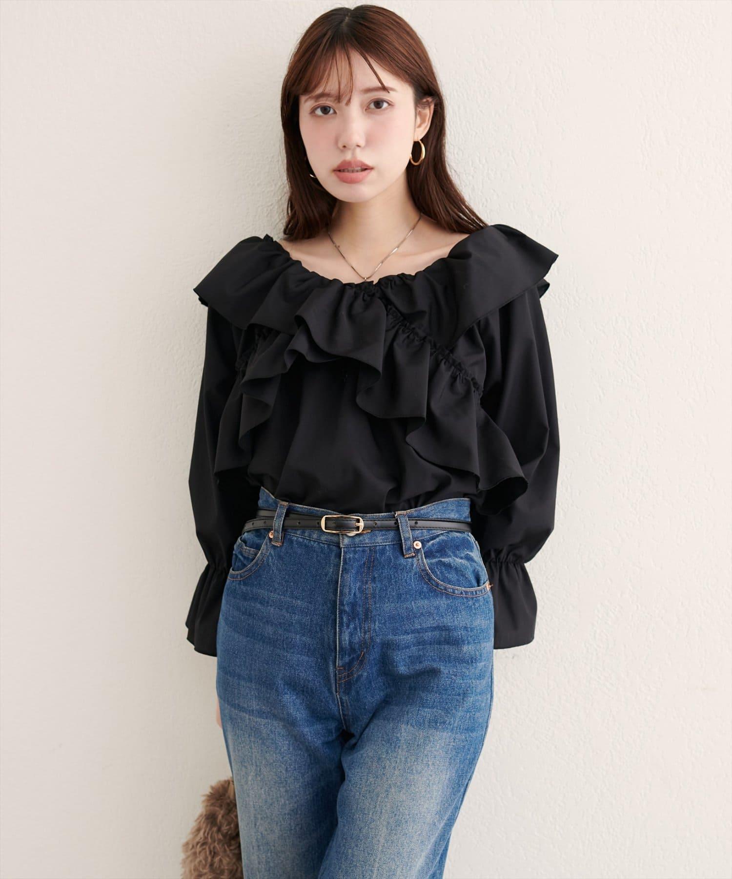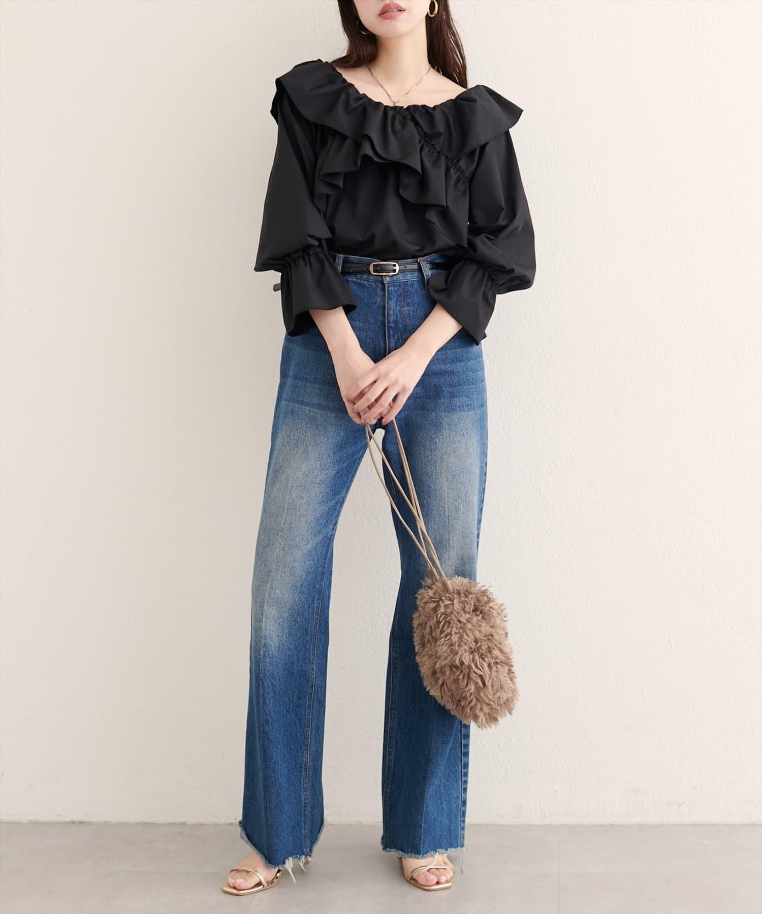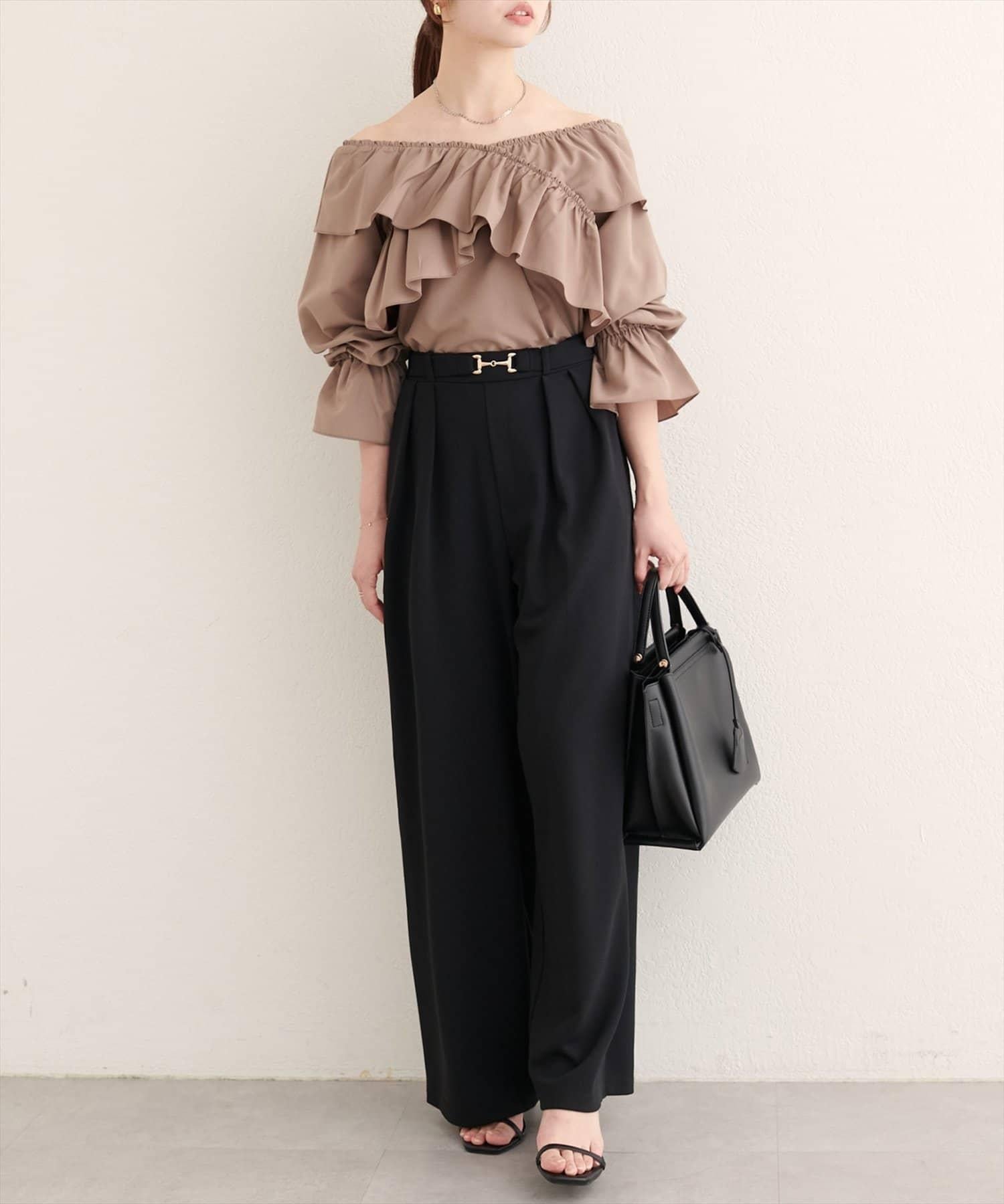 寬大的荷葉邊和糖果袖增加了亮點,因此只需搭配簡單的下裝,就能打造出協調的造型。