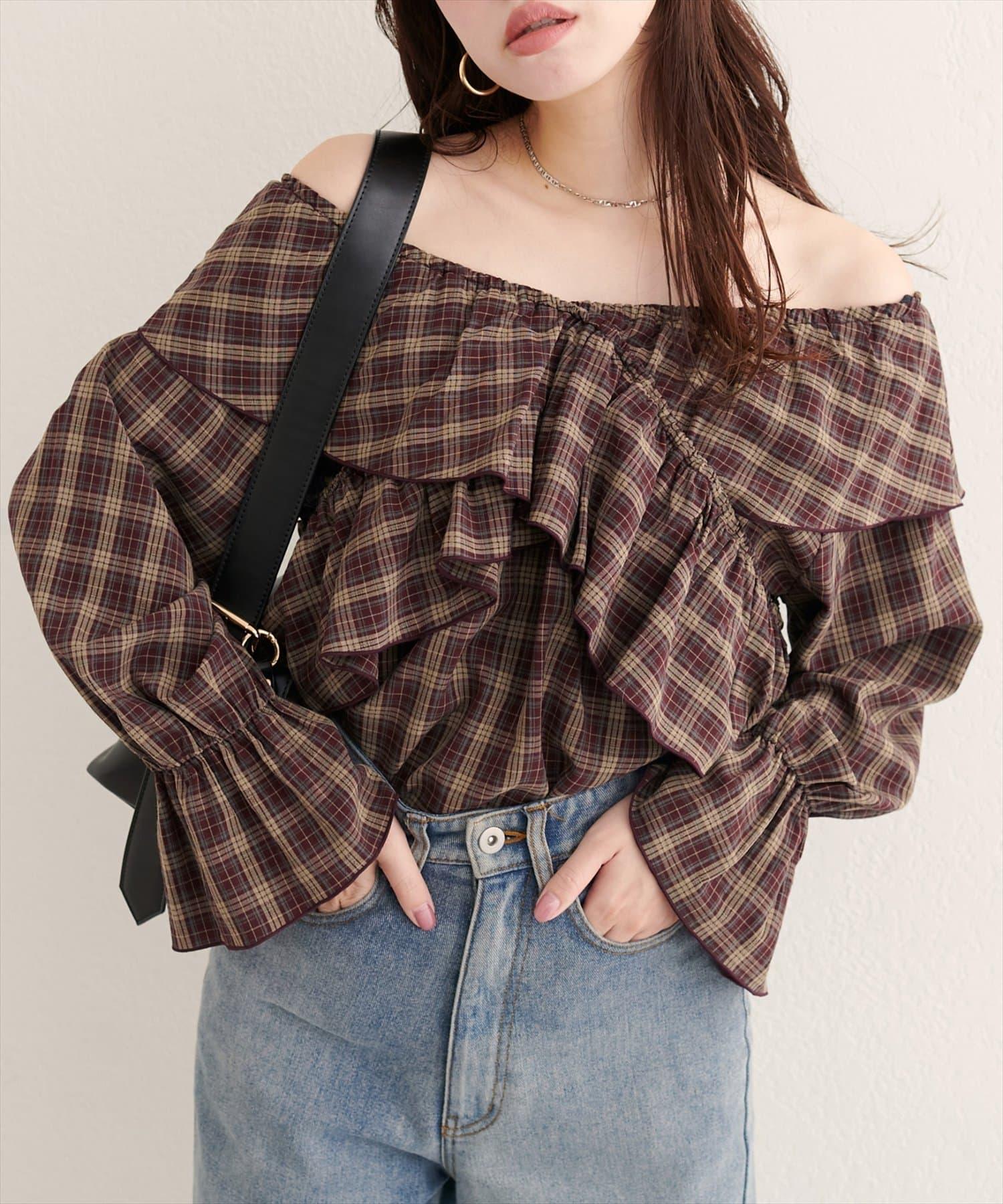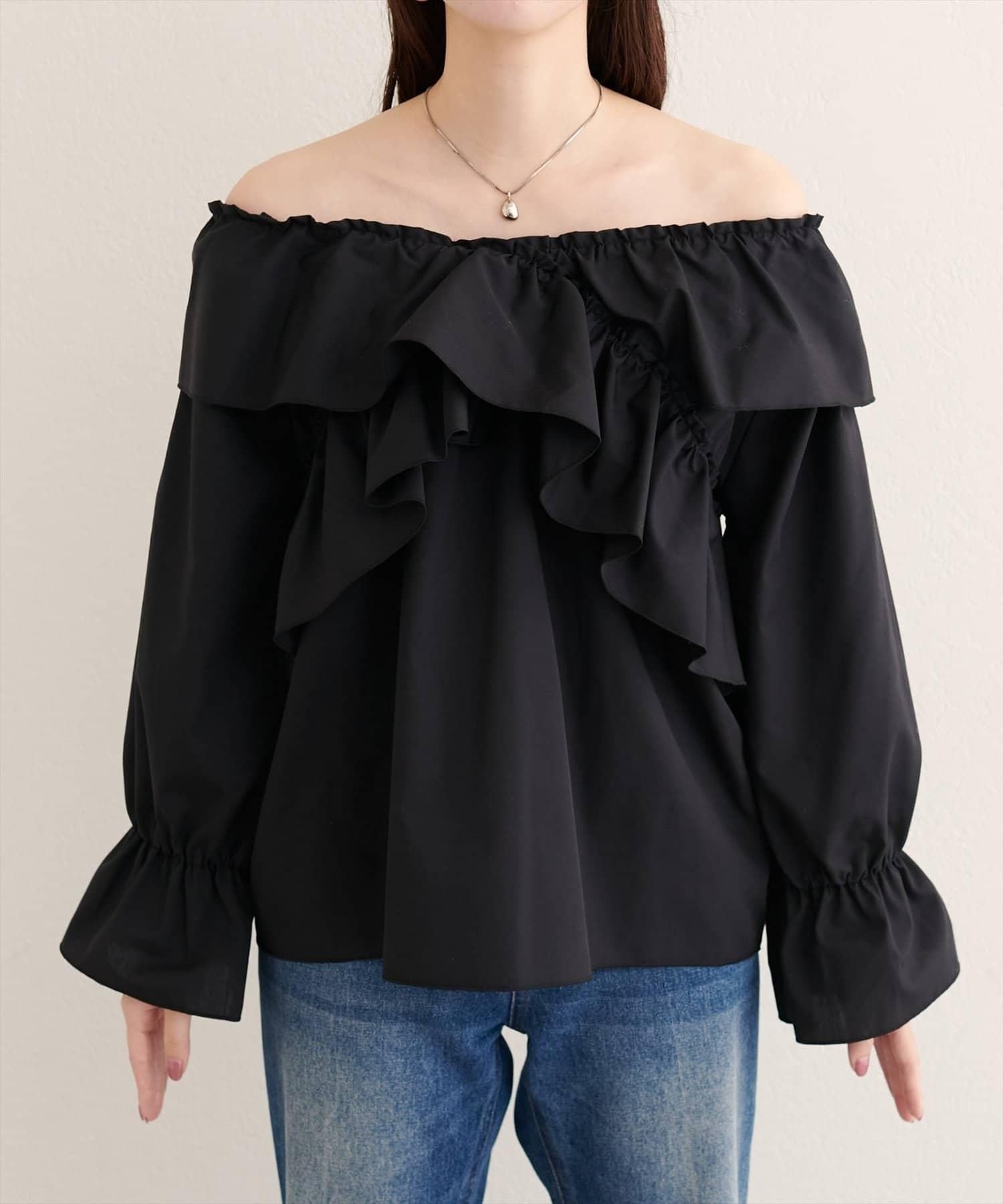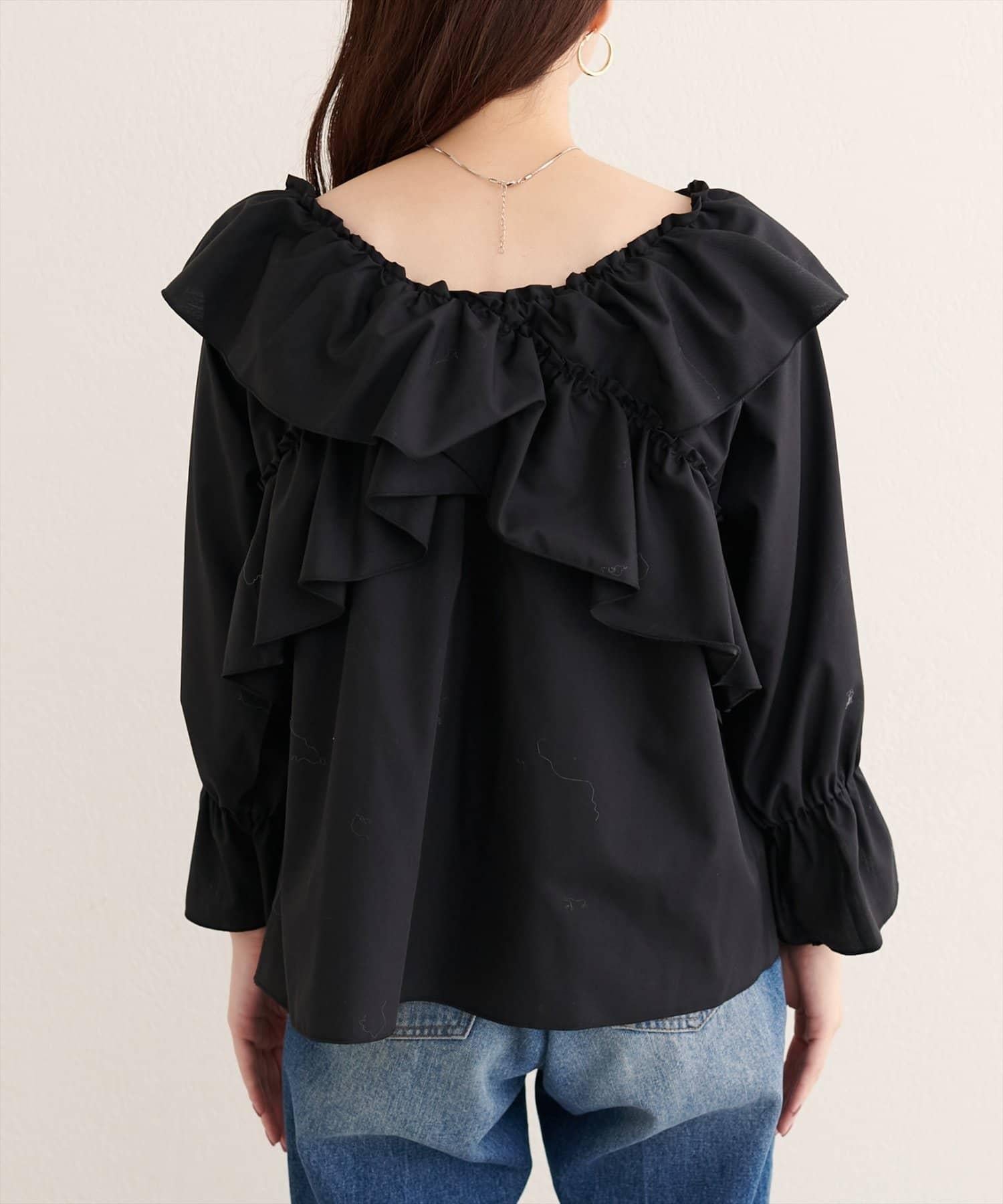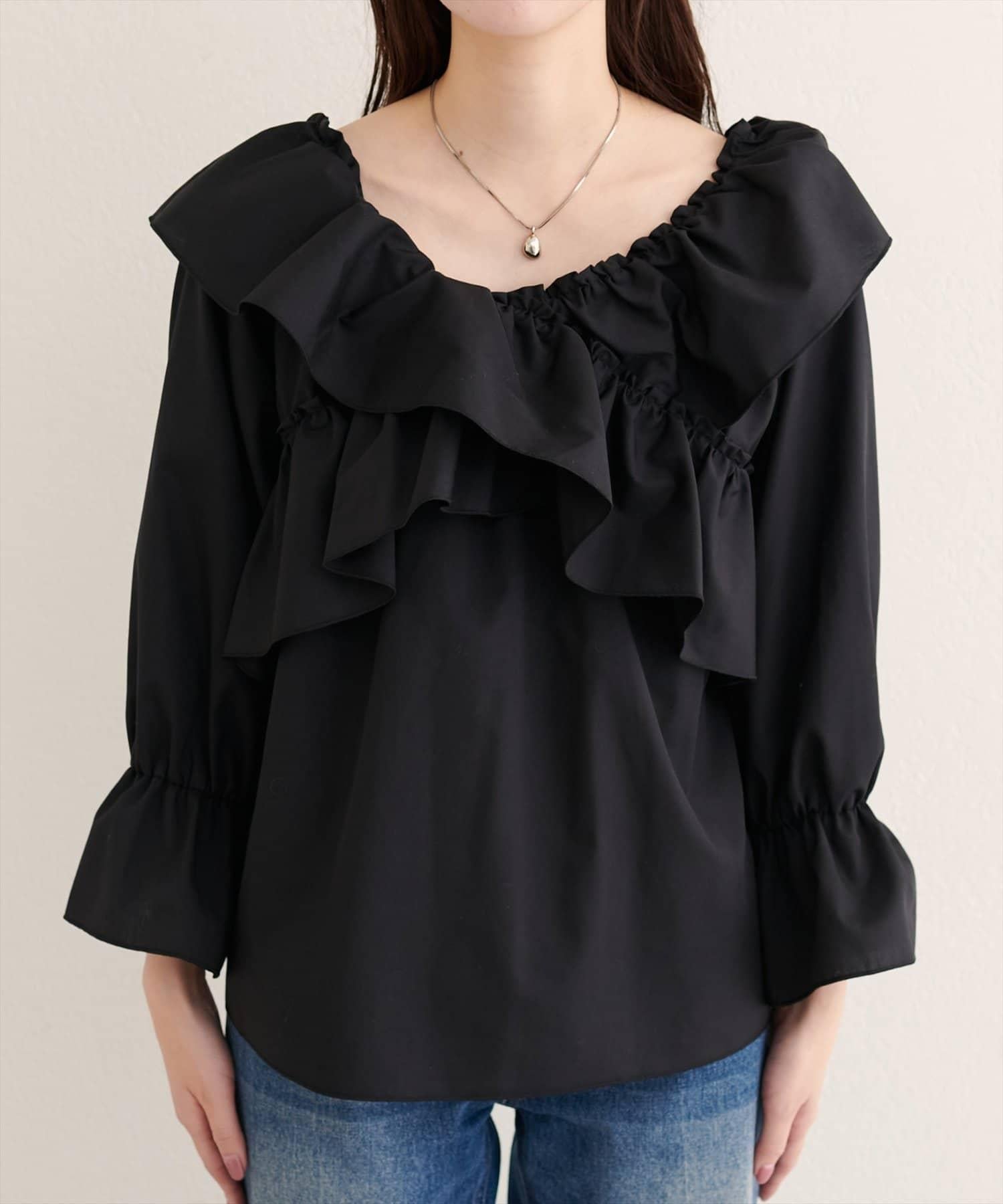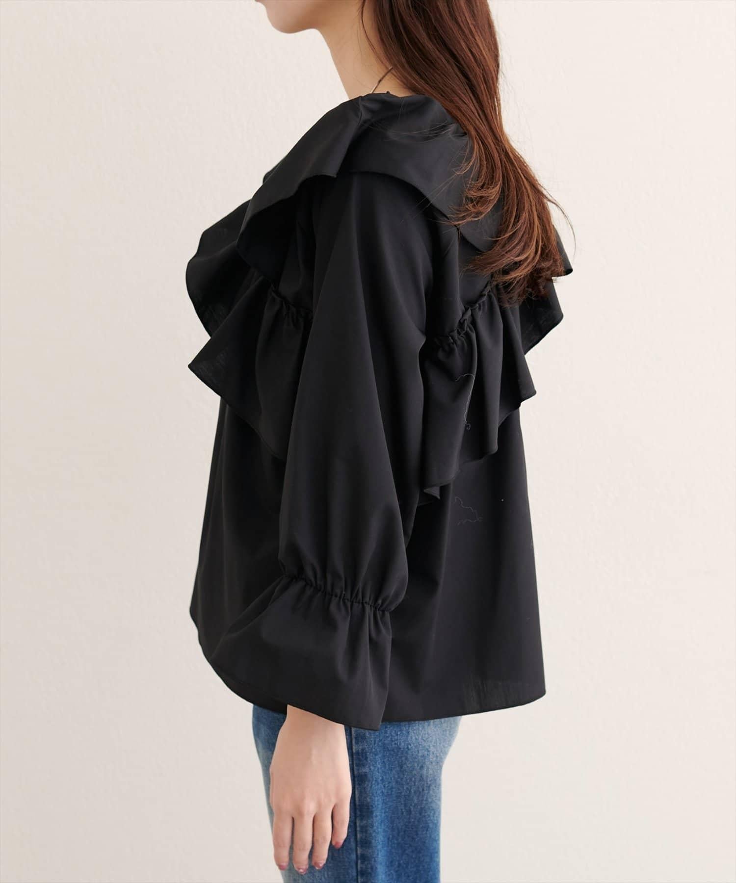 寬大的荷葉邊和糖果袖增加了亮點,因此只需搭配簡單的下裝,就能打造出協調的造型。