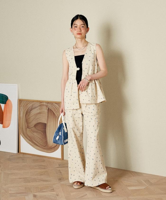 這款帶有彩繪細節的長褲也是本季的流行款式,採用了時髦的交叉腰設計。