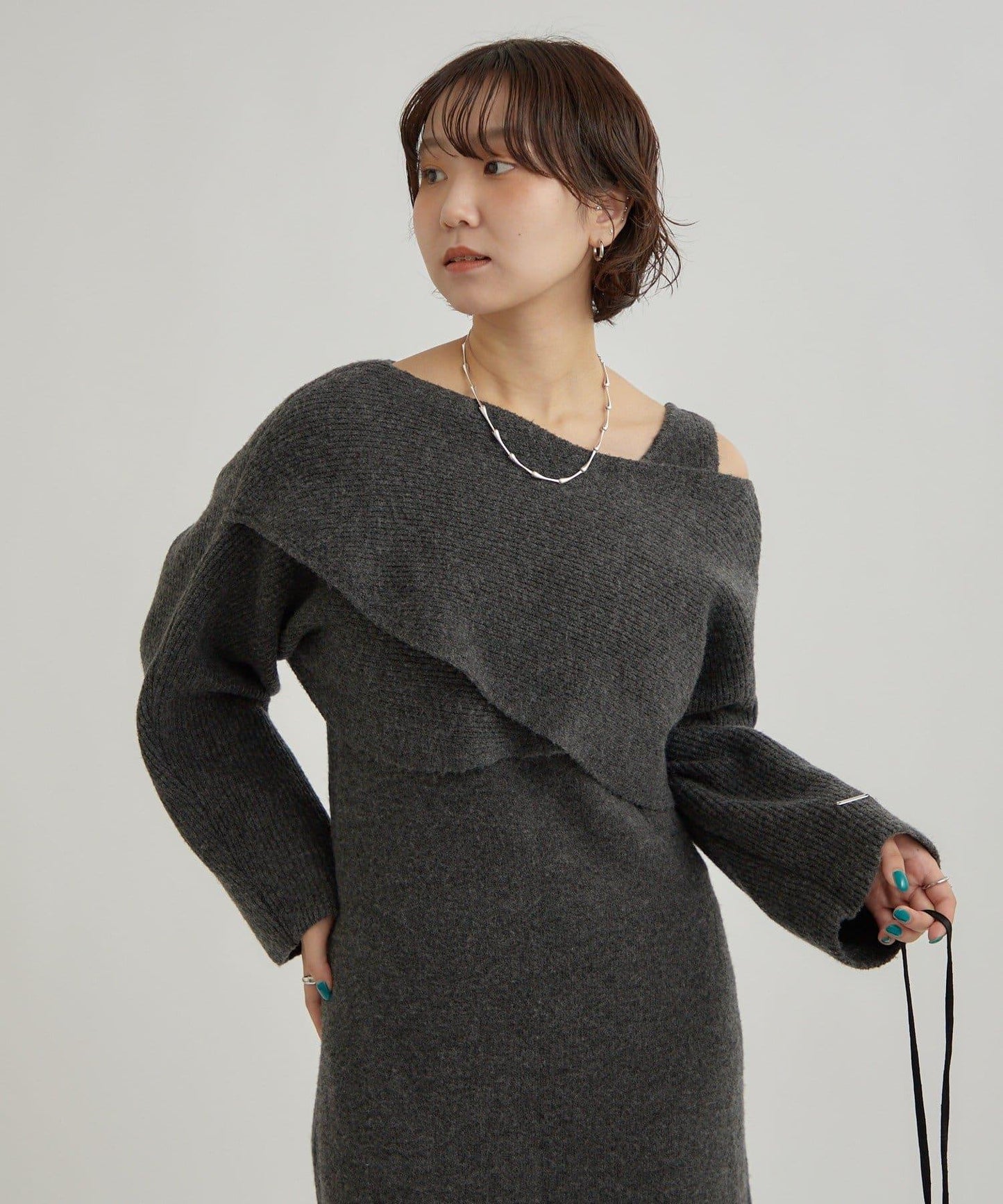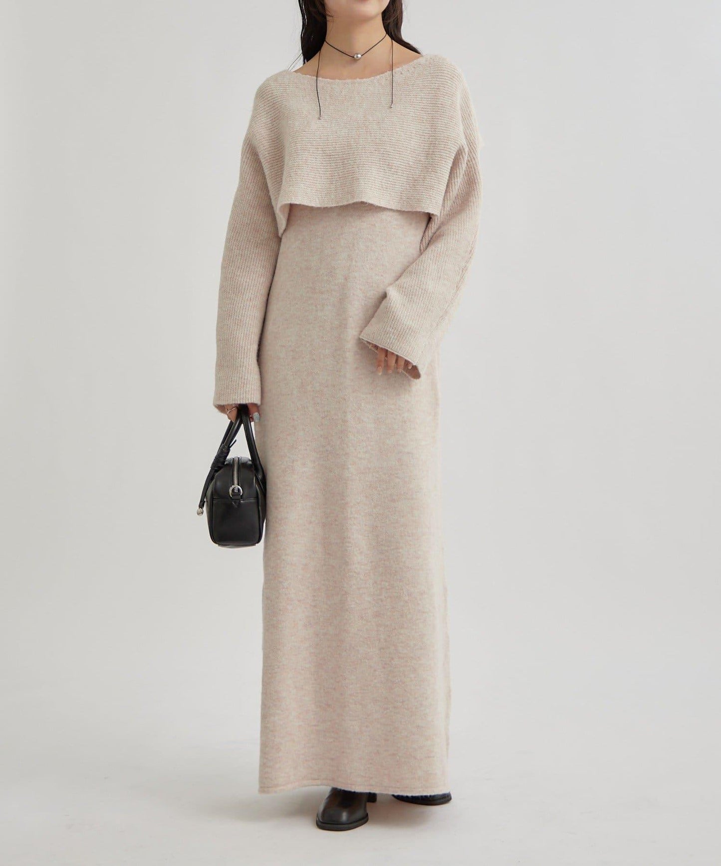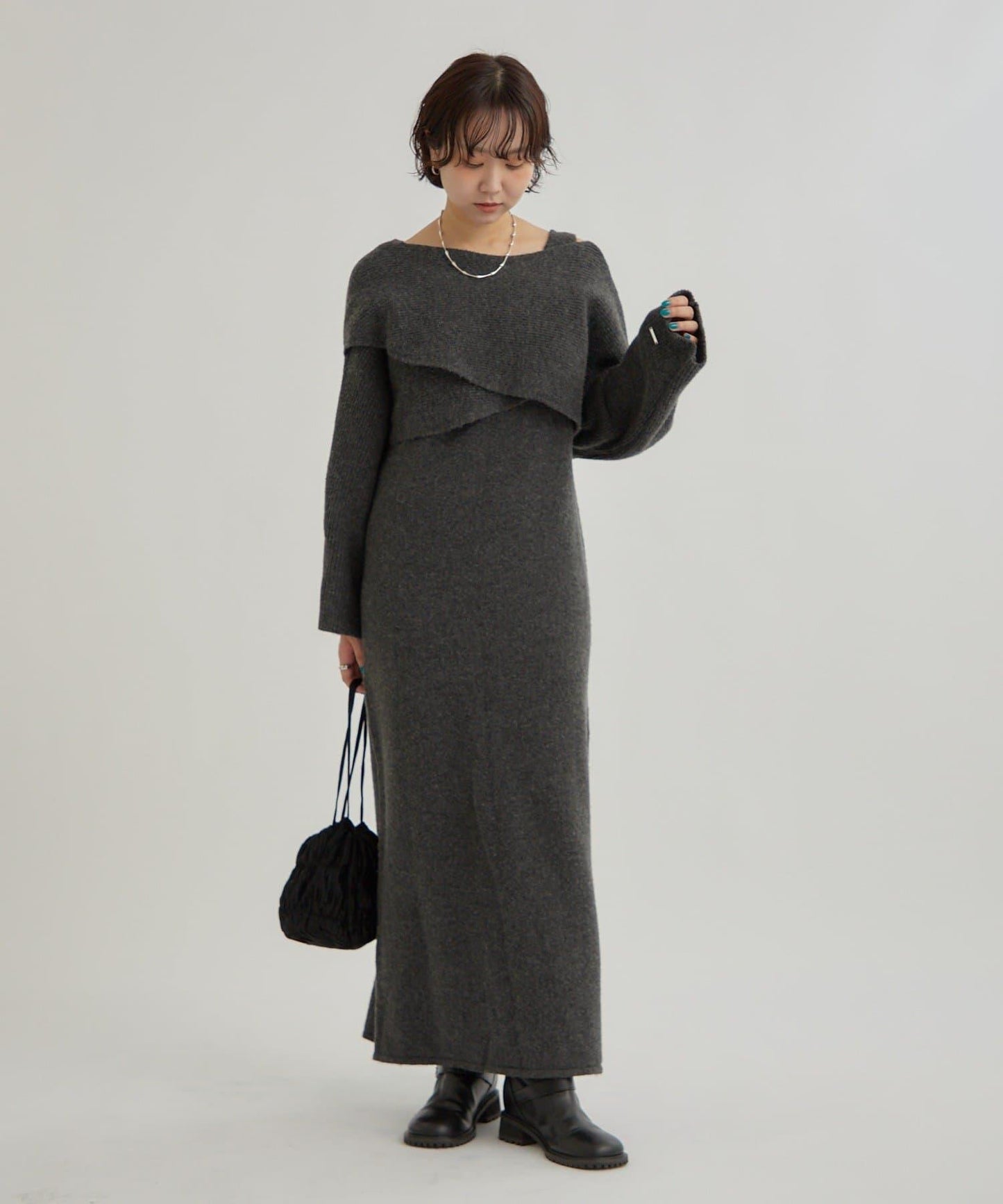 該商品由針織衫和連衣裙組成。針織衫可前後穿著。