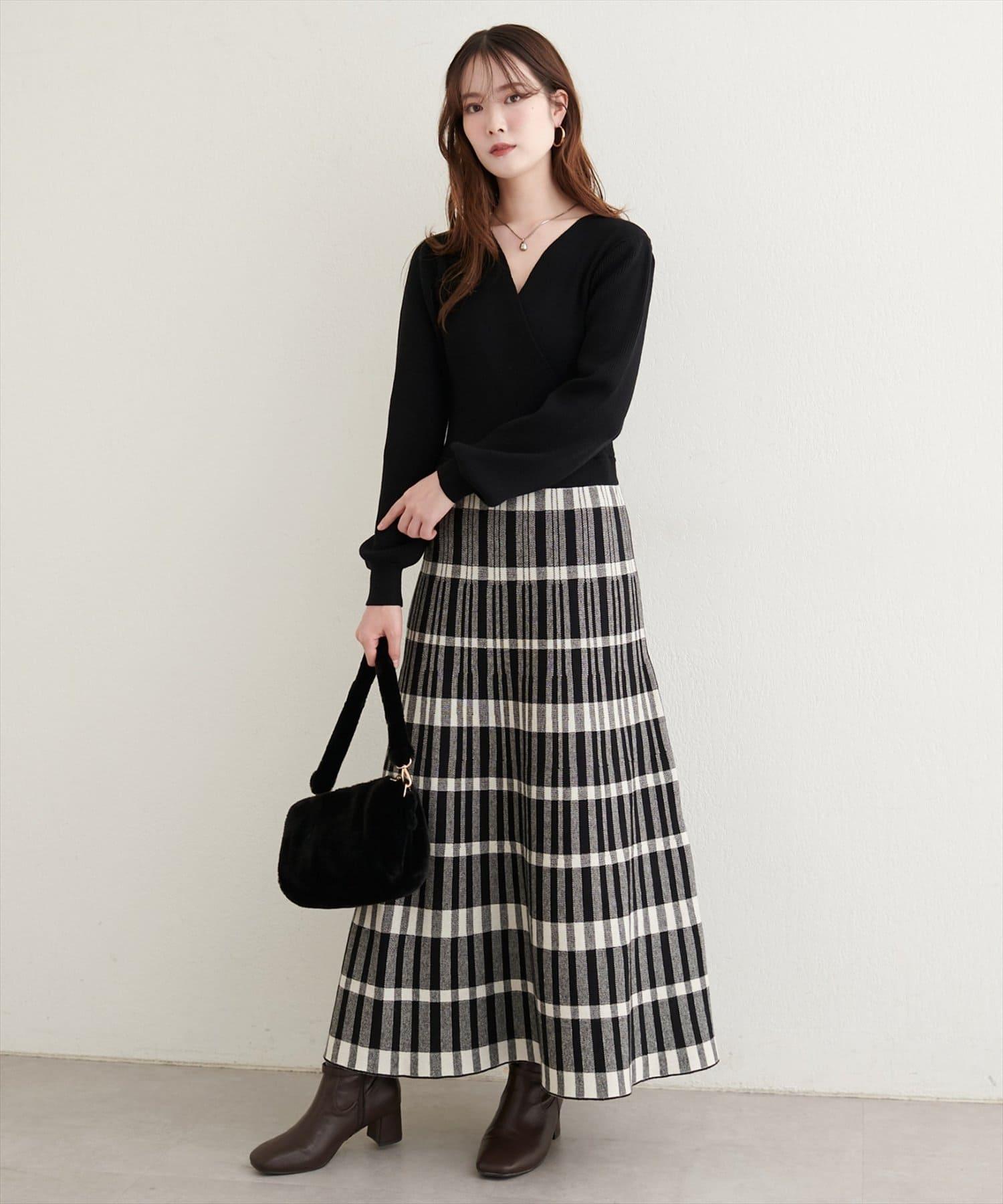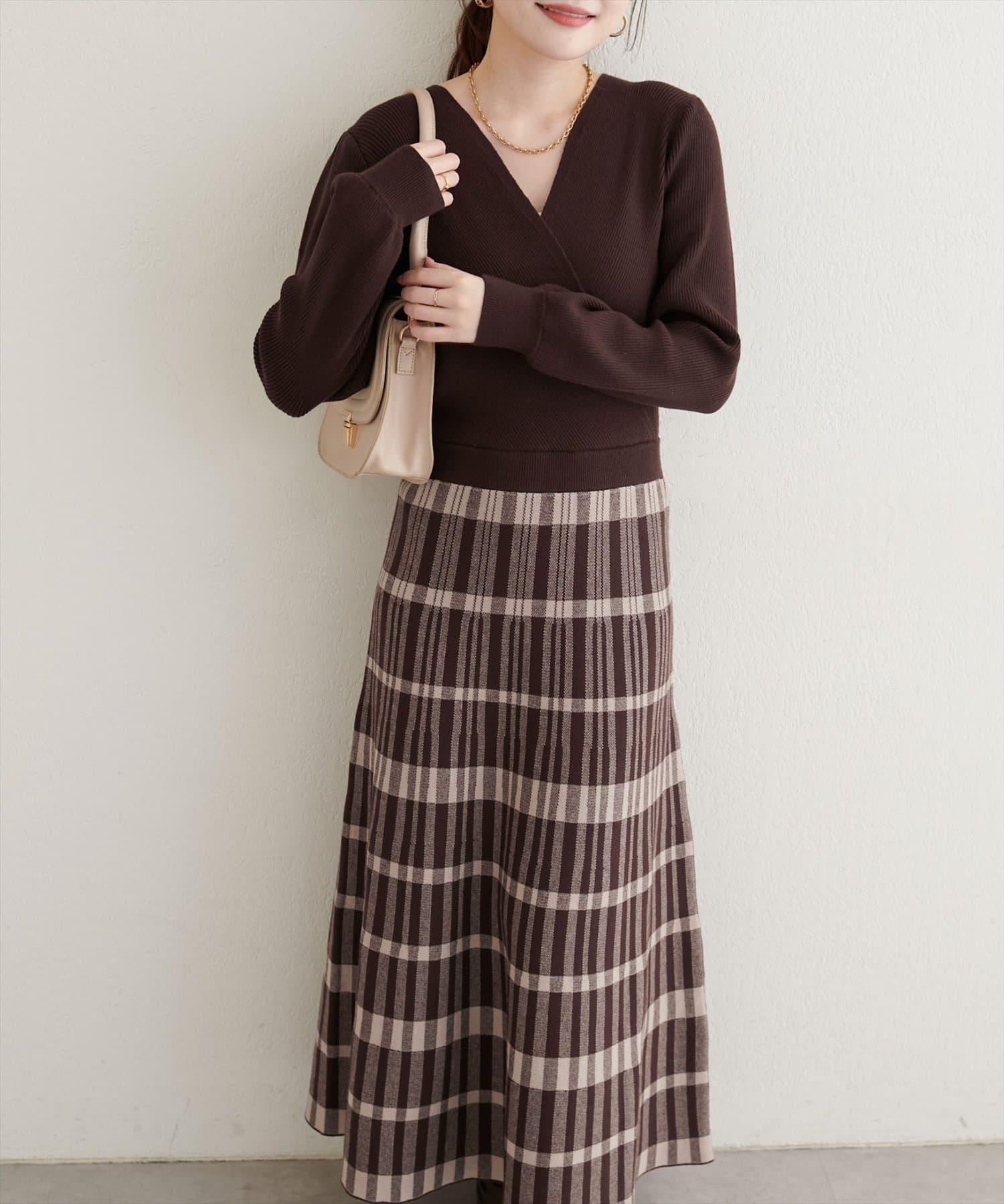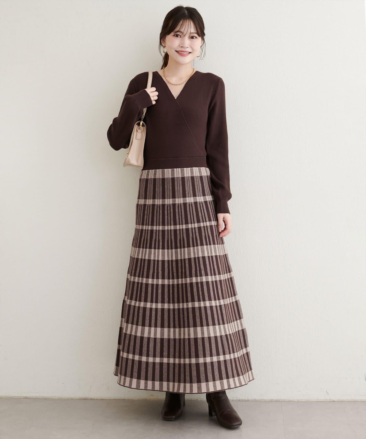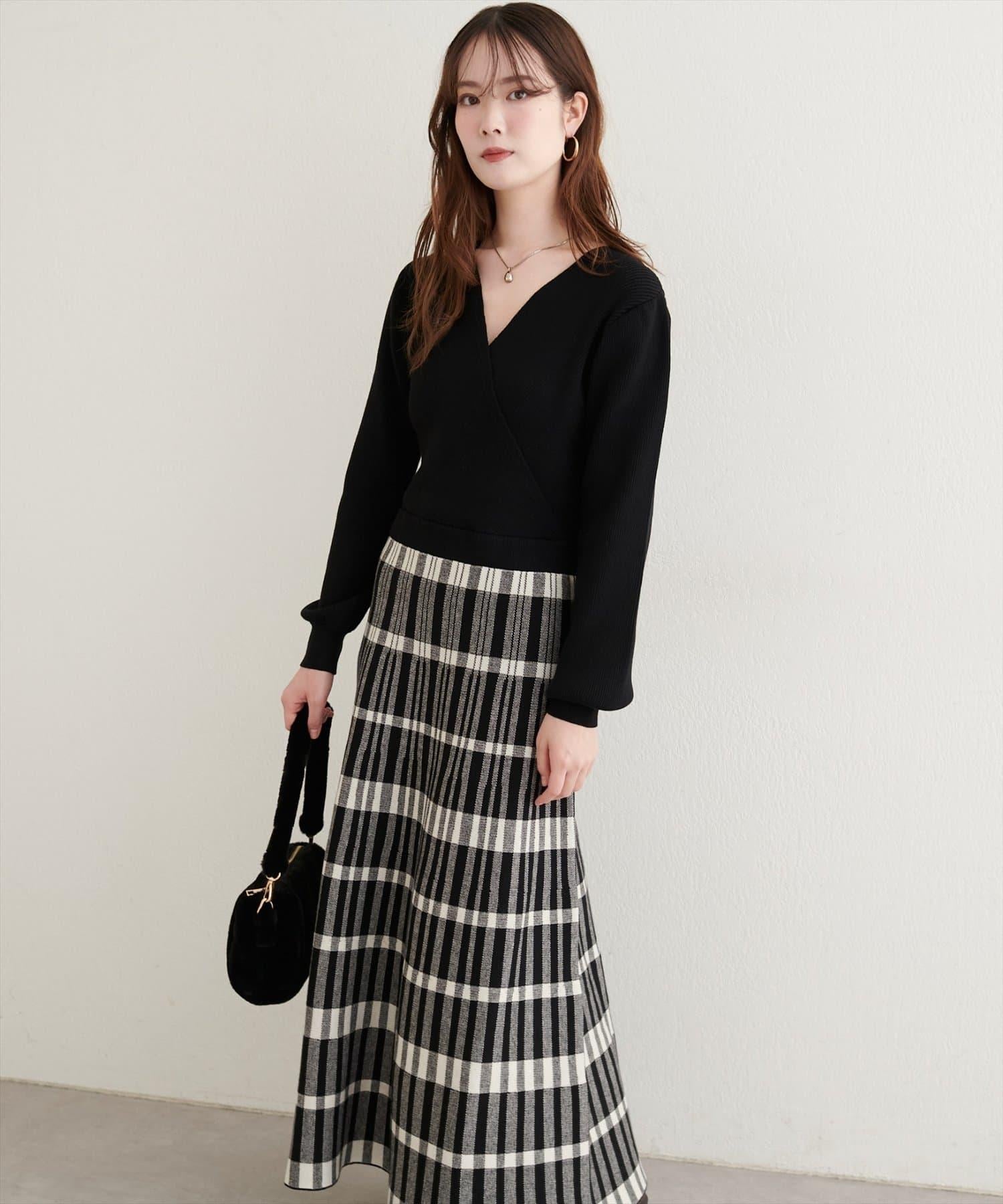 [WEB 👍] Cache-coeur 格紋針織連衣裙