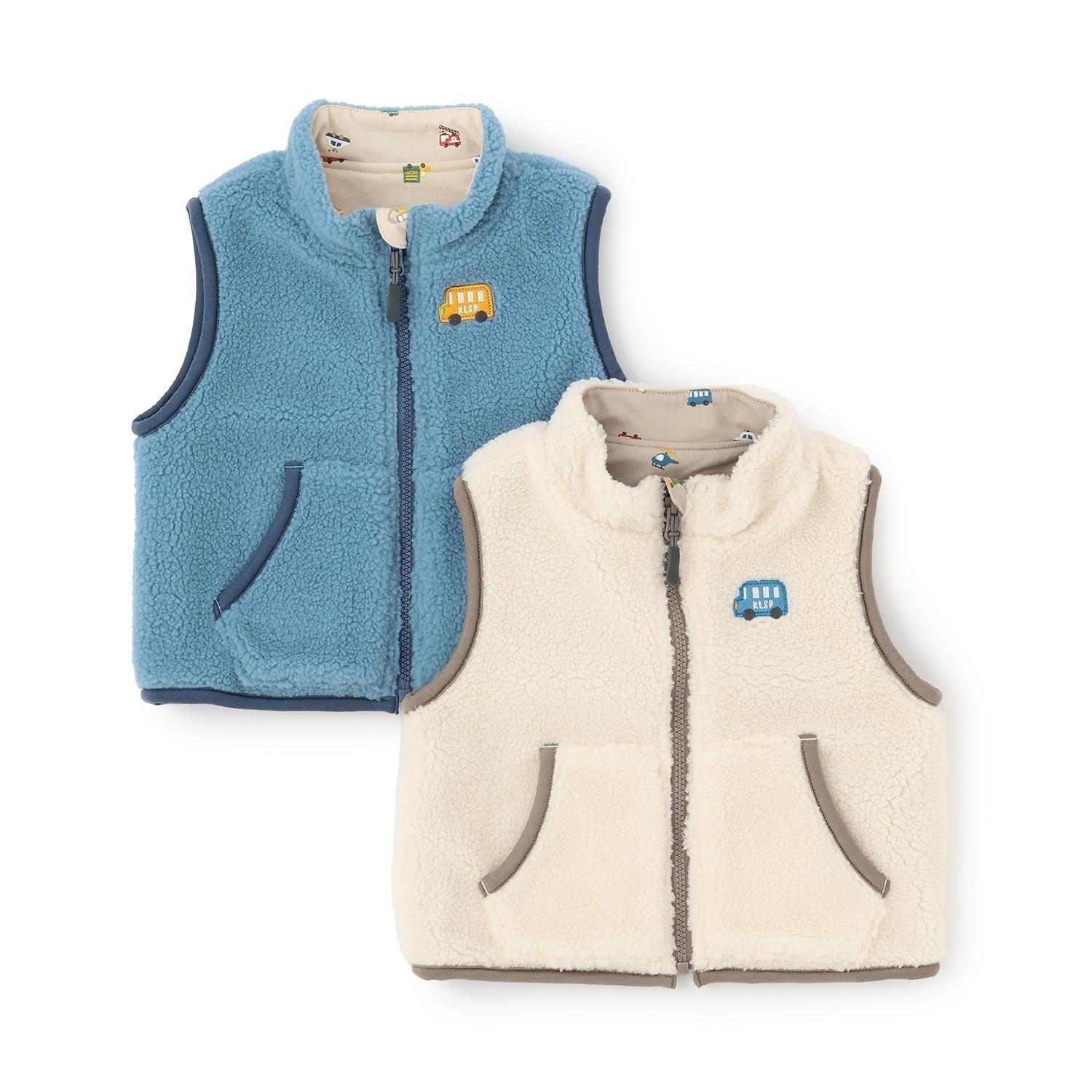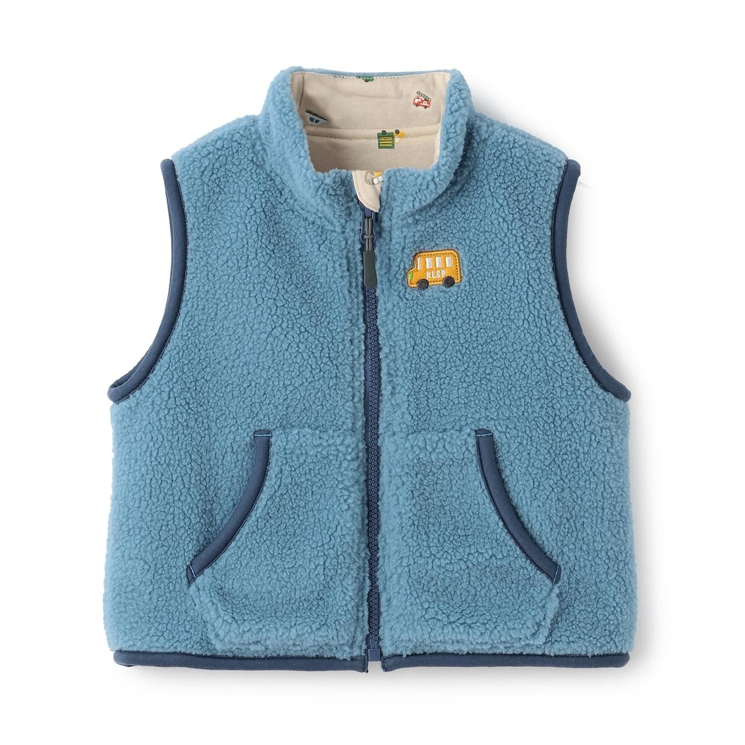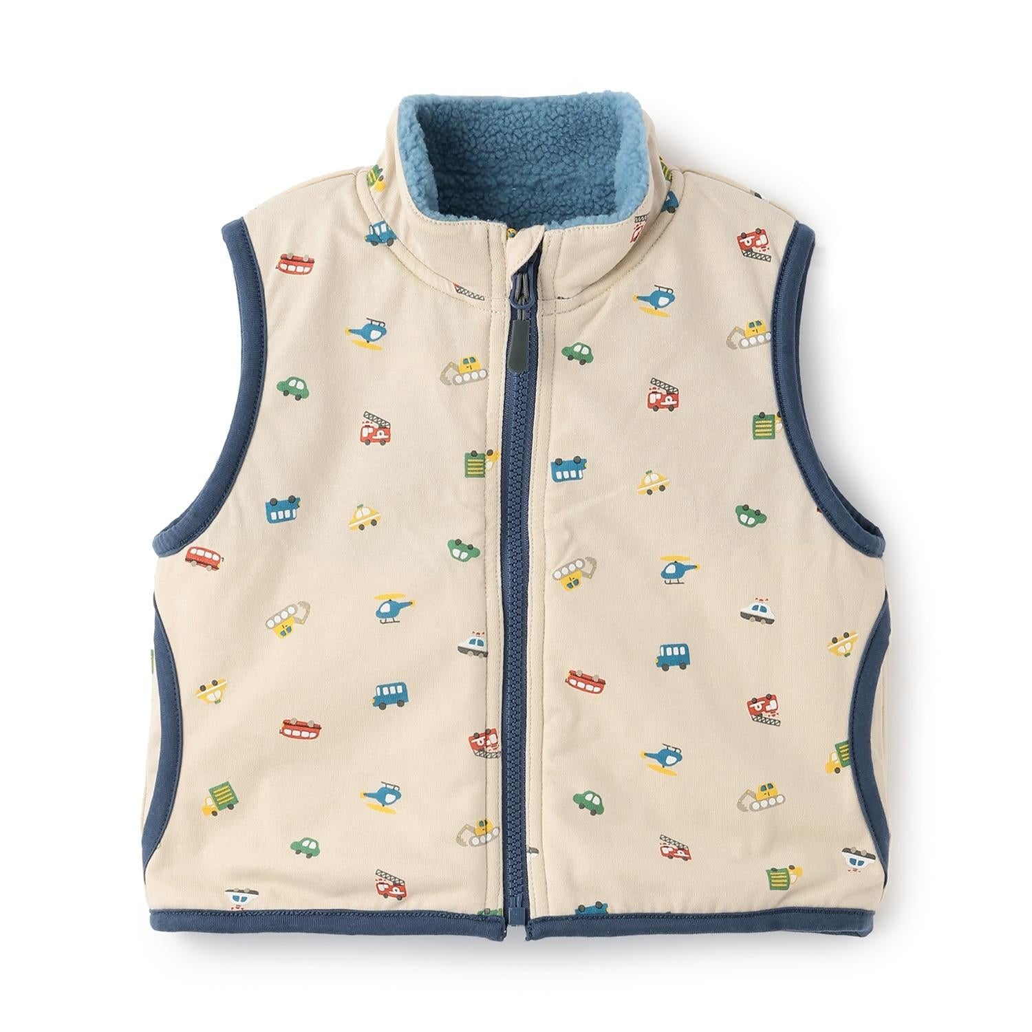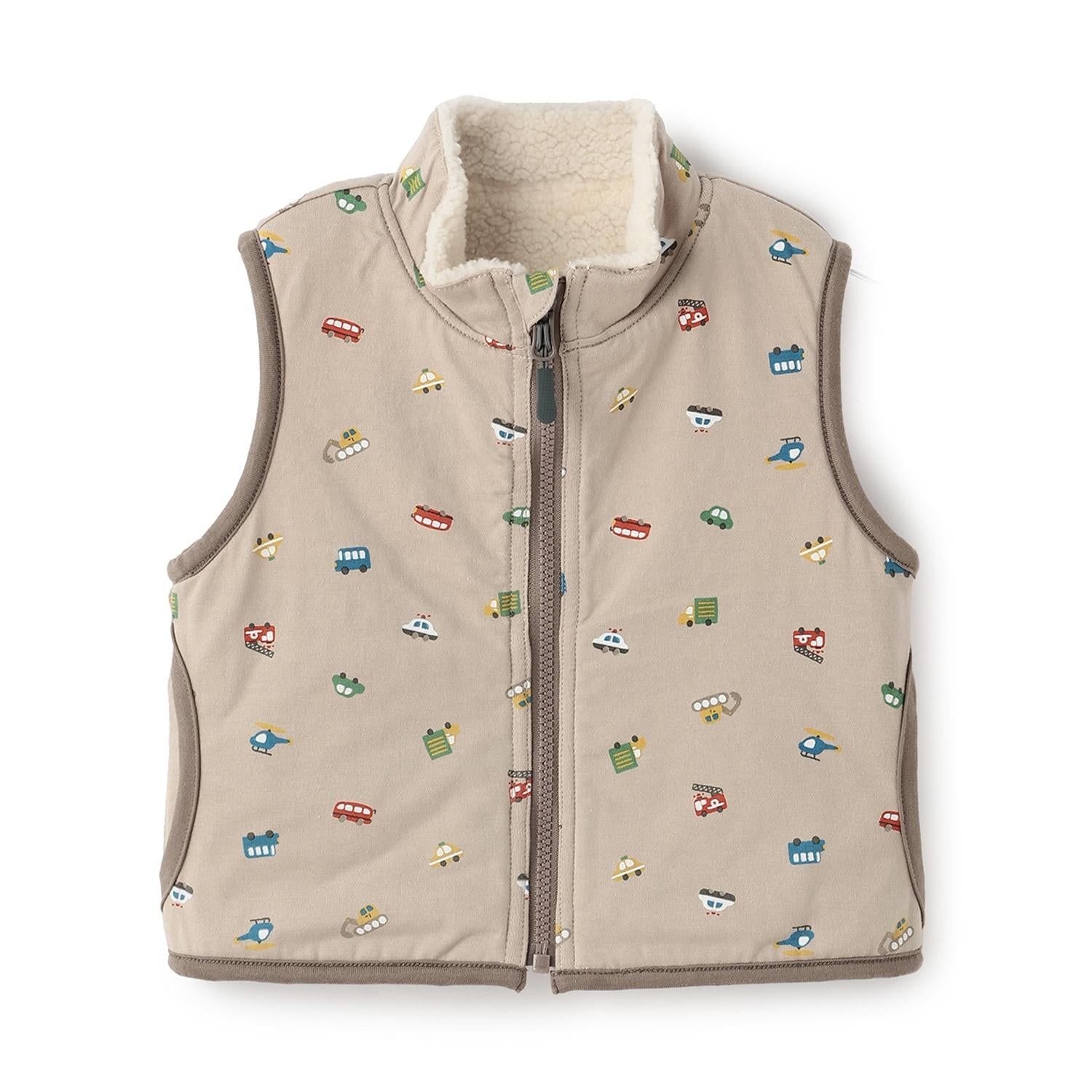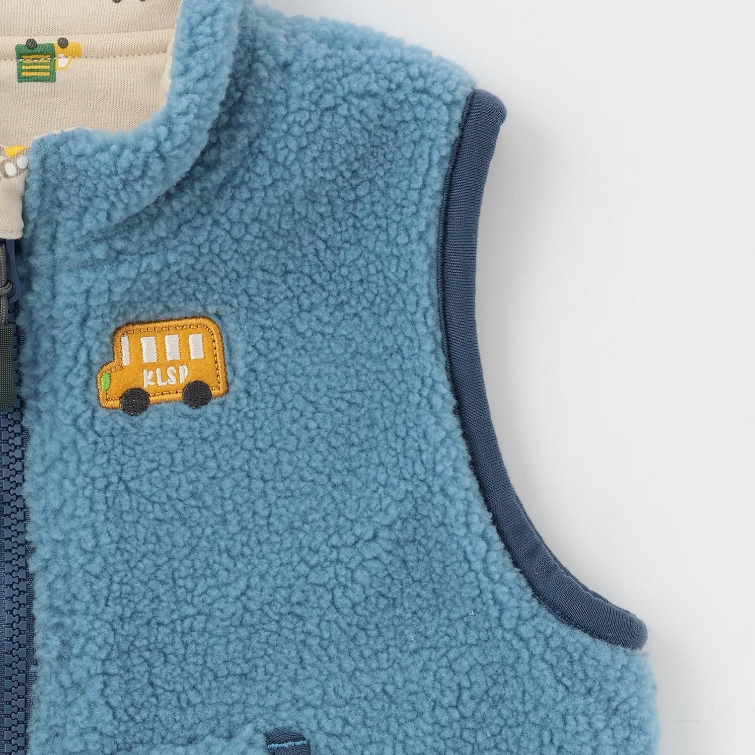 交通工具圖案雙面穿羊羔絨馬甲