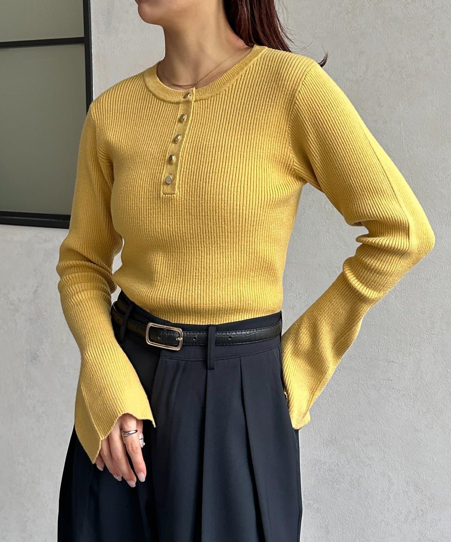 亨利領喇叭袖羅紋針織上衣