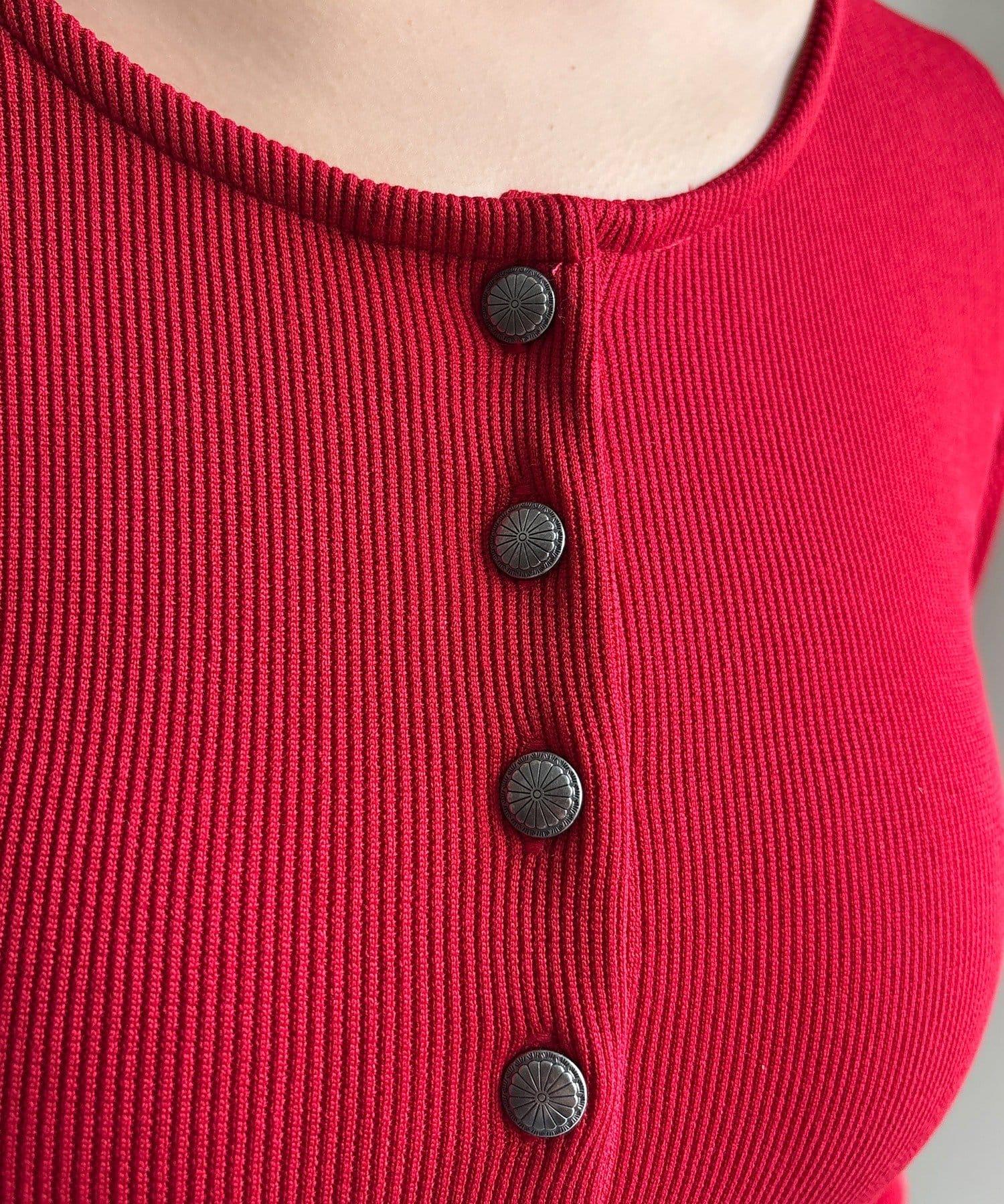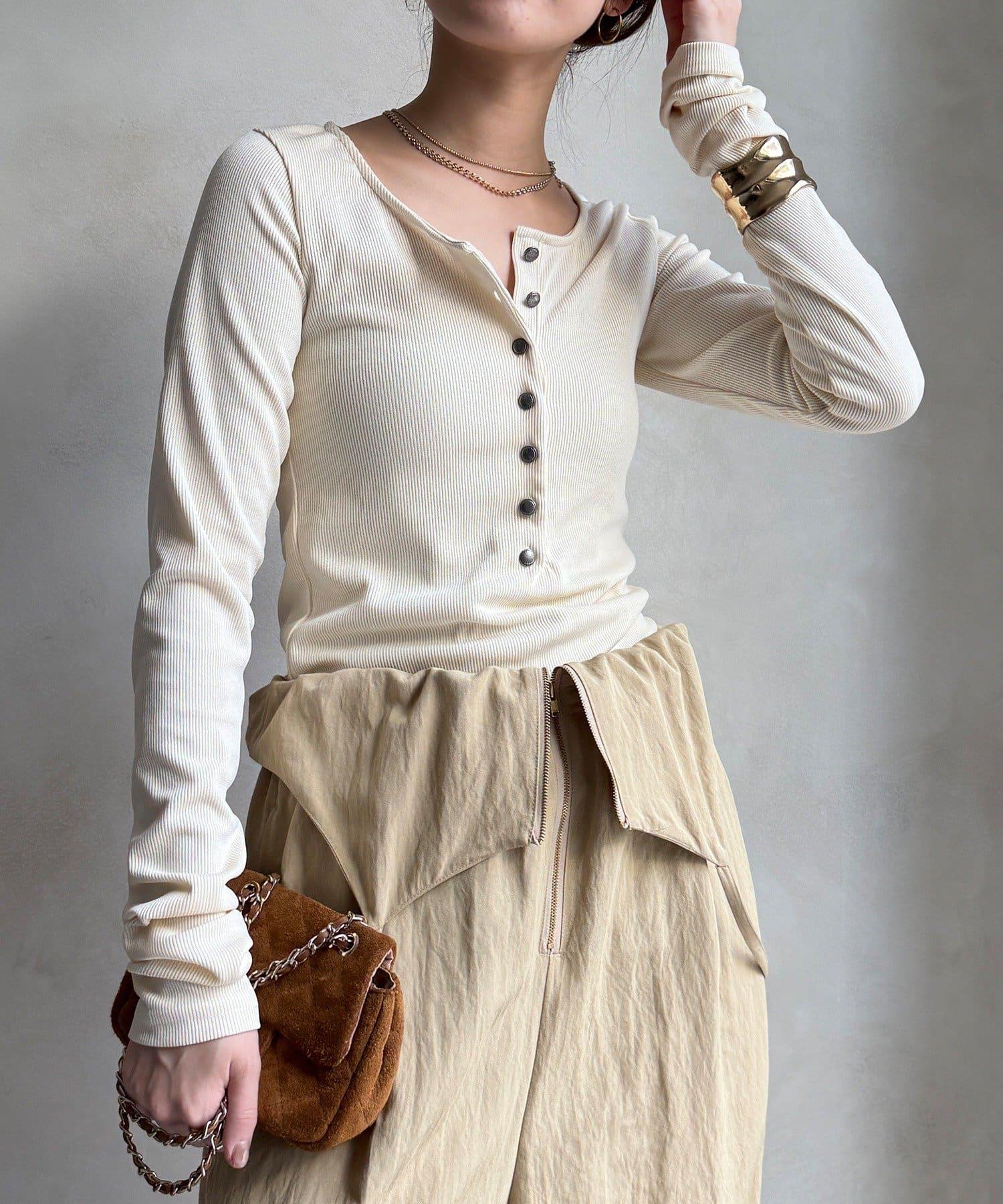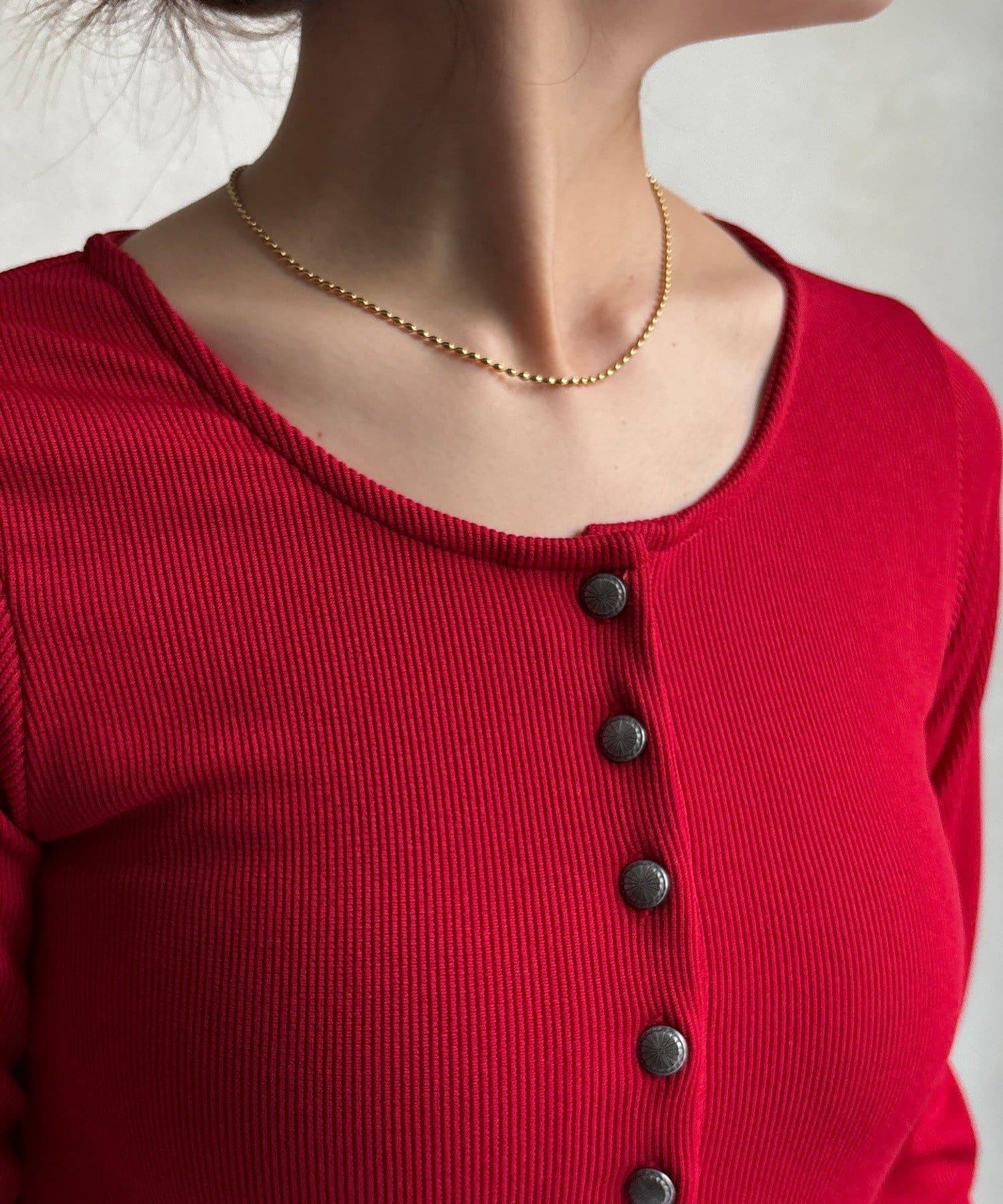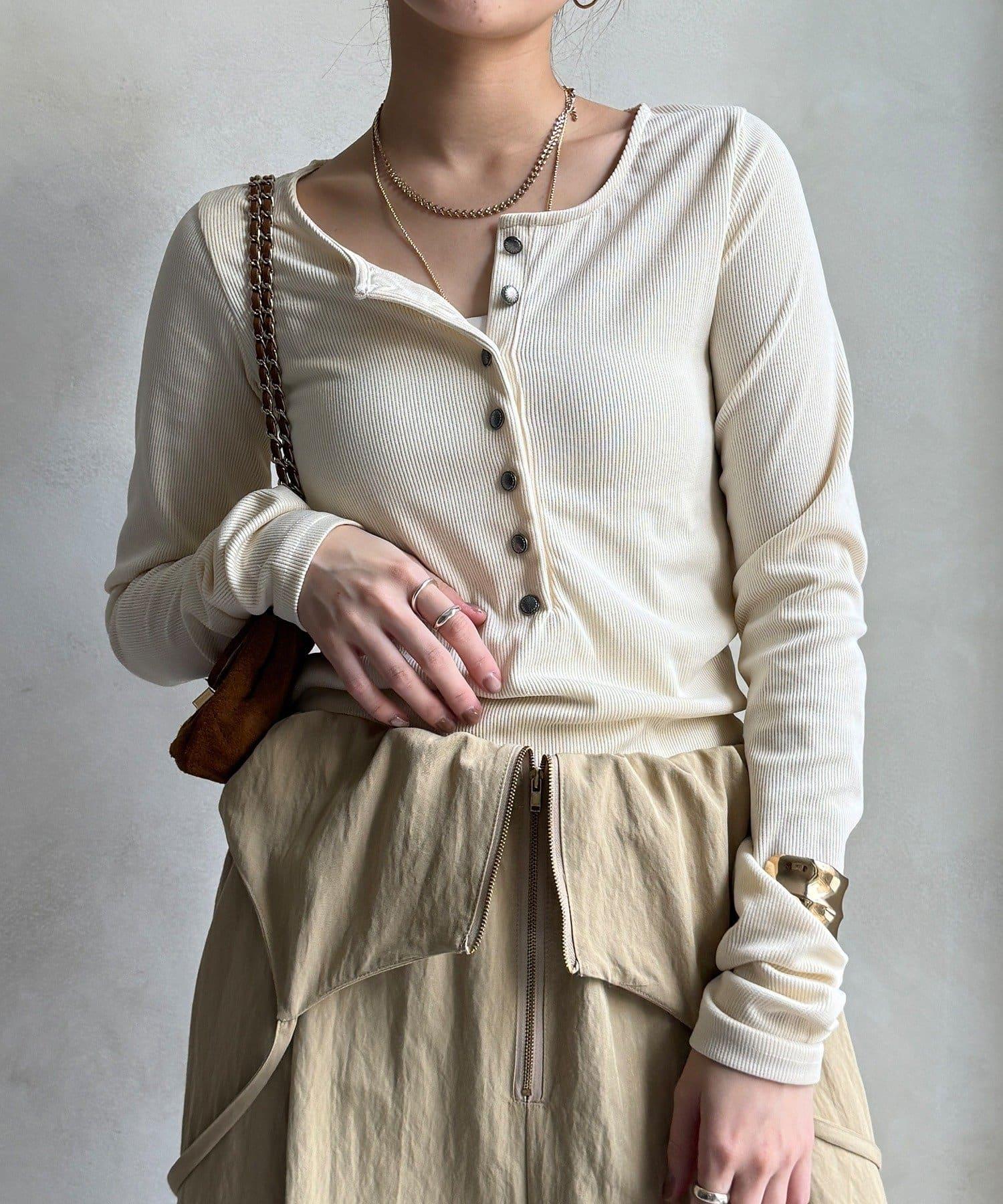 紐扣營造出復古的感覺,即使單穿也能使服裝更加協調。