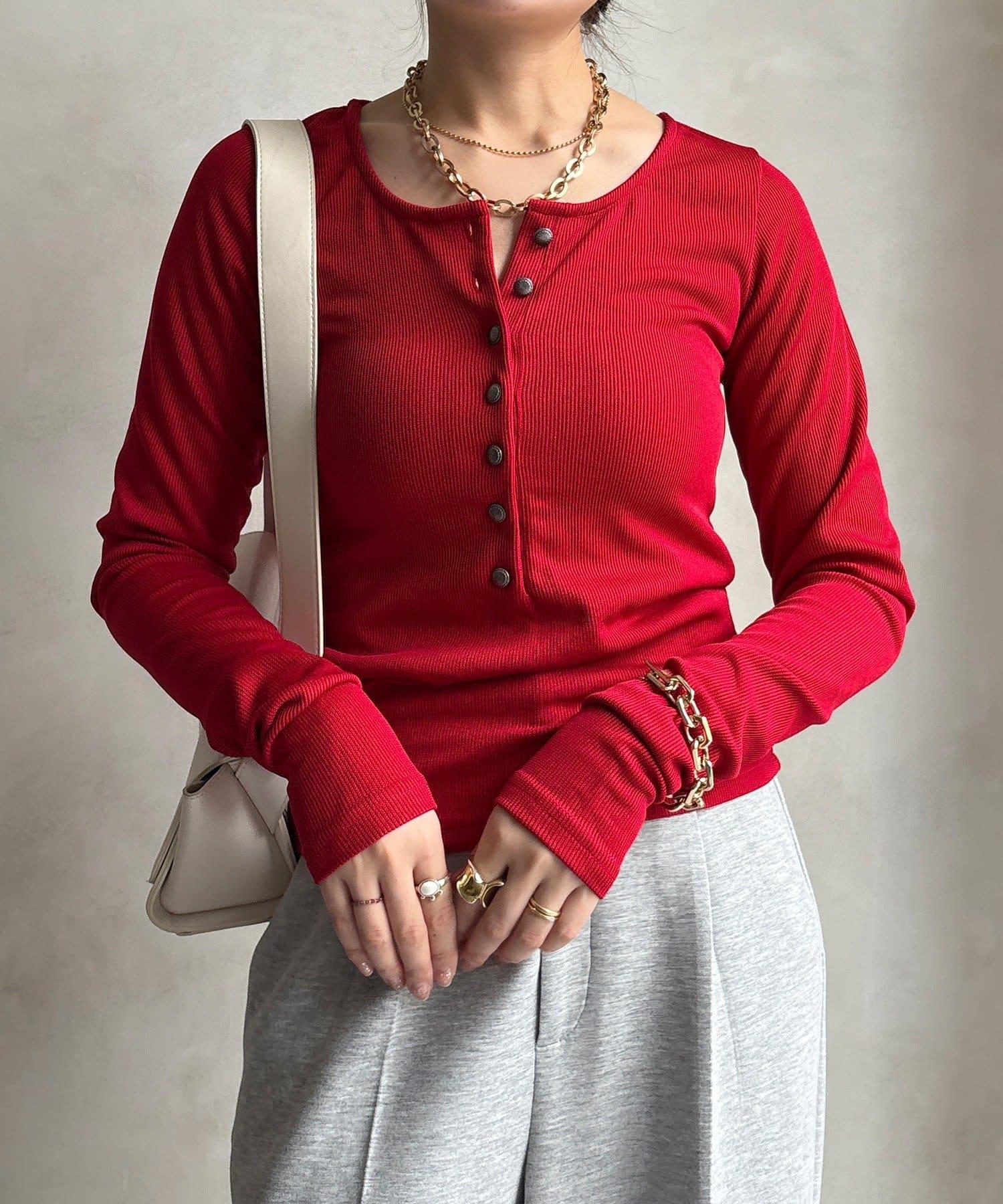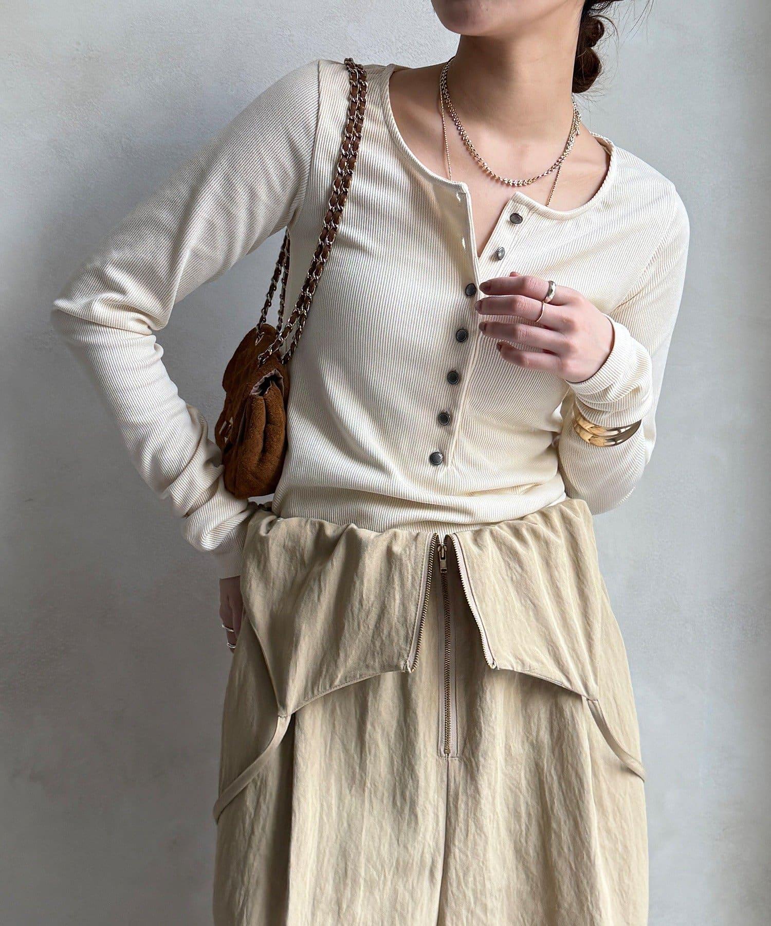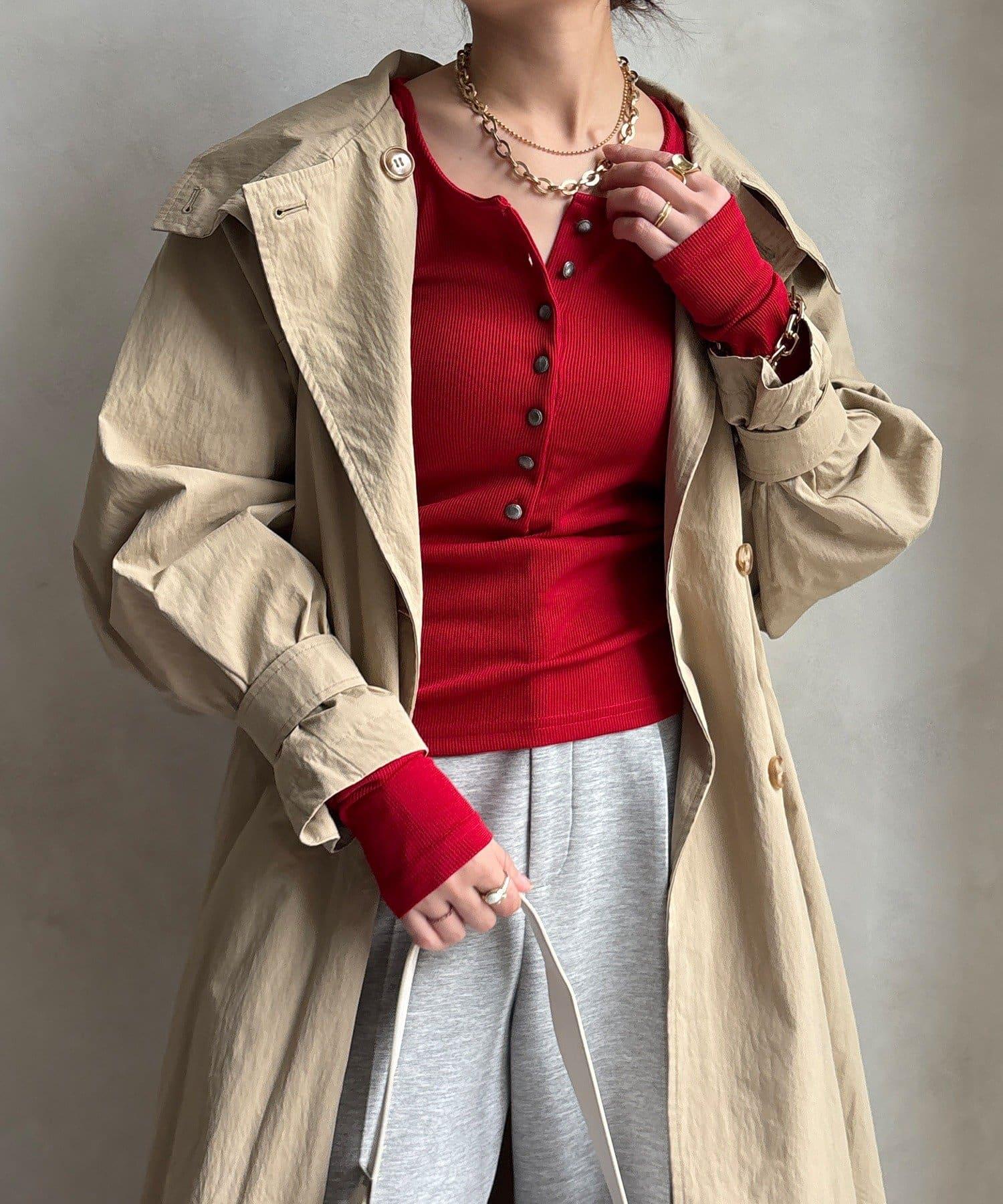 紐扣營造出復古的感覺,即使單穿也能使服裝更加協調。