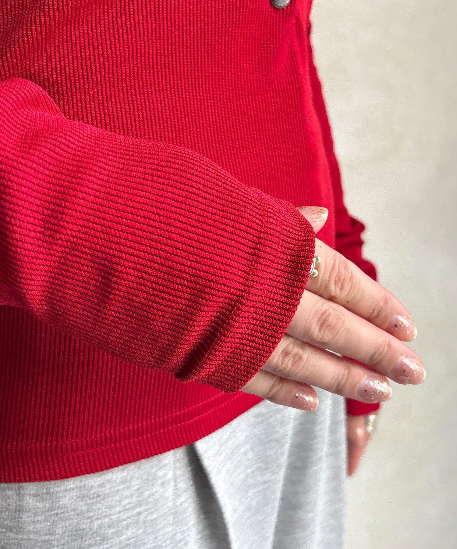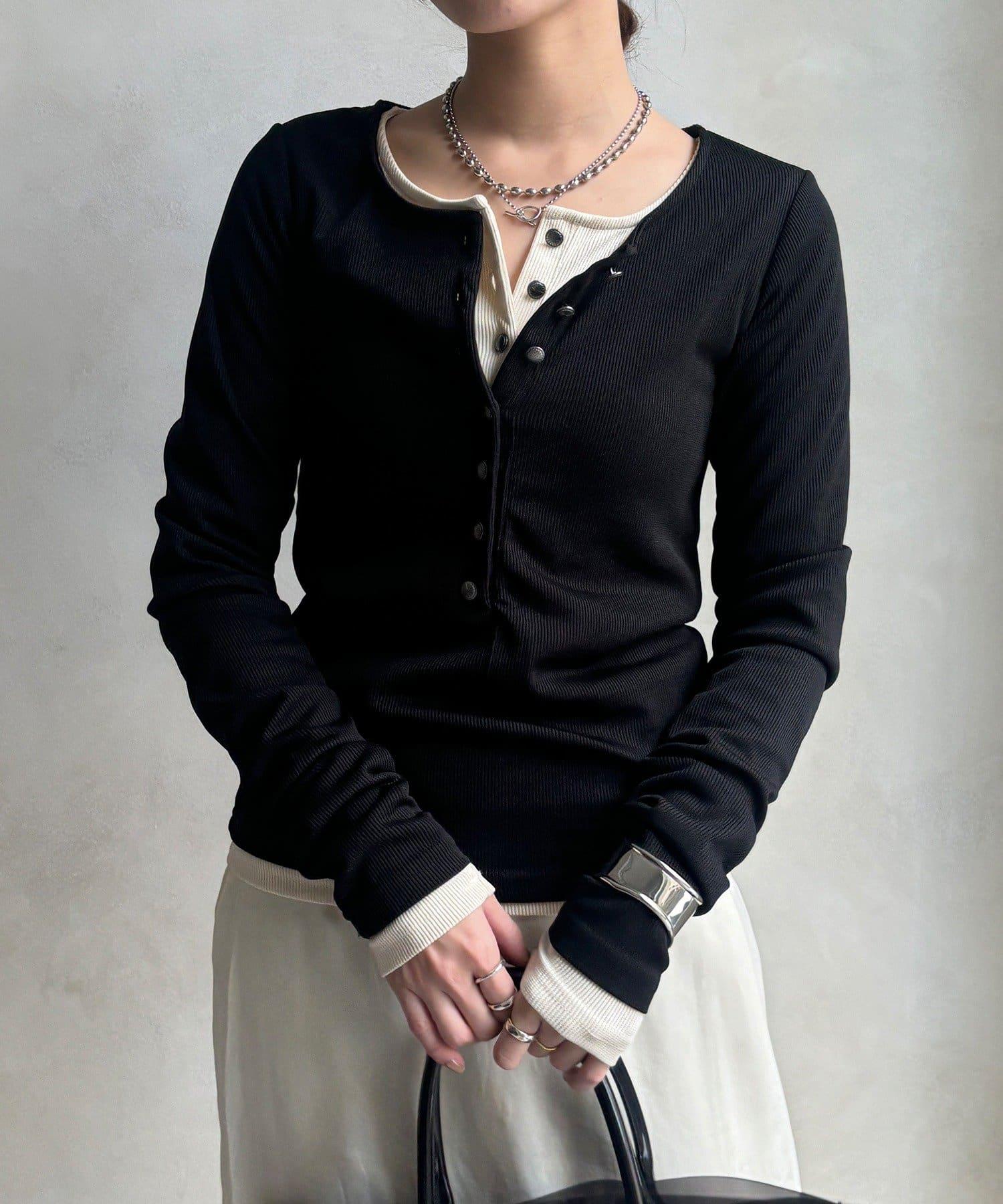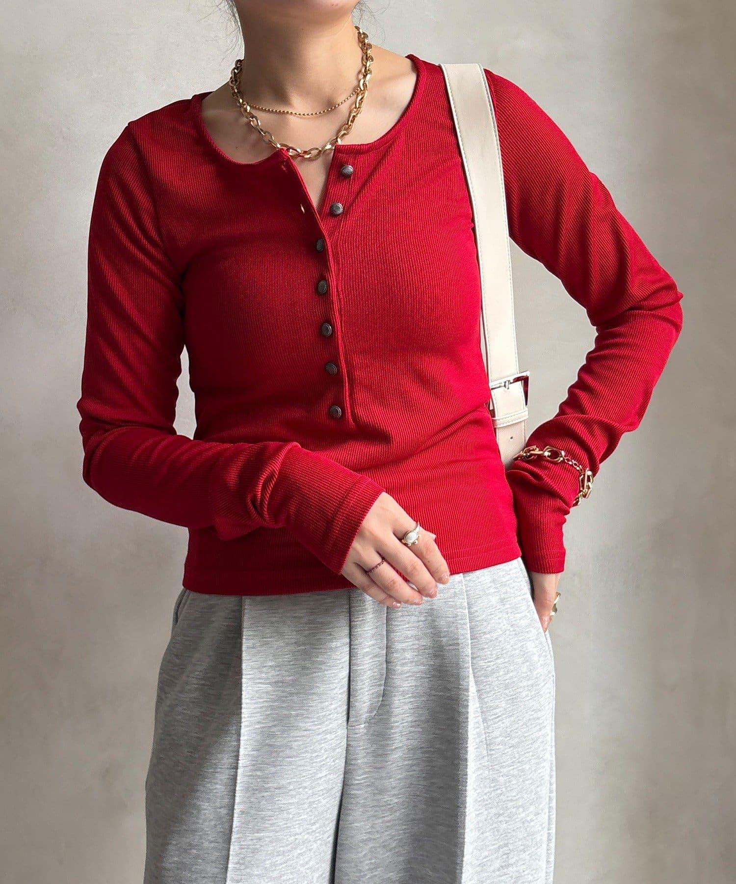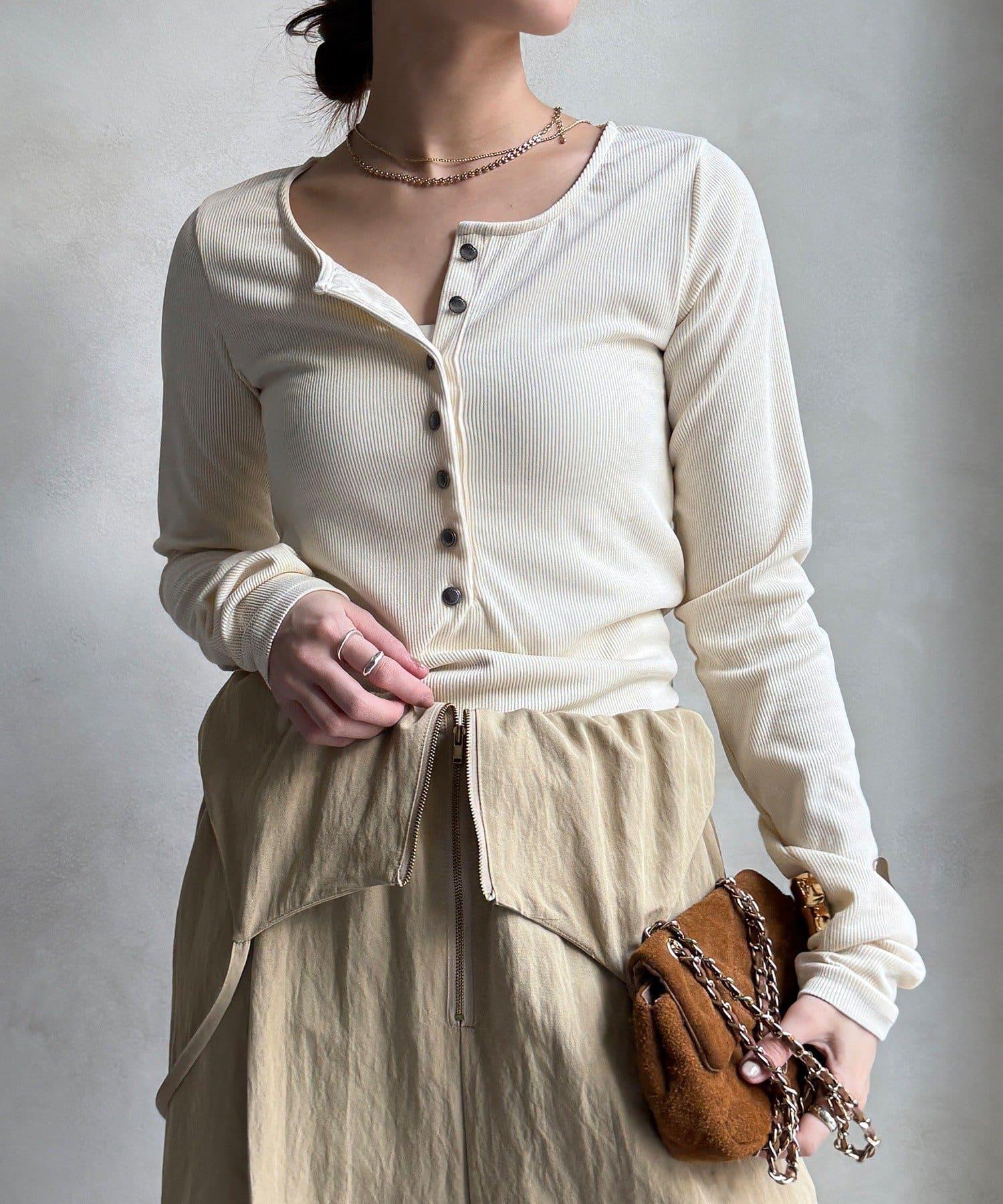 紐扣營造出復古的感覺,即使單穿也能使服裝更加協調。