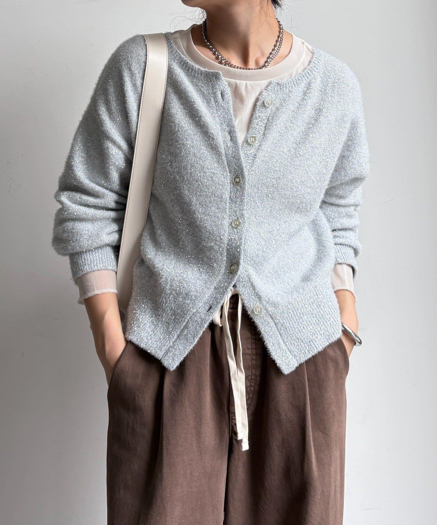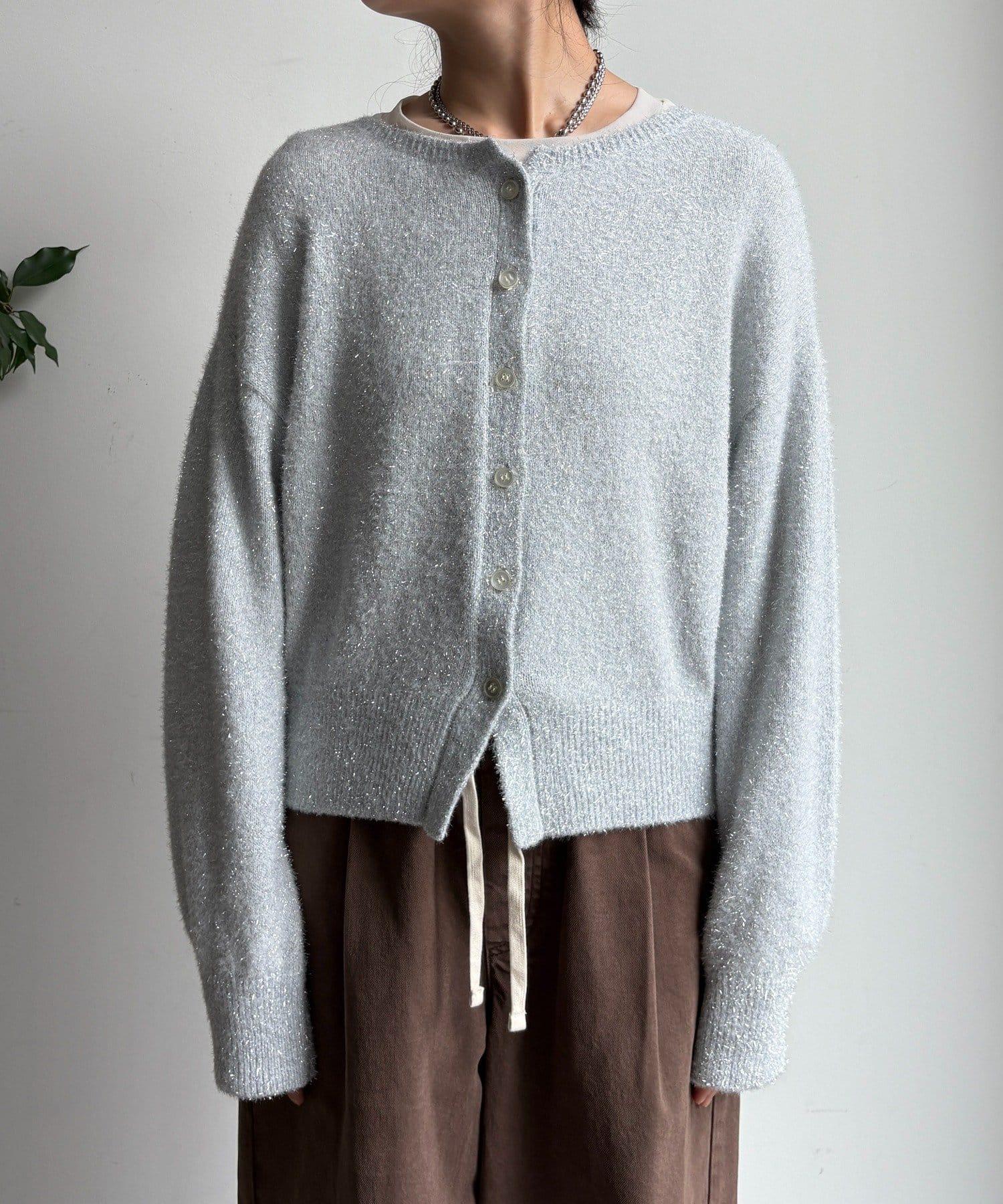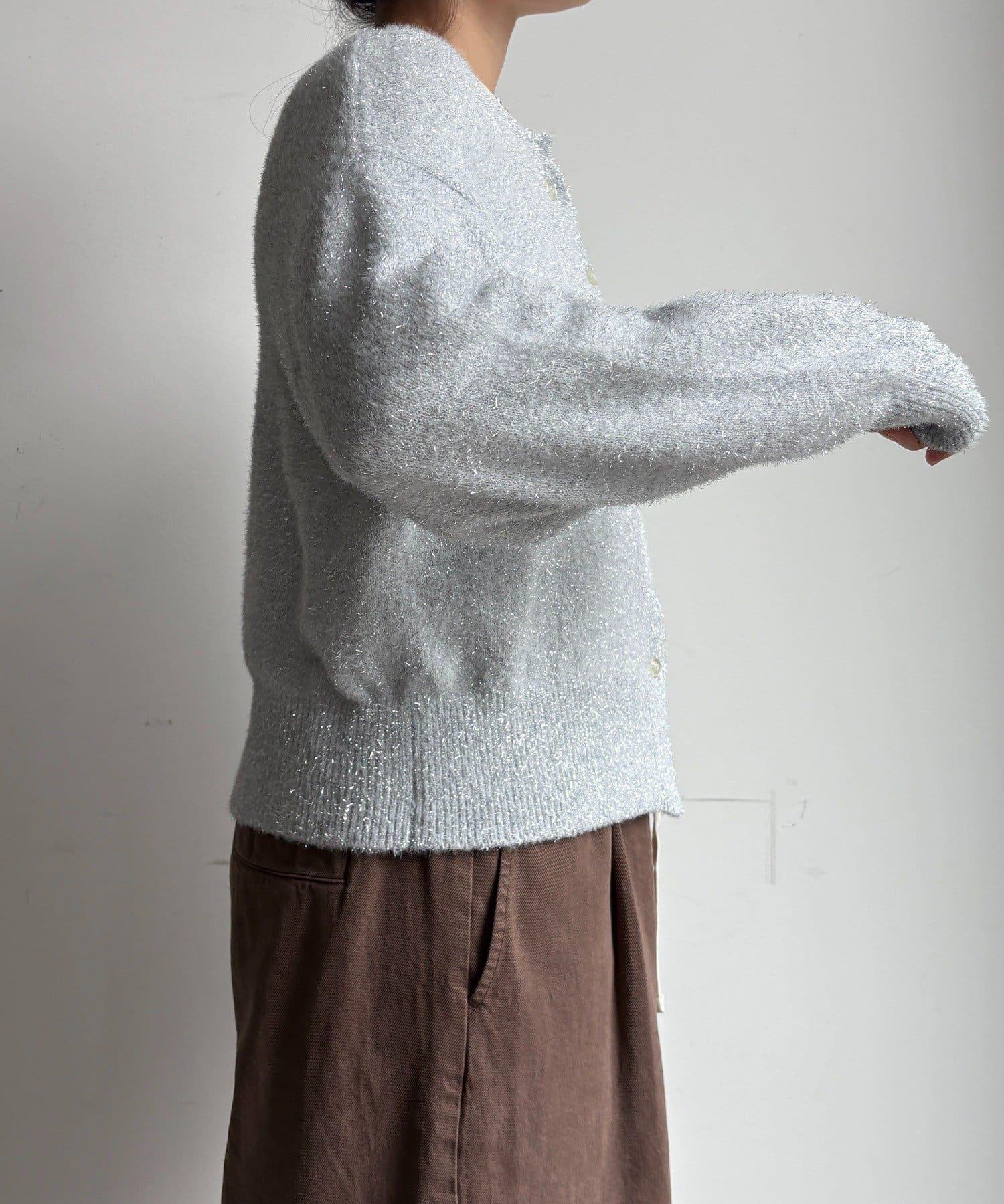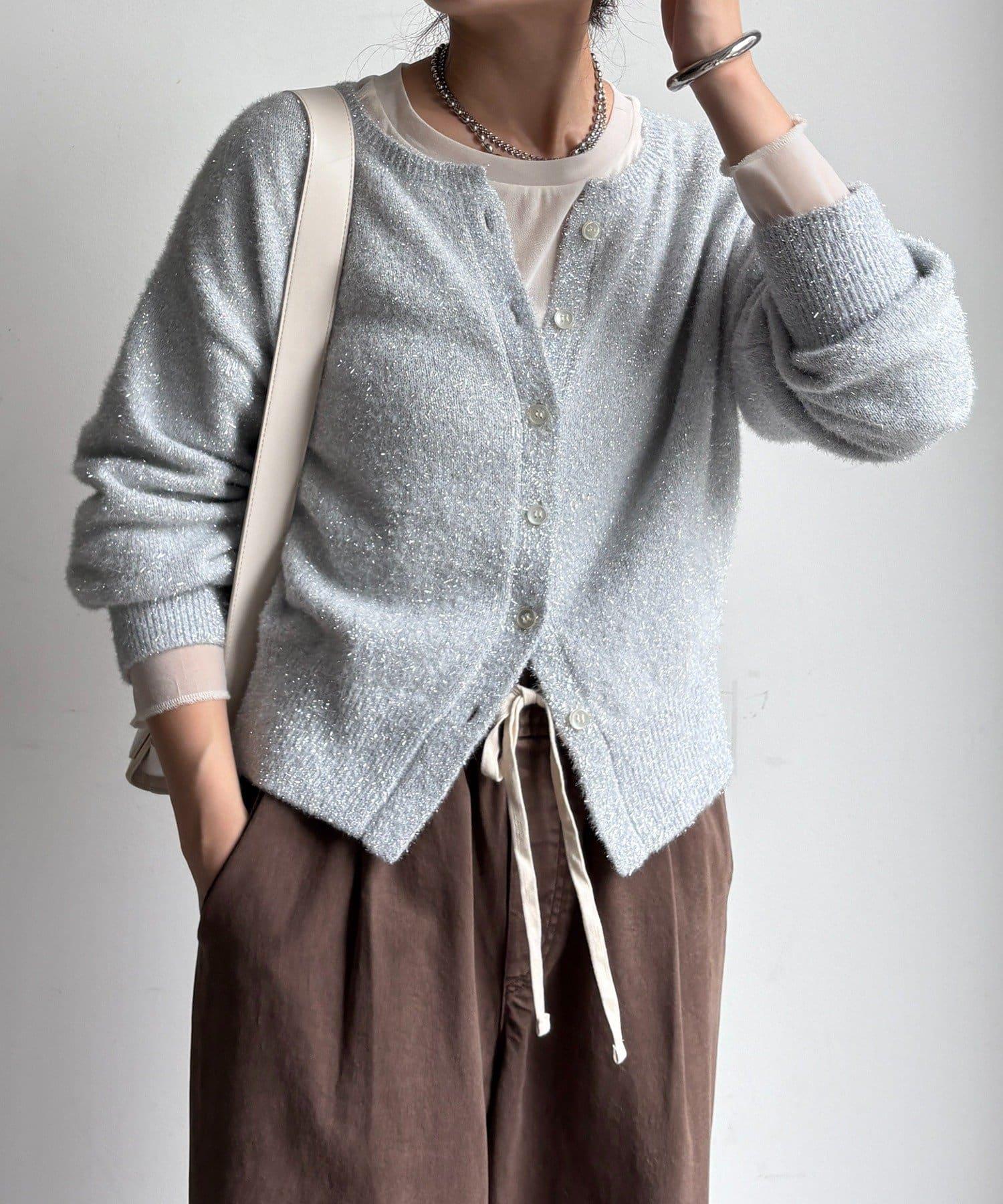 這是一款優雅的成人開襟羊毛衫,面料上織有精緻的睫毛。