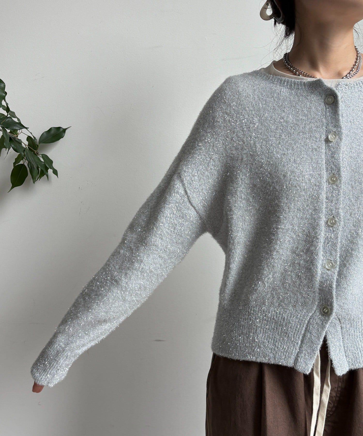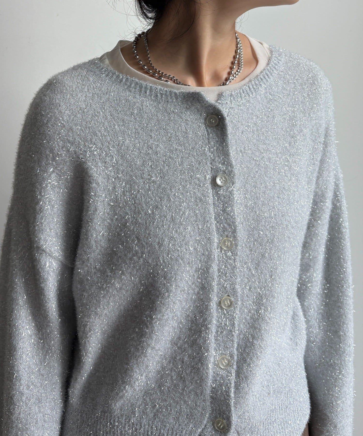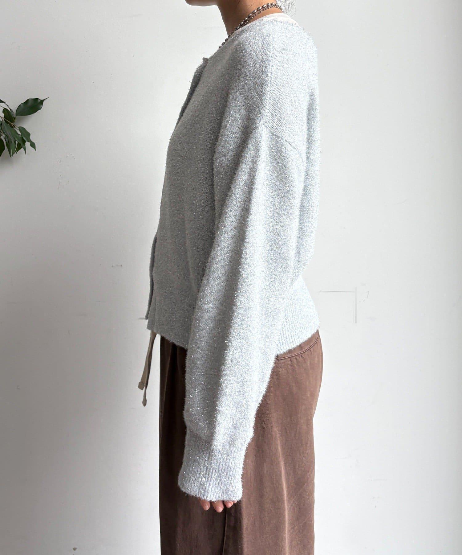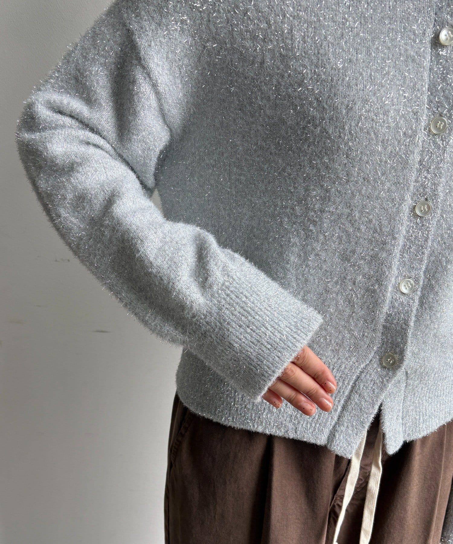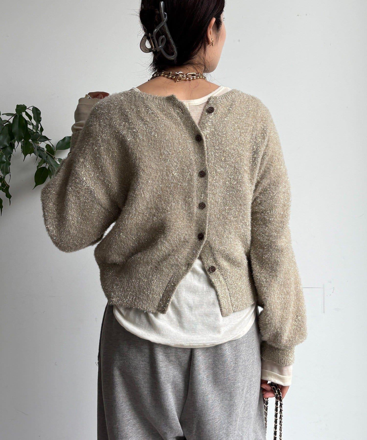 這是一款優雅的成人開襟羊毛衫,面料上織有精緻的睫毛。