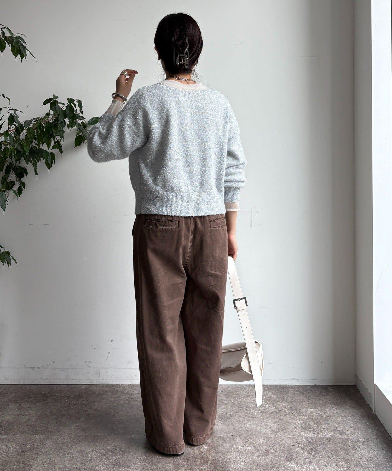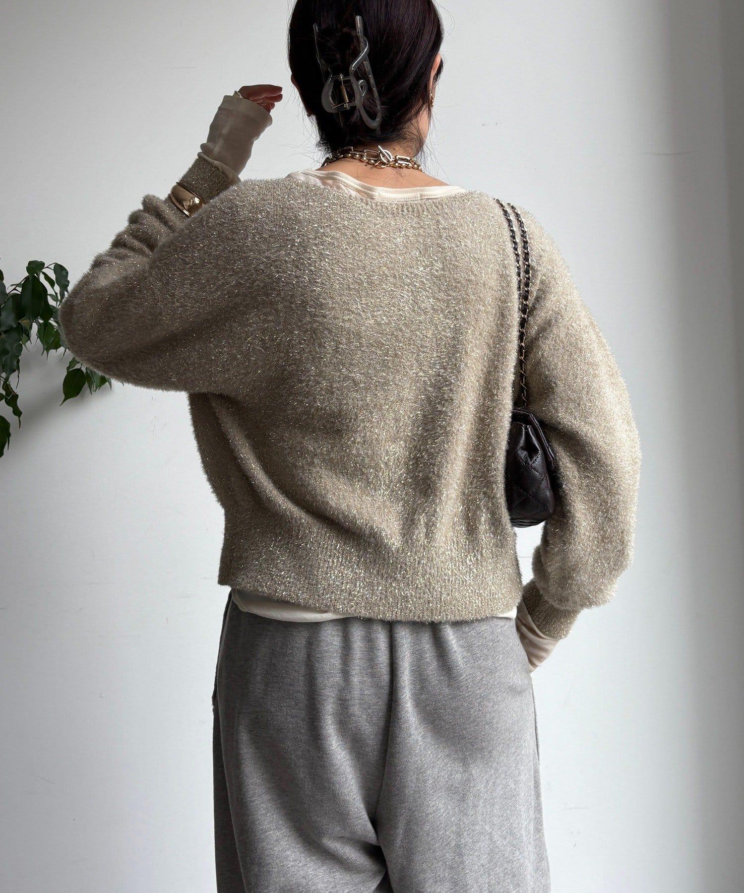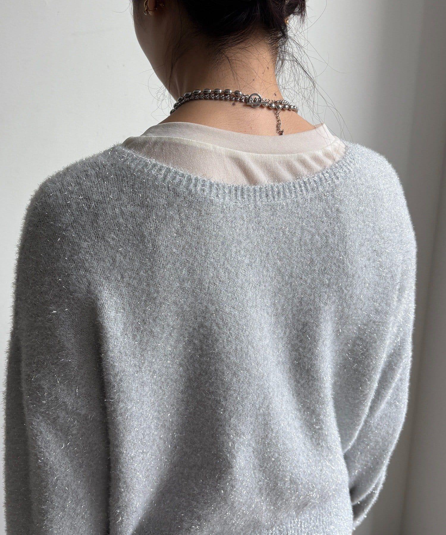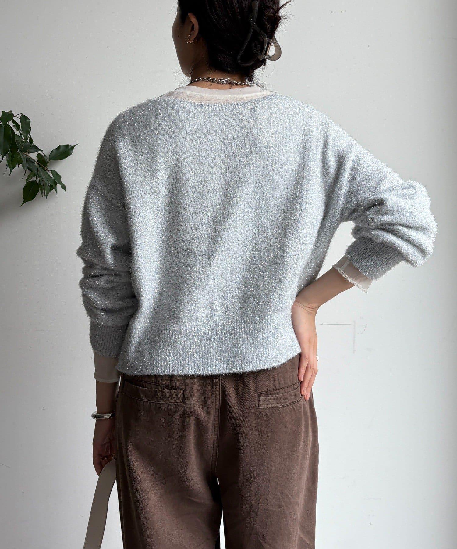 這是一款優雅的成人開襟羊毛衫,面料上織有精緻的睫毛。