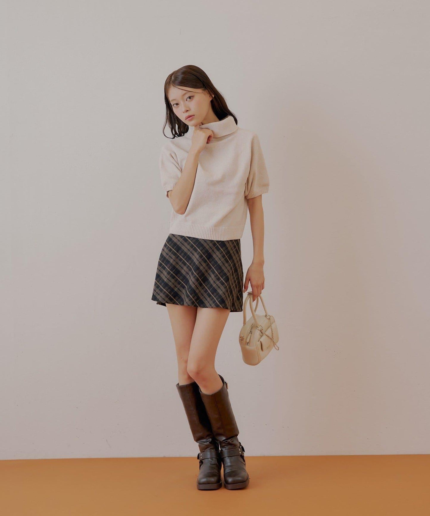 高領衫與迷你下裝完美搭配,盡顯女性魅力。