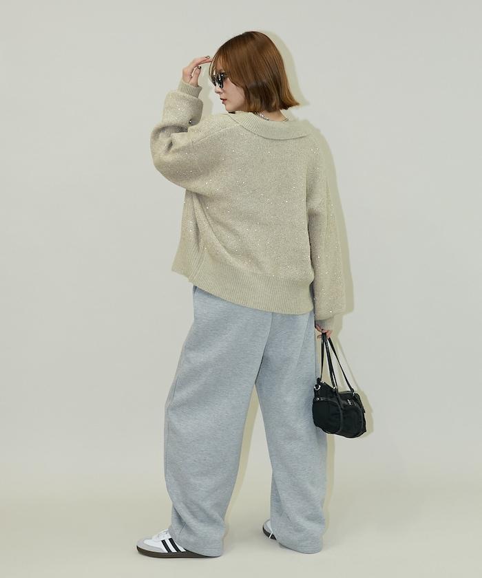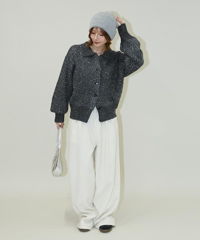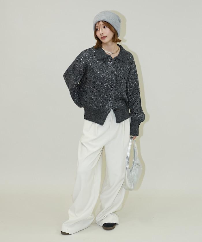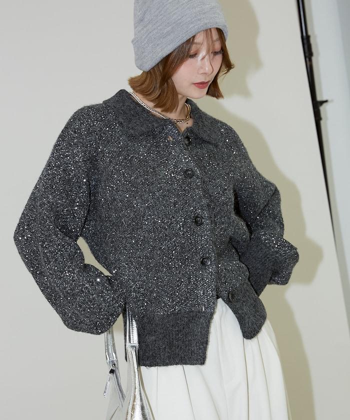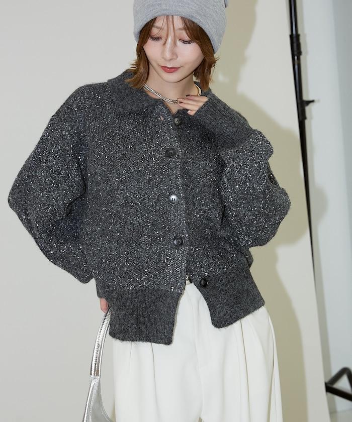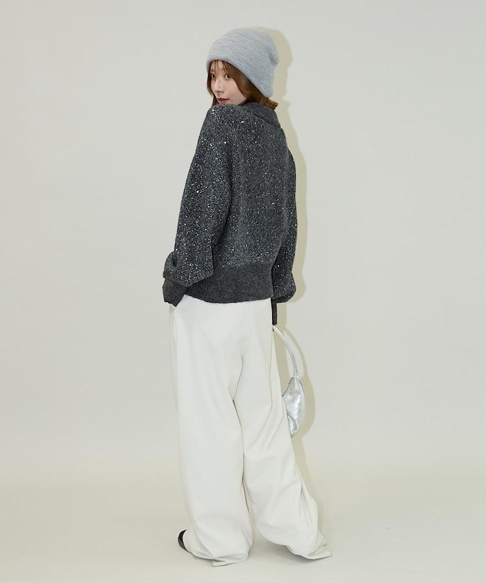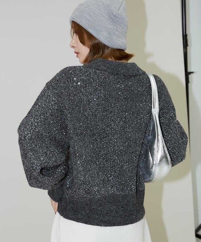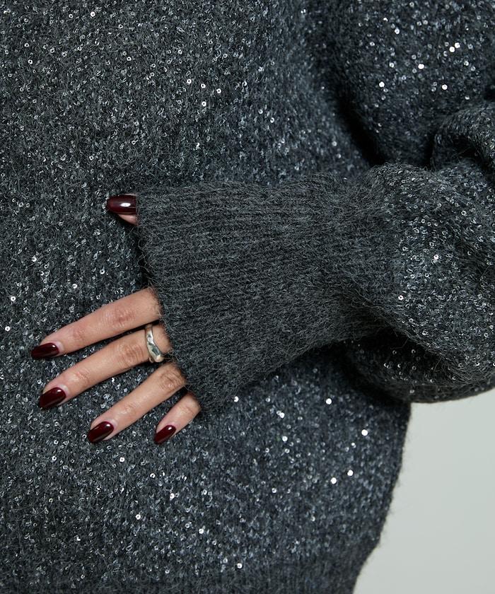 整件針織衫都覆蓋著精美的亮片,為簡單的剪裁增添了魅力。