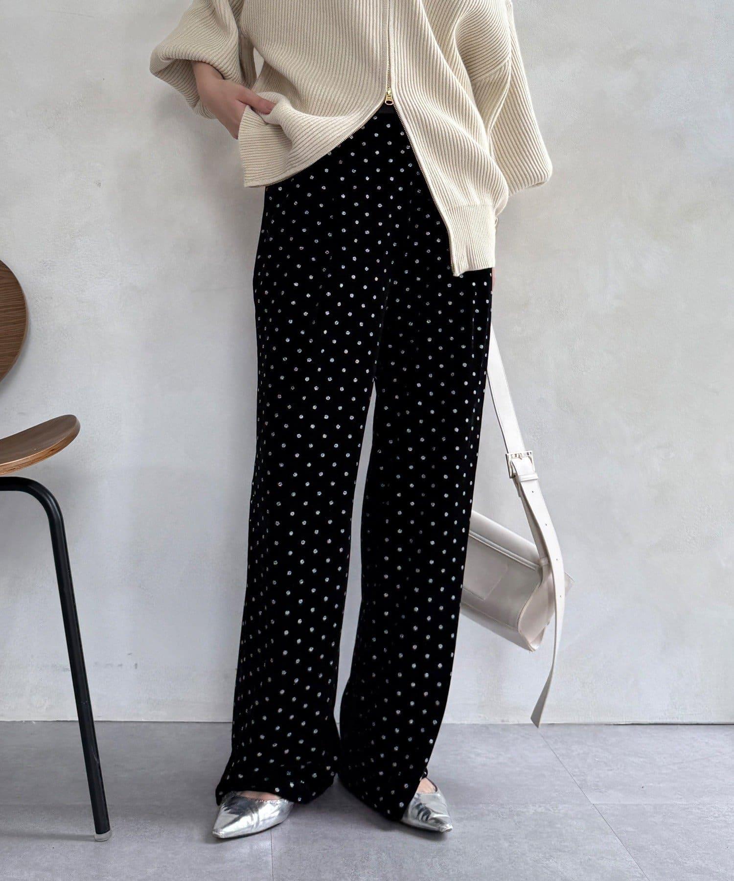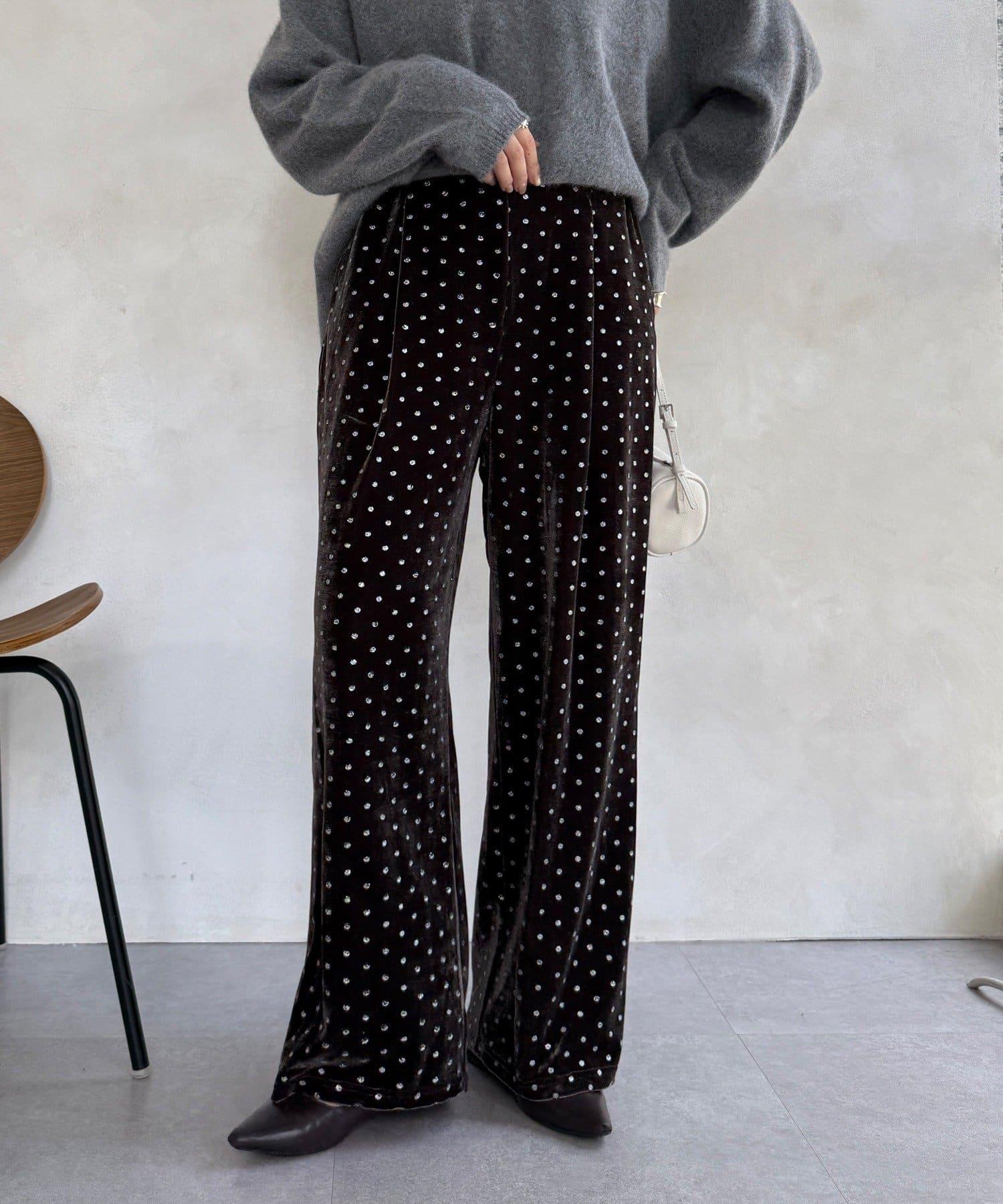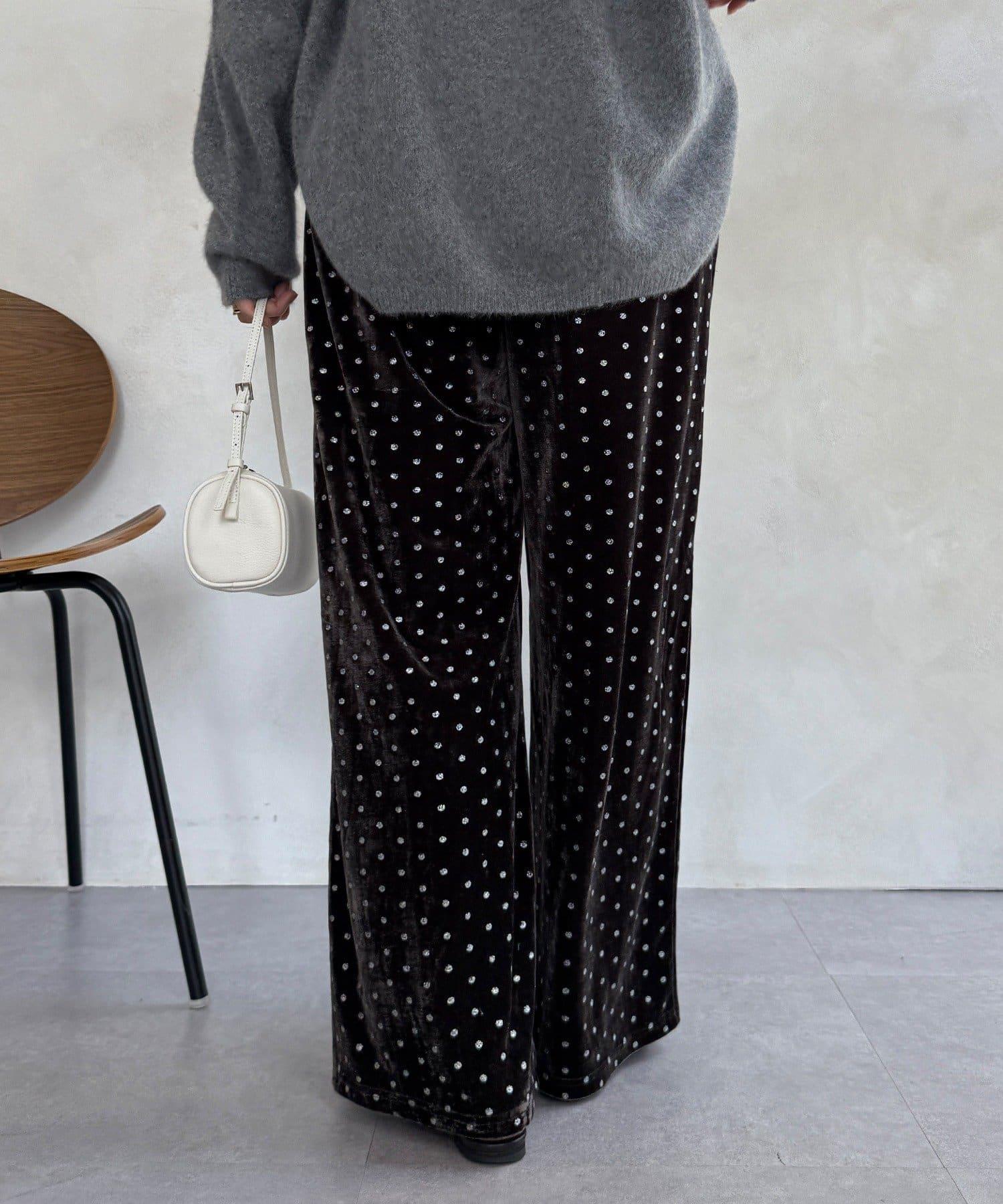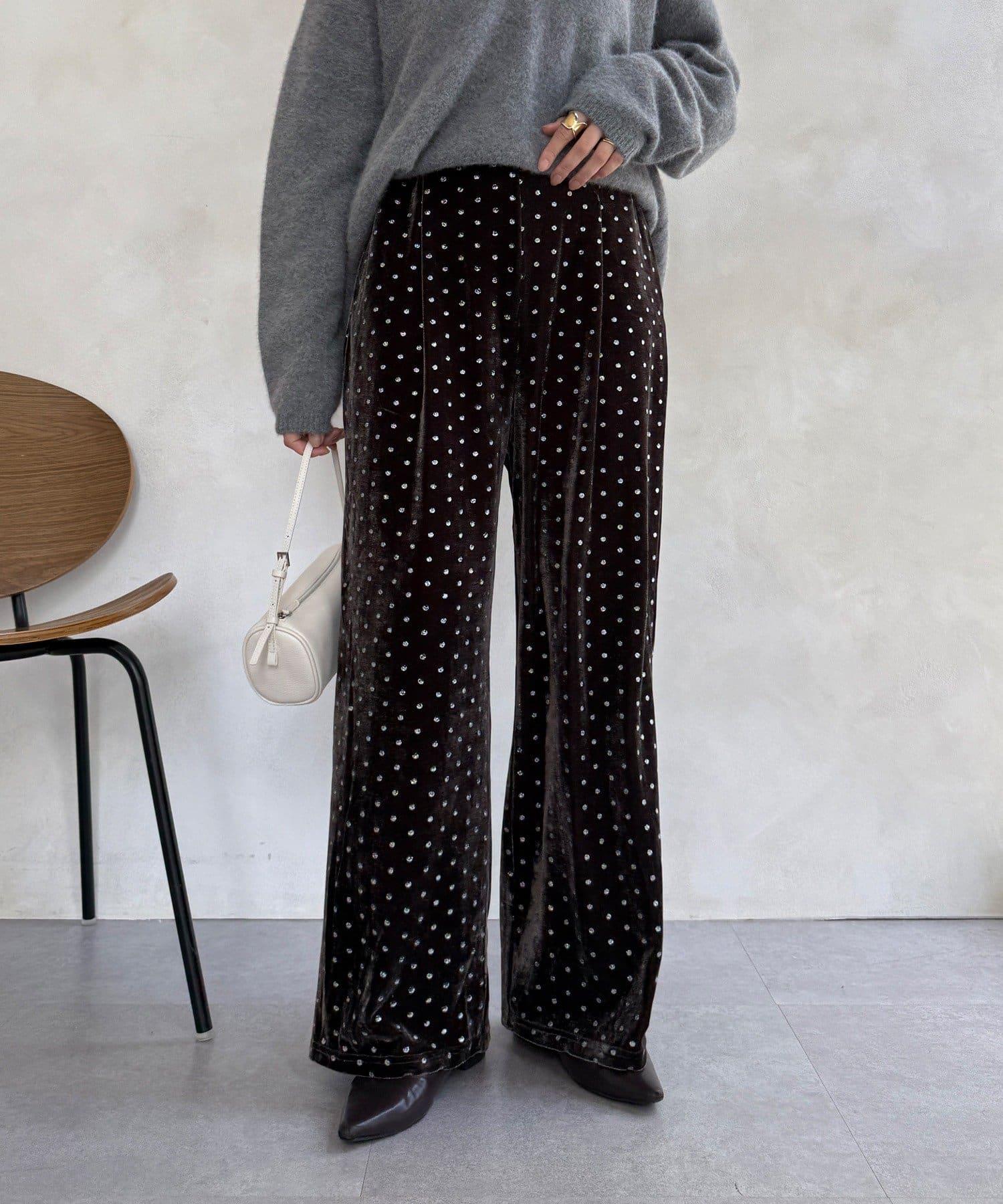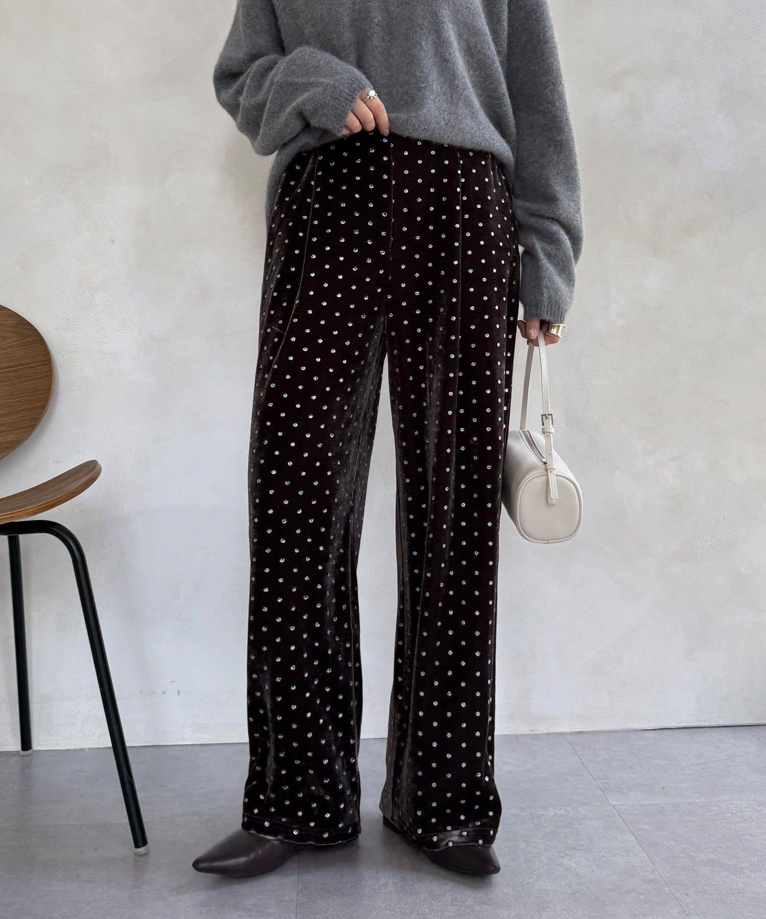 閃亮點綴的絲絨長褲閃閃發光,高貴典雅!