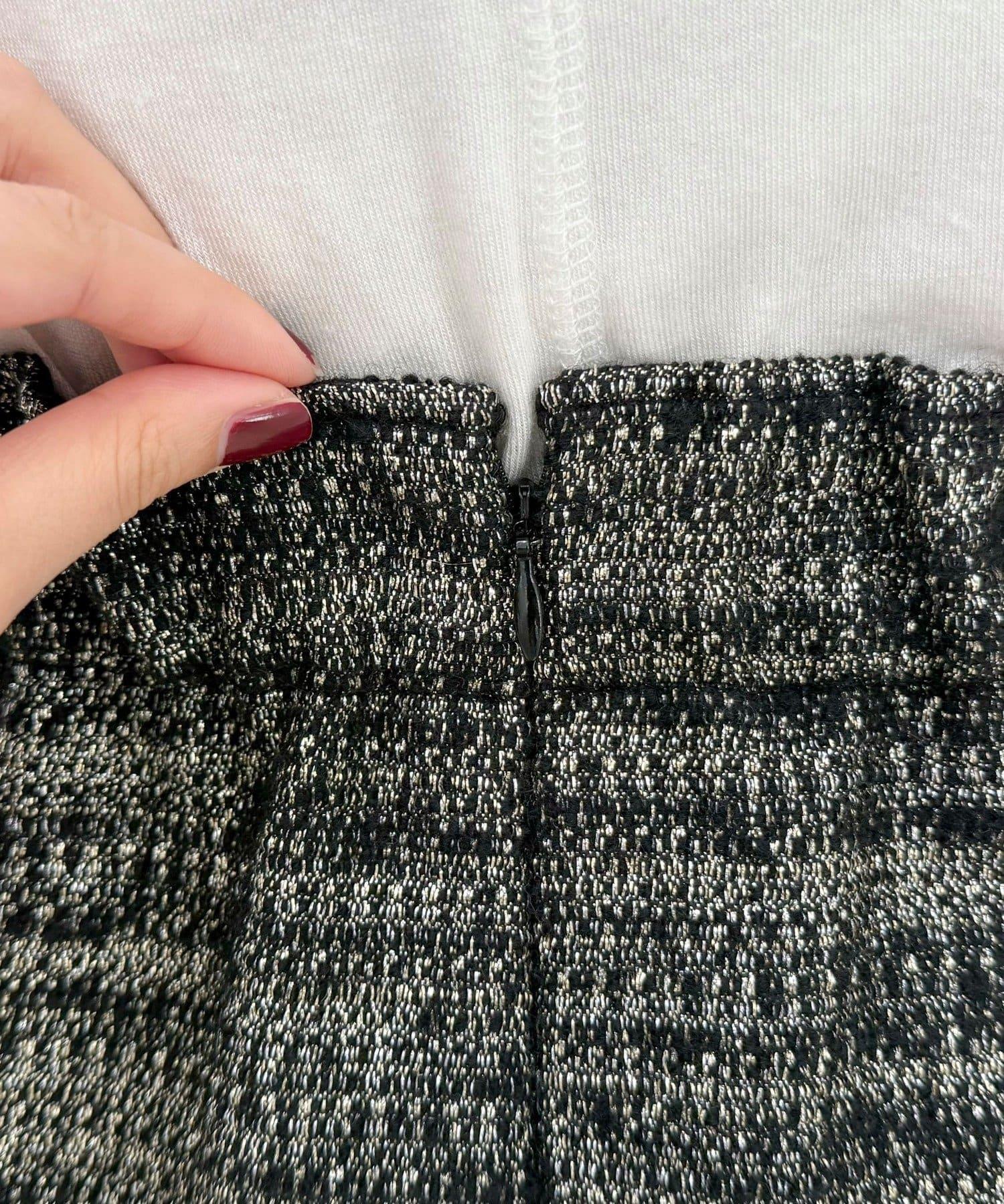 這款裙子採用斜紋軟呢面料,配以蹩腳的褶皺,既華麗又優雅。