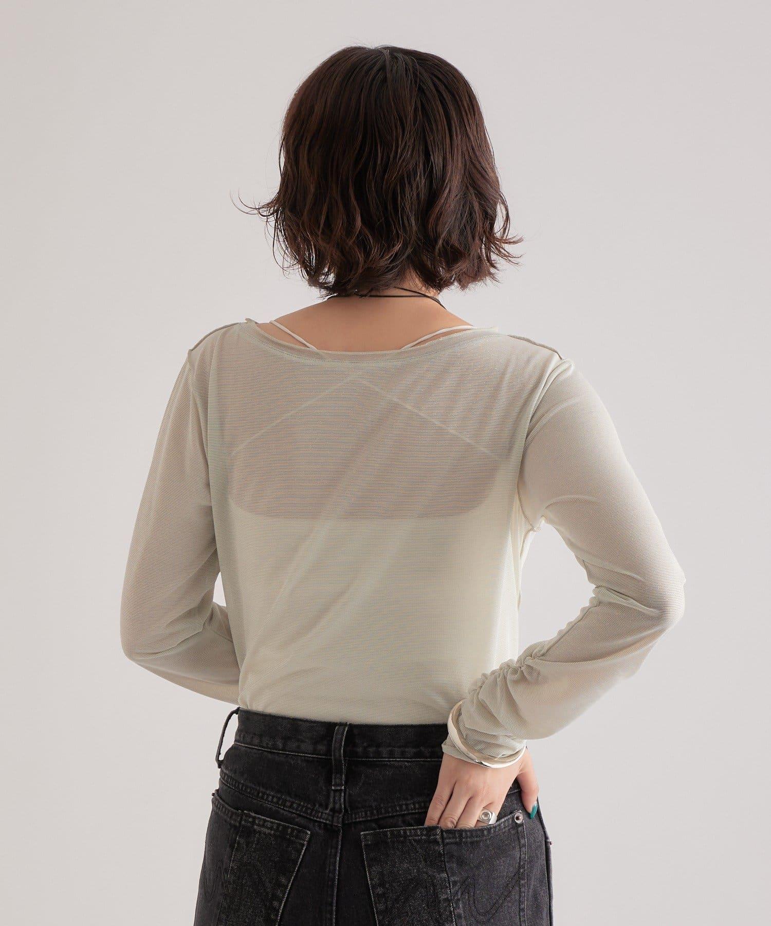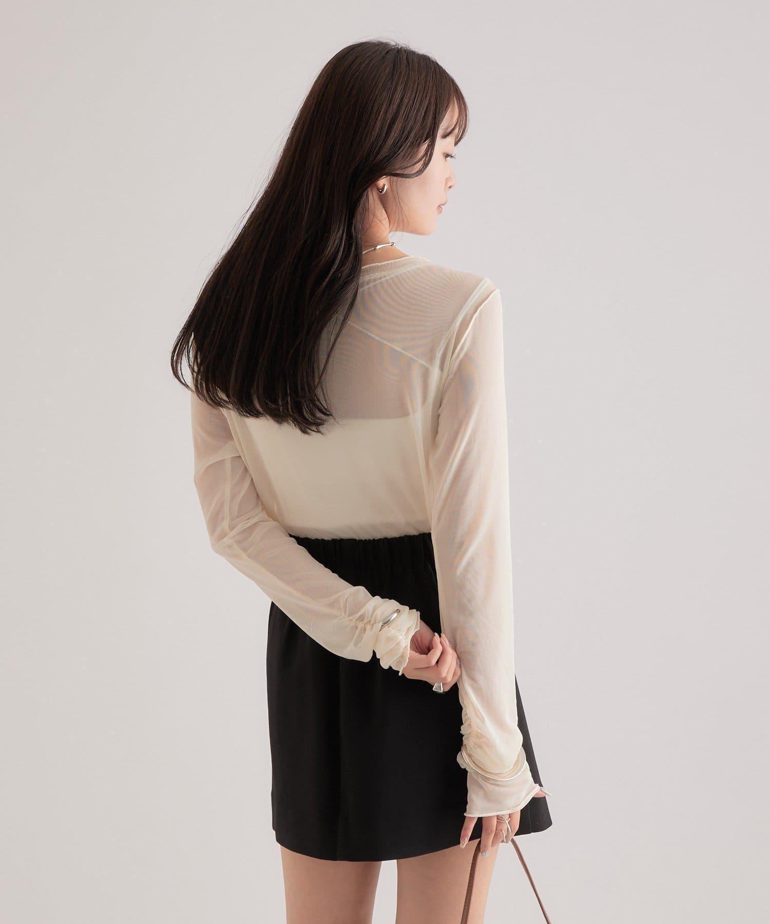 透視面料讓上衣在簡潔的同時又有一種寬鬆感和設計感,是一款穿搭力極強的單品◎。