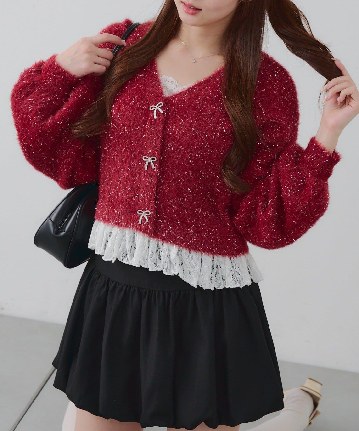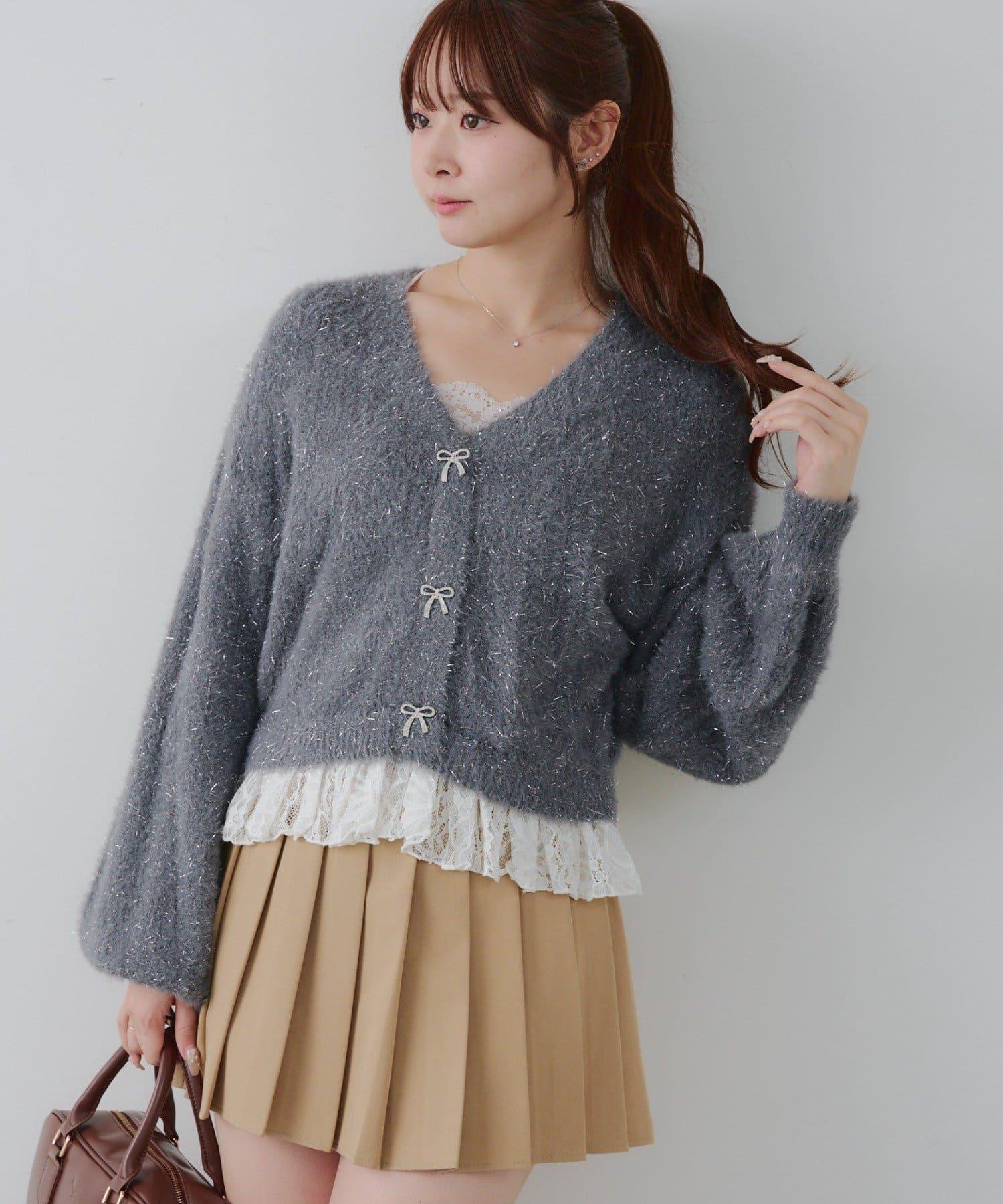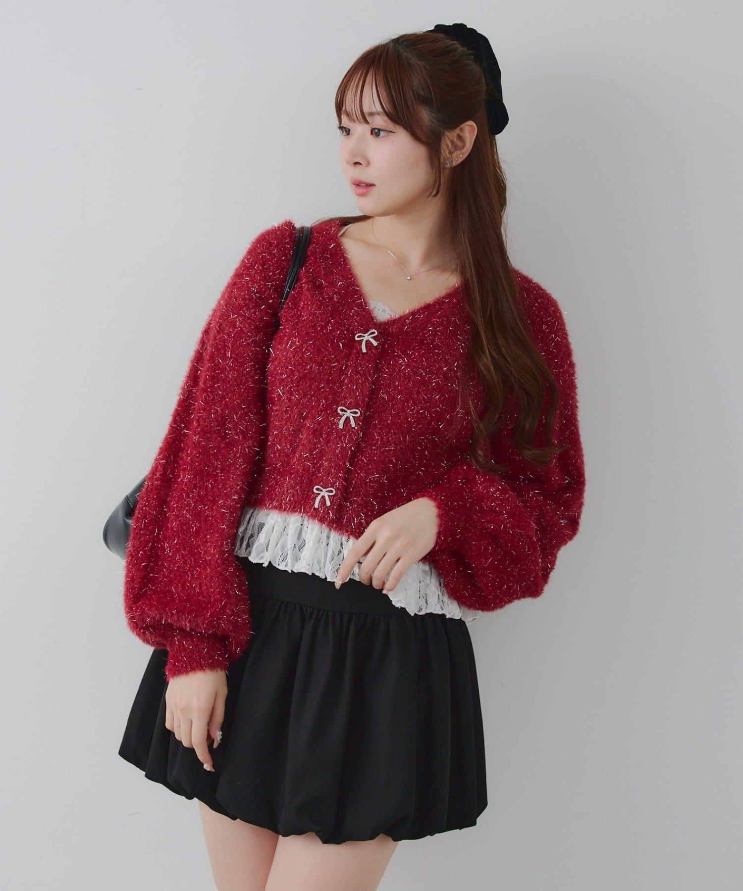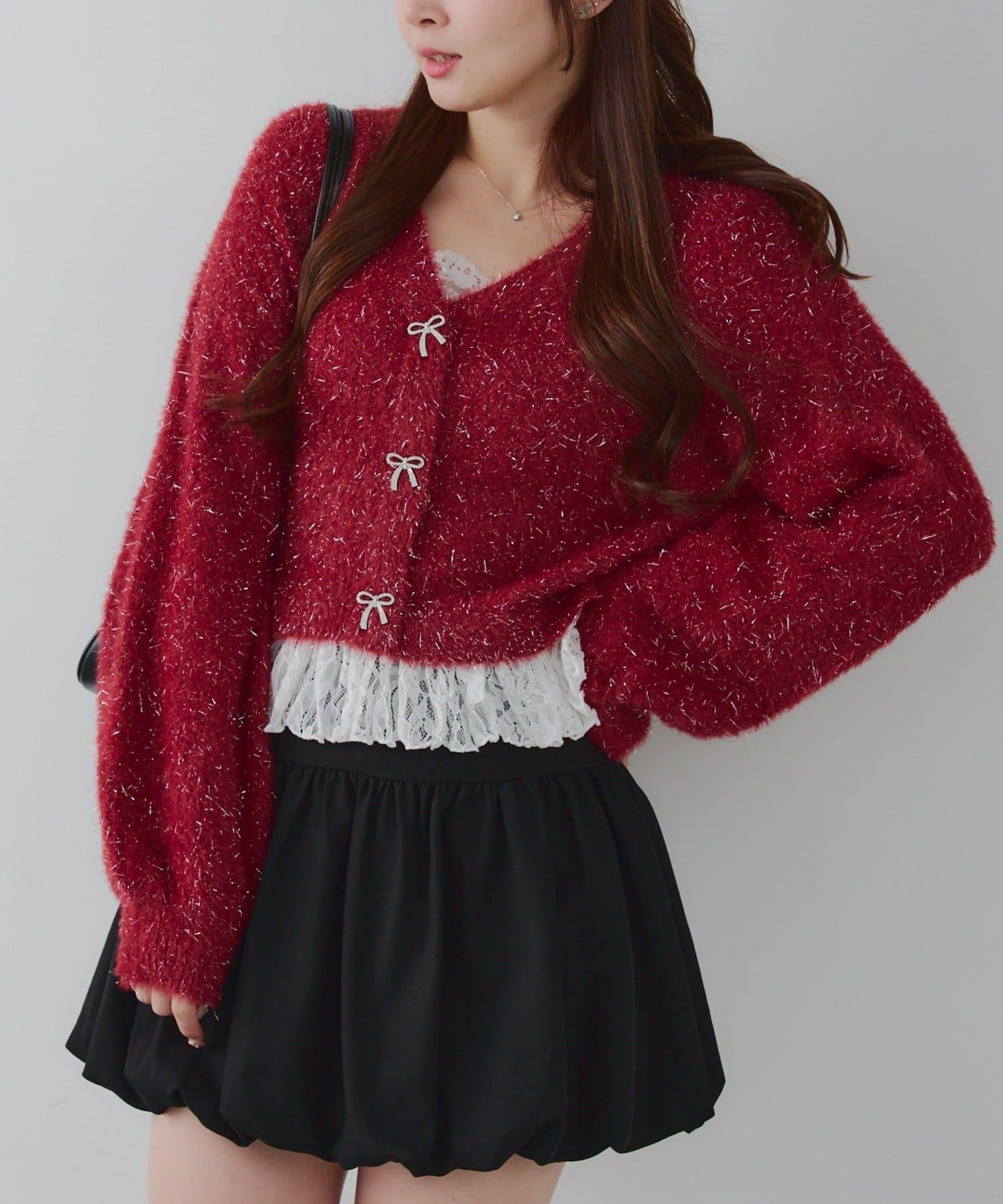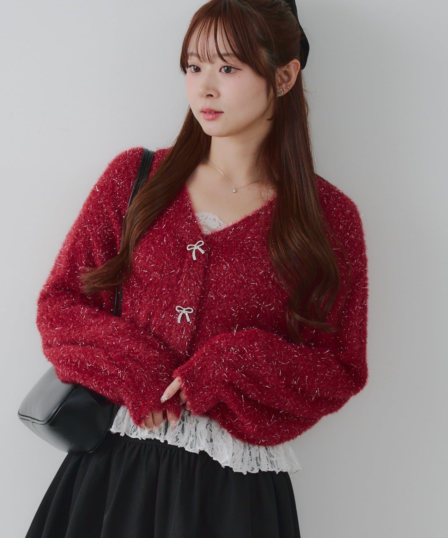 閃亮的絲帶圖案♪短款開衫,讓您的秋冬搭配更加可愛。