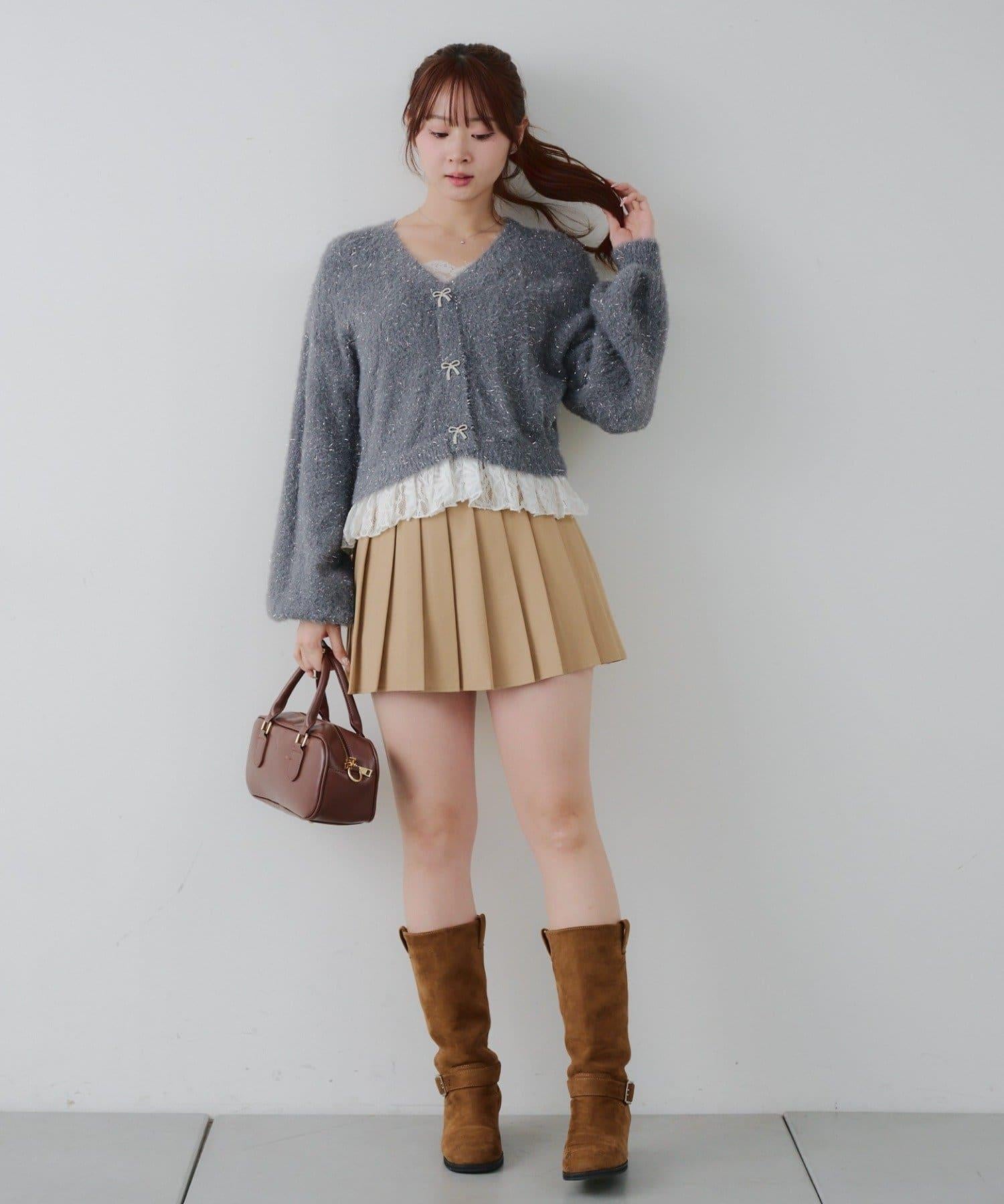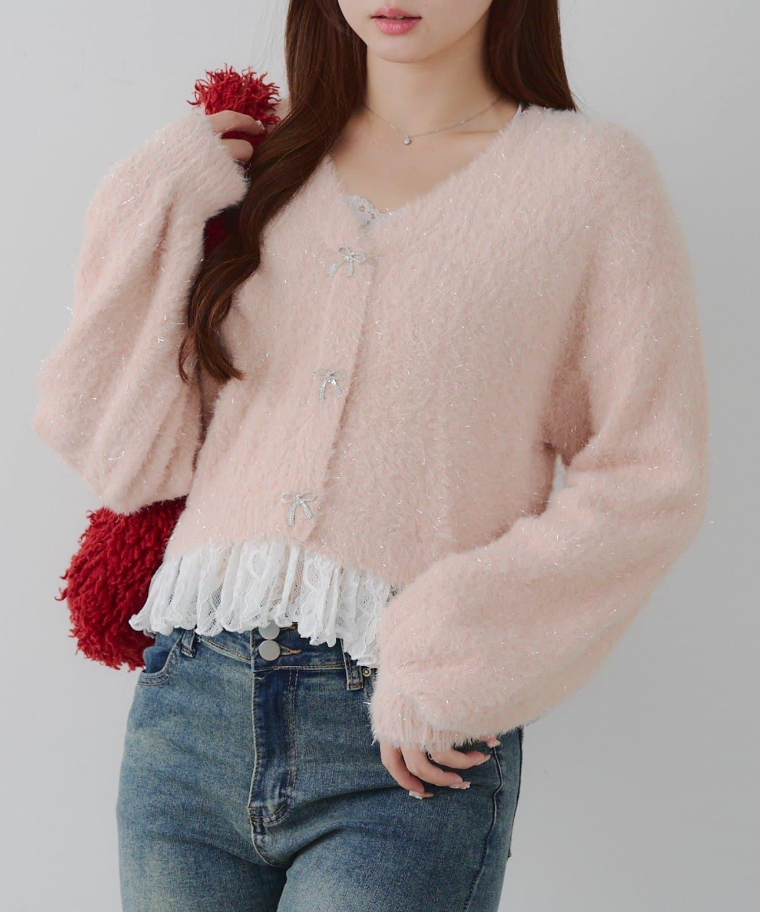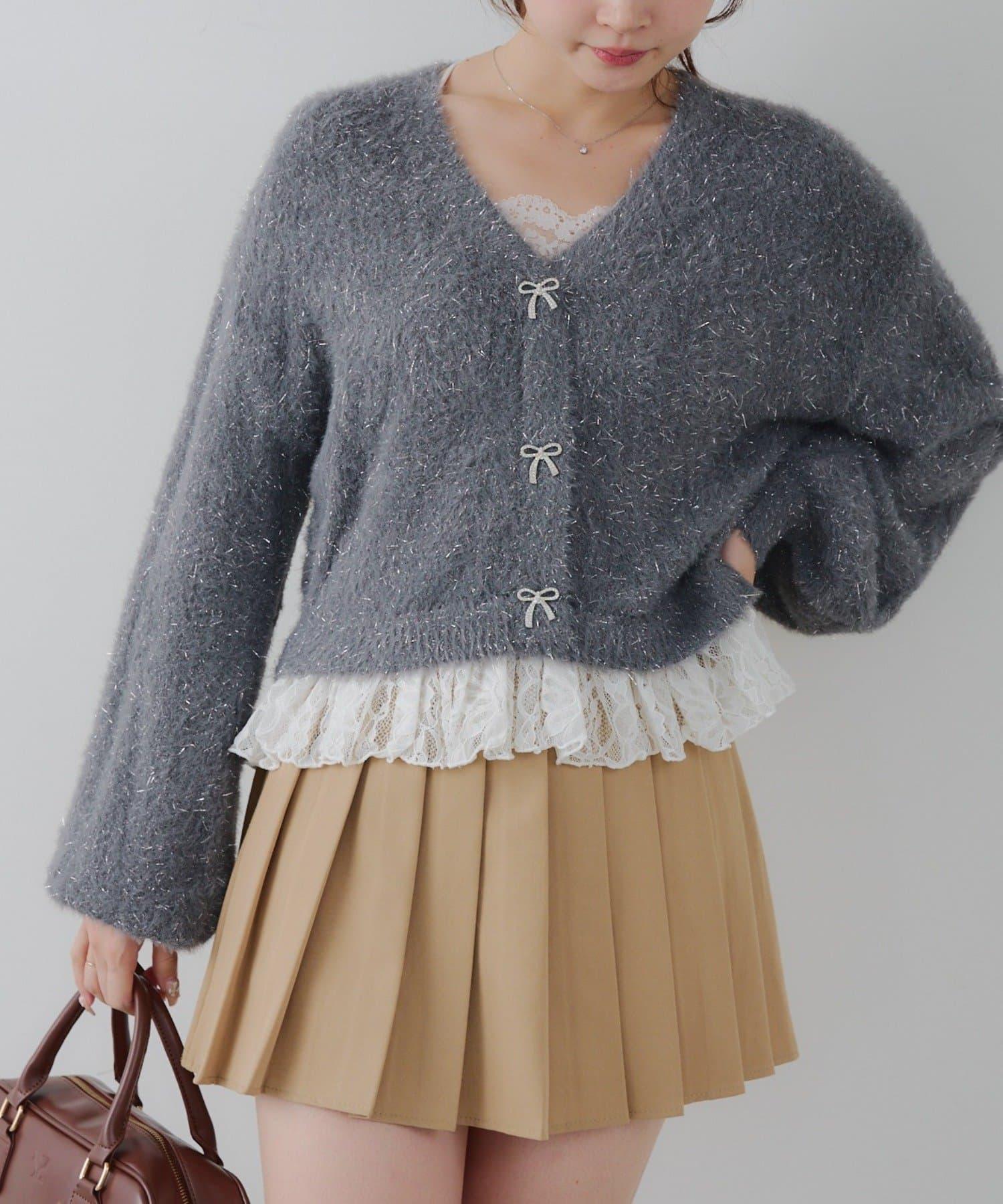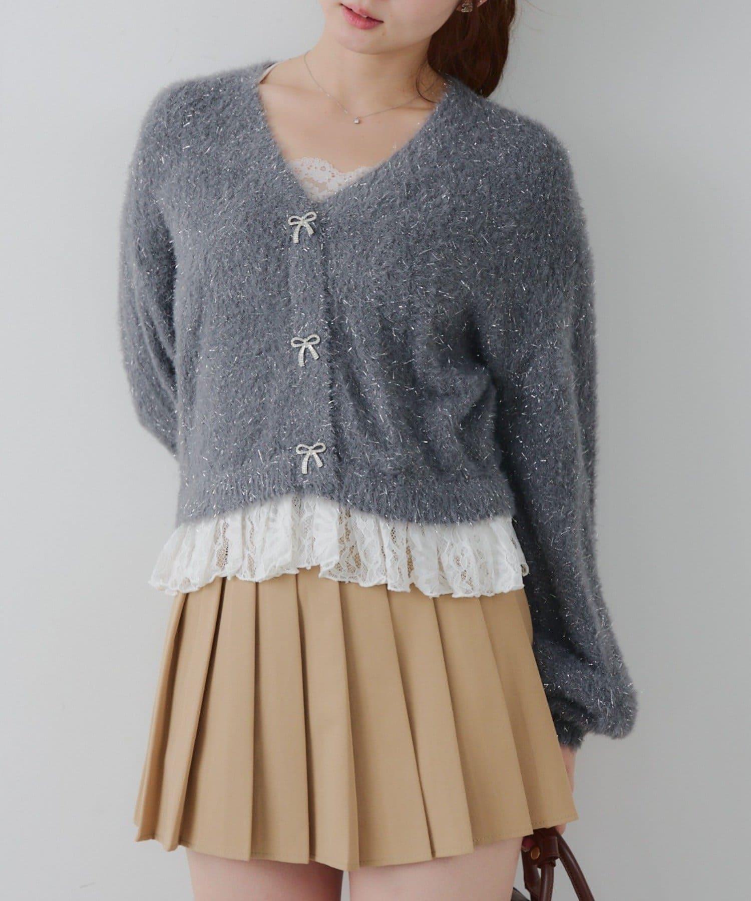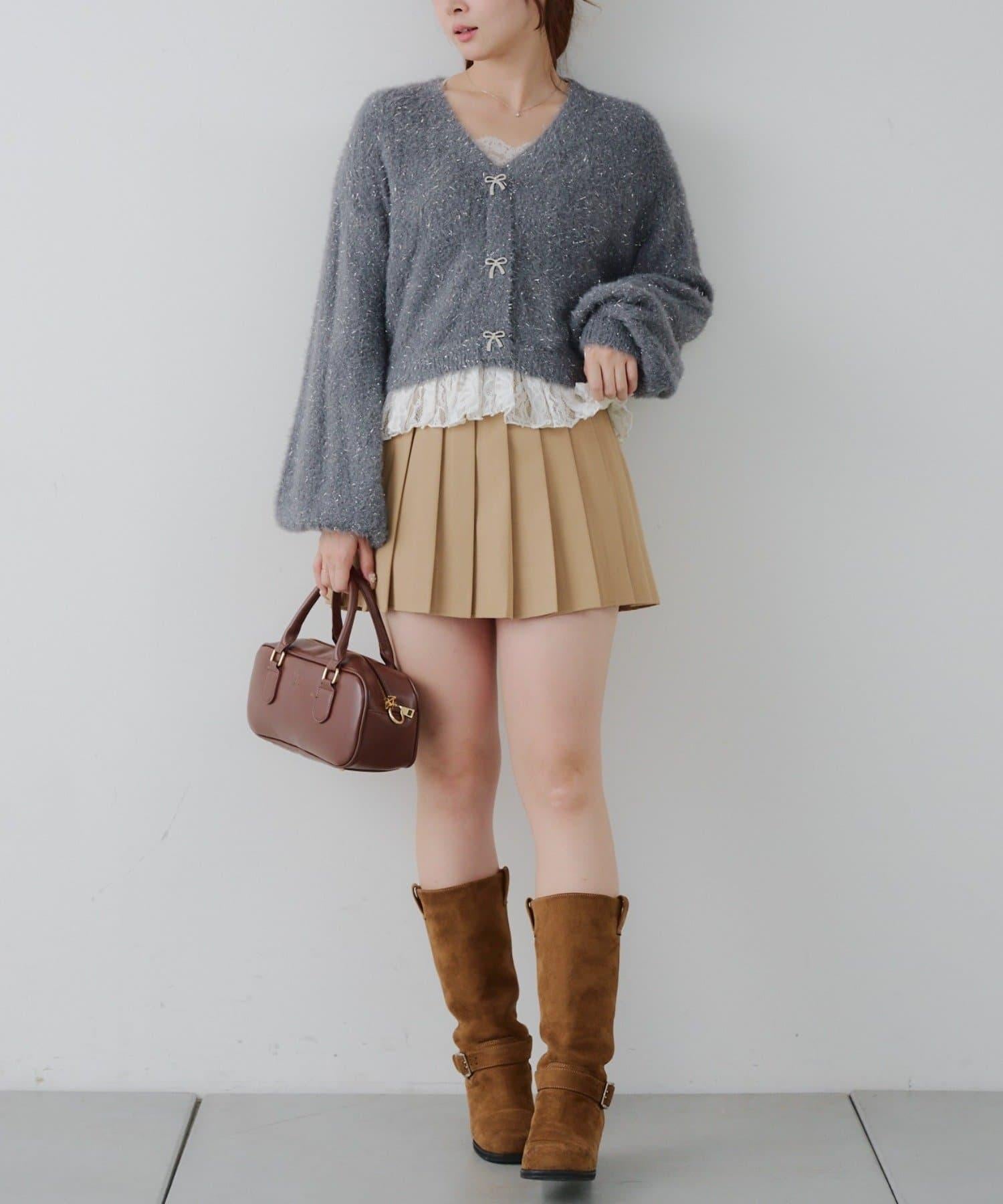 閃亮的絲帶圖案♪短款開衫,讓您的秋冬搭配更加可愛。